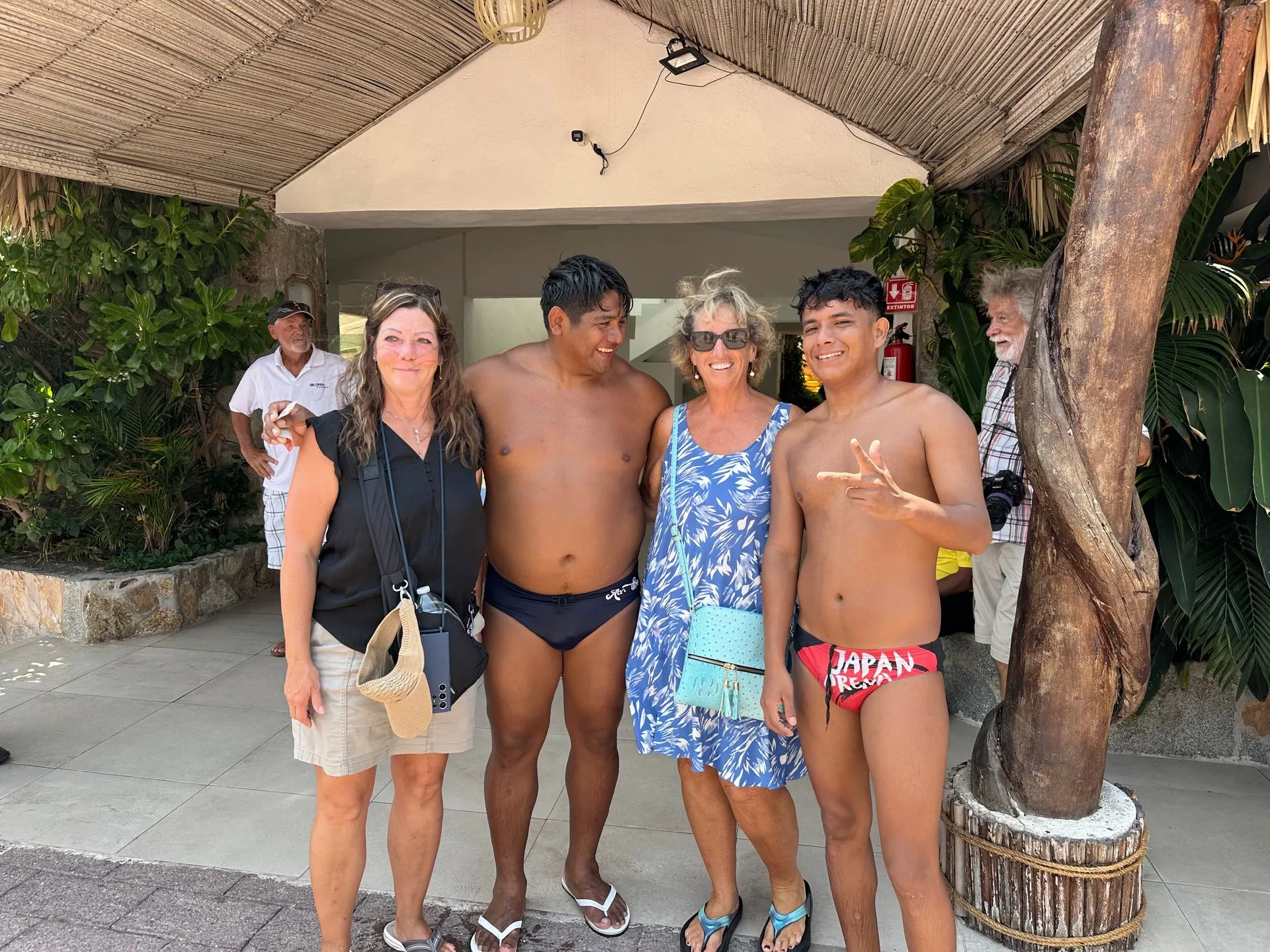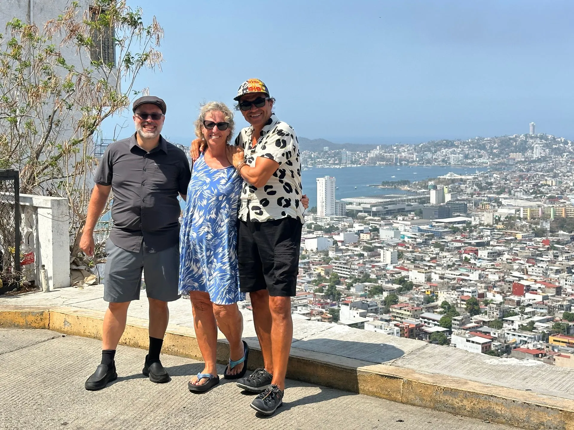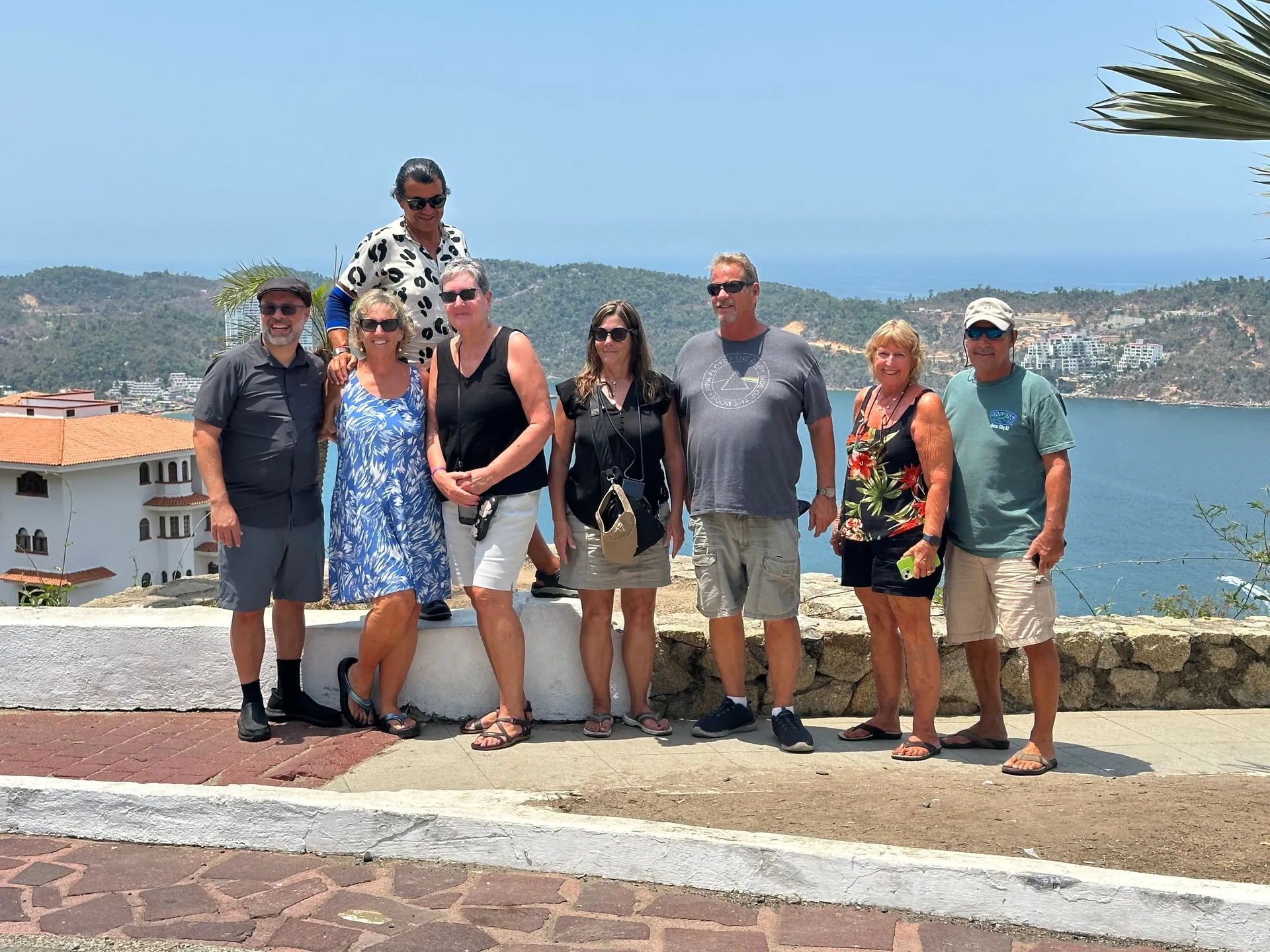 I wanted a low key Birthday with just some of my close friends on the Ship. So I booked a tour for 8 of us ( L to R: Bosco, Memo, Sherrie, Sarah, Bob, Bonnie & Steve) to see some of the highlights of Acapulco and see the iconic cliff divers and finish with some local drinks and food. Mother's Day was celebrated the same day in Mexico (Saturday in lieu of Sunday) and so many places were booked out for weeks prior. Our guides picked us up at the port and drove us through a variety of neighborhoods so we could see first hand the working class neighborhoods in town and their schools, marketplaces and places of business.