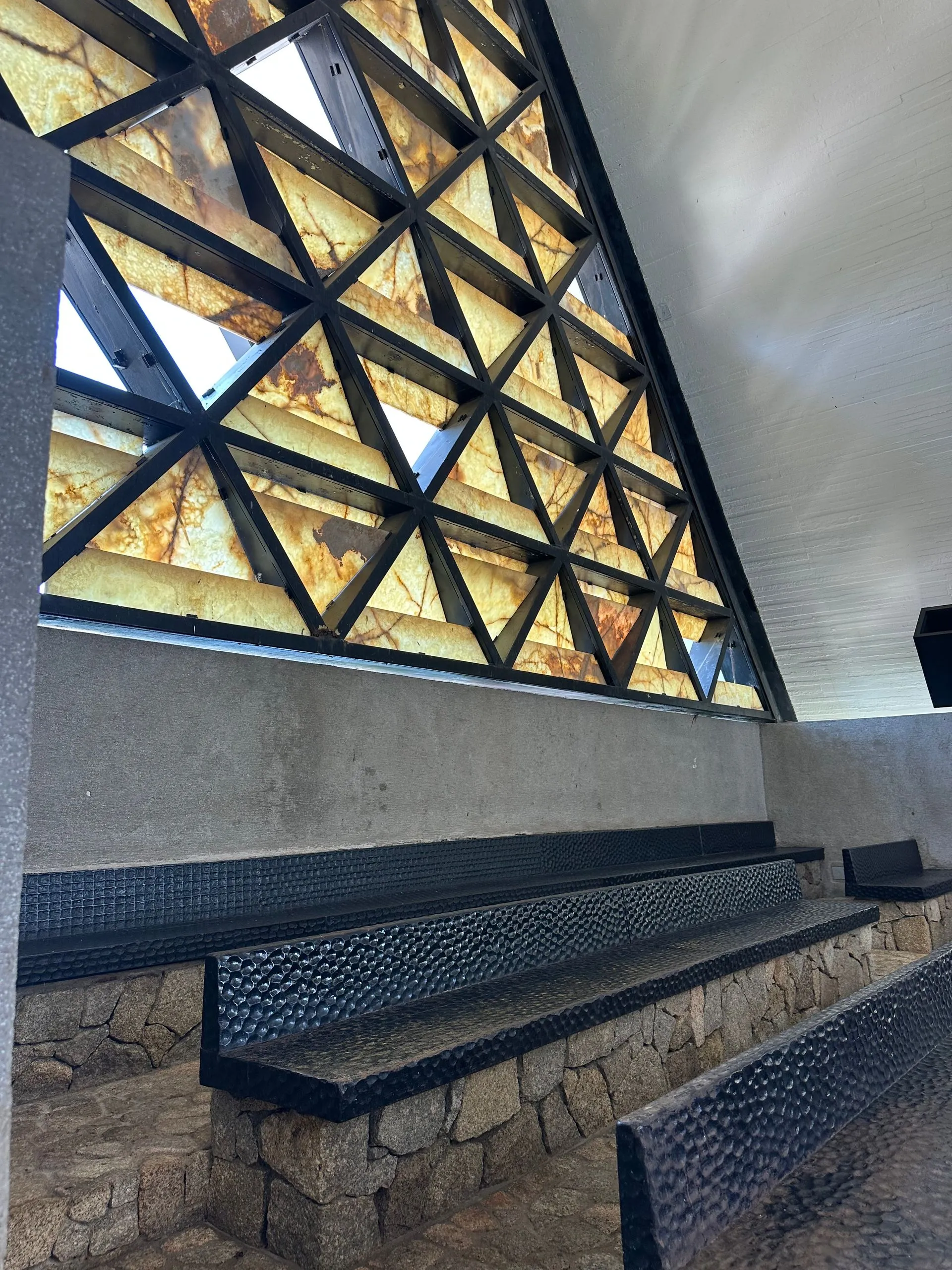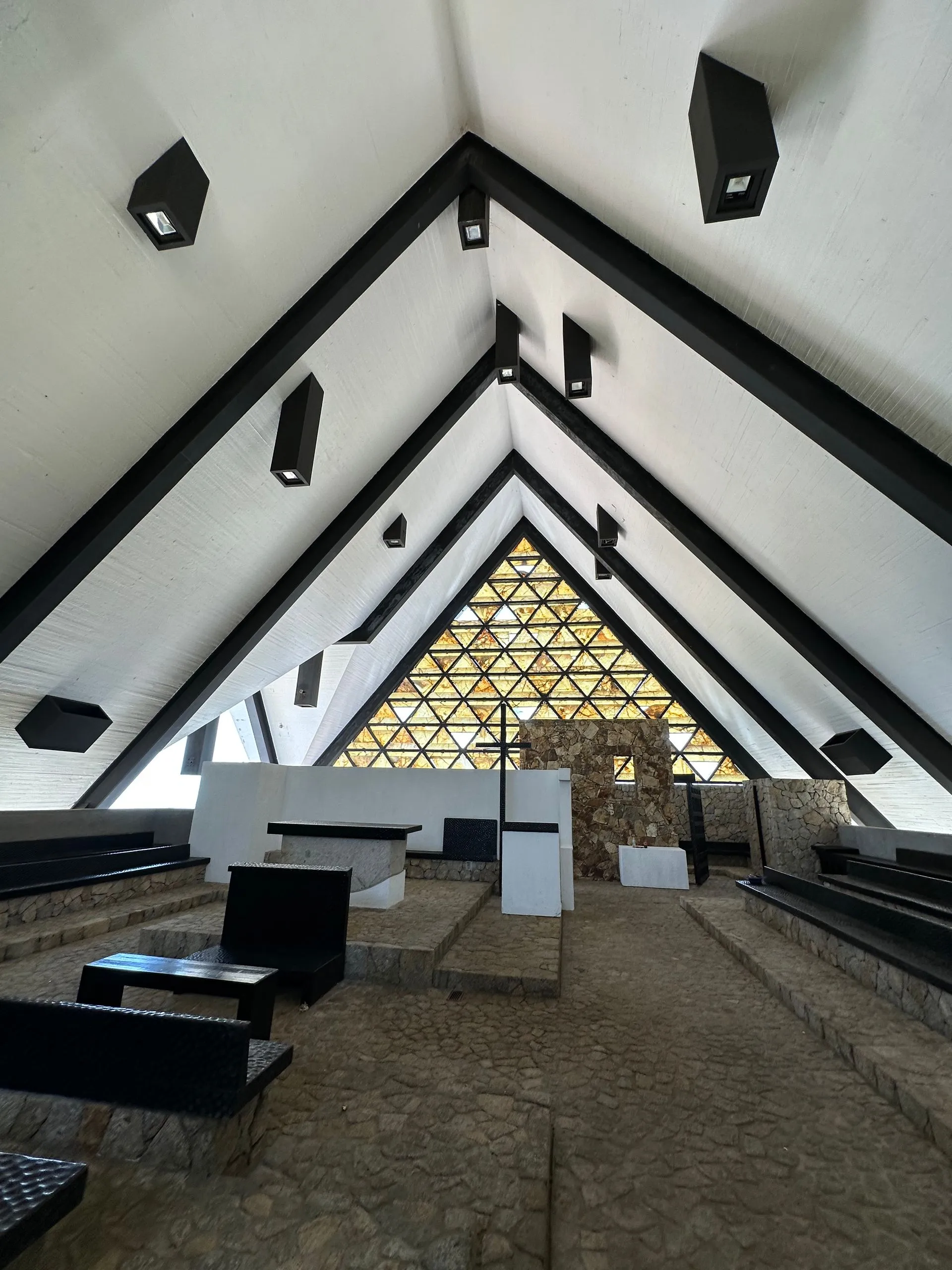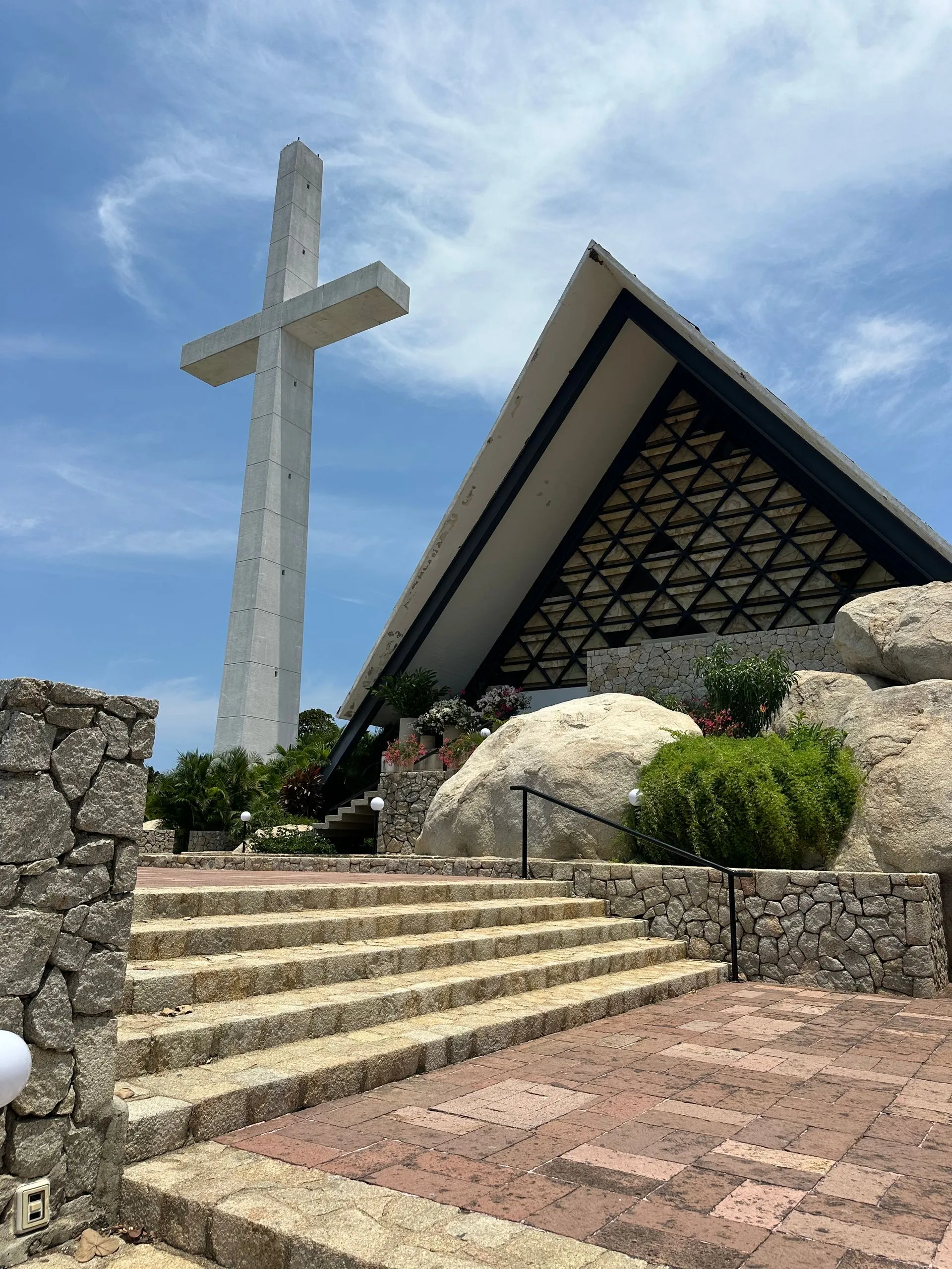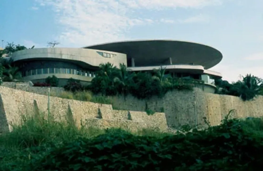 Then we head to the southern end of Acapulco Bay, a wealthier section of town, up in the hills overlooking the harbor. The Five star resort Hotel Las Brisas is here, where every villa has an individual pool from their bedroom to their outside patio. Below is the Chapel of Peace which opened in 1970, to memorialize 2 brothers who died in a plane crash. It has wonderful seaside views and the massive white crucifix is visible from almost anywhere in the city. Also glimpsed the unusual Arango House up in the hills.