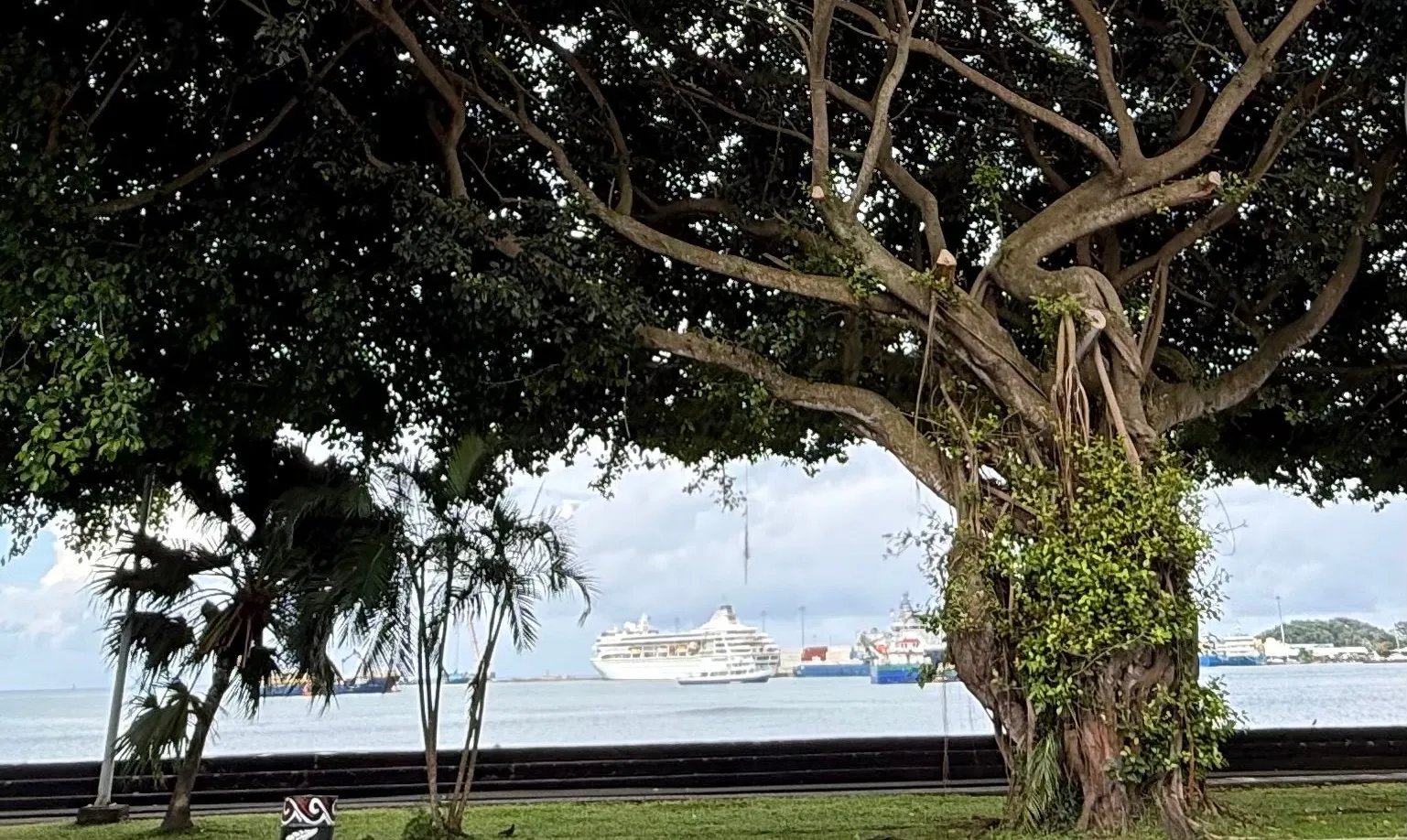 The town was quiet and immaculate, tourism is their biggest business, but they only average 3 to 4 cruise ships in a month. The island is a string of villages, each with their own chiefs, leadership and rules. Several extended families make up one village, with between 50 to 150 people typically, per village. Crime is very low mainly because religion is so strongly followed here and family values are so strong. It is the rainy season here in the South Pacific, so the days are in the 80's, humid in the afternoons especially and rain showers and down pours happen frequently. I walked the harbor area with my buddy Sherrie on Saturday. Below are some the sites of Apia.