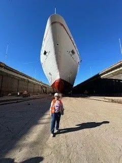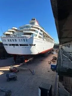 I arrived in Dublin Ireland to bright sunshine and collected my luggage - 3 large, checked bags and 2 carry-ons and cleared customs all by 7:30 a.m. I had reserved a private driver to take me and handle all the bags, up to Belfast from the Airport. The driver was a lovely Romanian immigrant, father of 5, who had been there, with his wife since 2005. He enlightened me on economy and state of immigrants in the UK & EU. We also talked at length on his observations about the Ukraine/ Russian War, from the prospective of Romanians, his family and friends, many of whom lived within Ukraine. It made the 1.5 hour drive go very quickly. I then tried to check in to my hotel, the Ibis Belfast Centre, but no rooms were ready for early check in at 9 a.m. I chilled in hotel lobby for a little over an hour and then thankfully they were able to get me into a room and I could nap for a few hours, prior to my dry dock tour of the ship at 4pm.