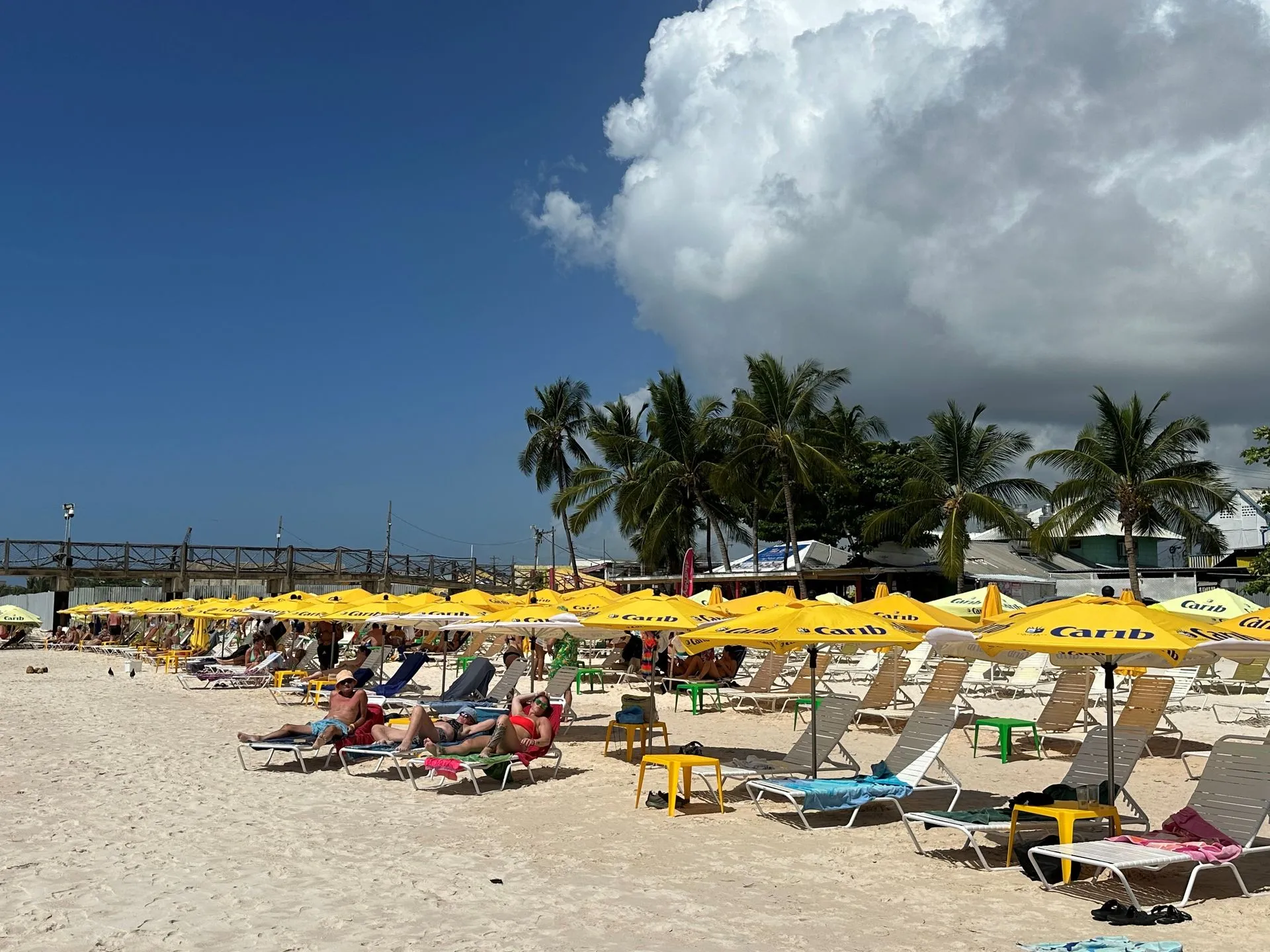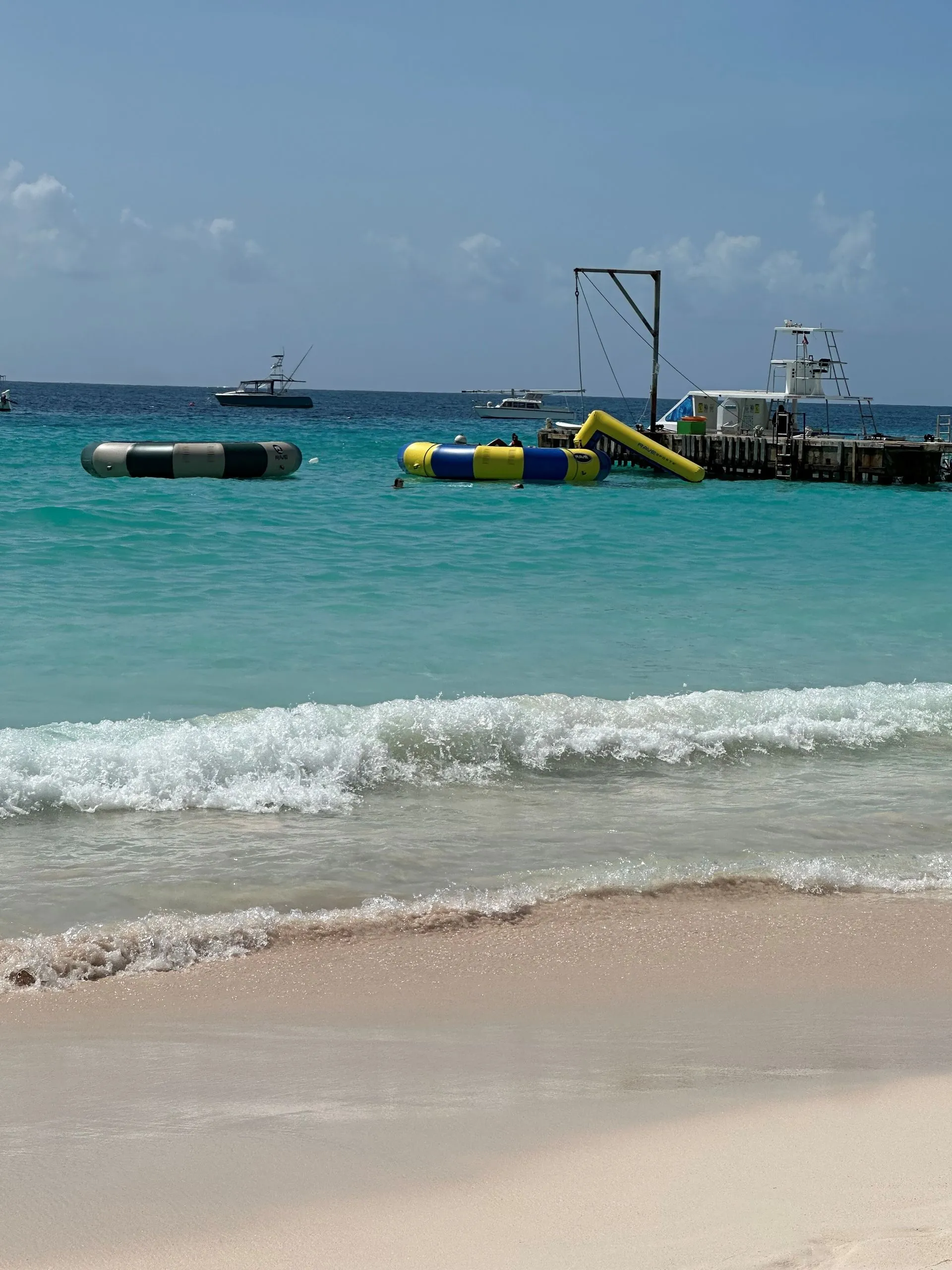 Just went for lazy tourist day today! It was a warm, sunny day with a nice breeze blowing off the ocean! Did a stroll through the local shops surrounding the cruise terminal. There were 5 other large ships in port! The Boatyard bar & restaurant had a deal, right on the beach front, where you got a free shuttle from the port to restaurant (about a 20-minute ride), an entry cocktail, a beach lounger and umbrella & a snorkeling trip via private boat out to a reef, for 45minutes session snorkeling with turtles and fish. Had a yummy lunch of coconut shrimp and a mango smoothie. The ocean water and powdery sand was truly heavenly. We just relaxed, enjoyed the music, breeze and conversations. I am truly thankful for this blessed life I am living.