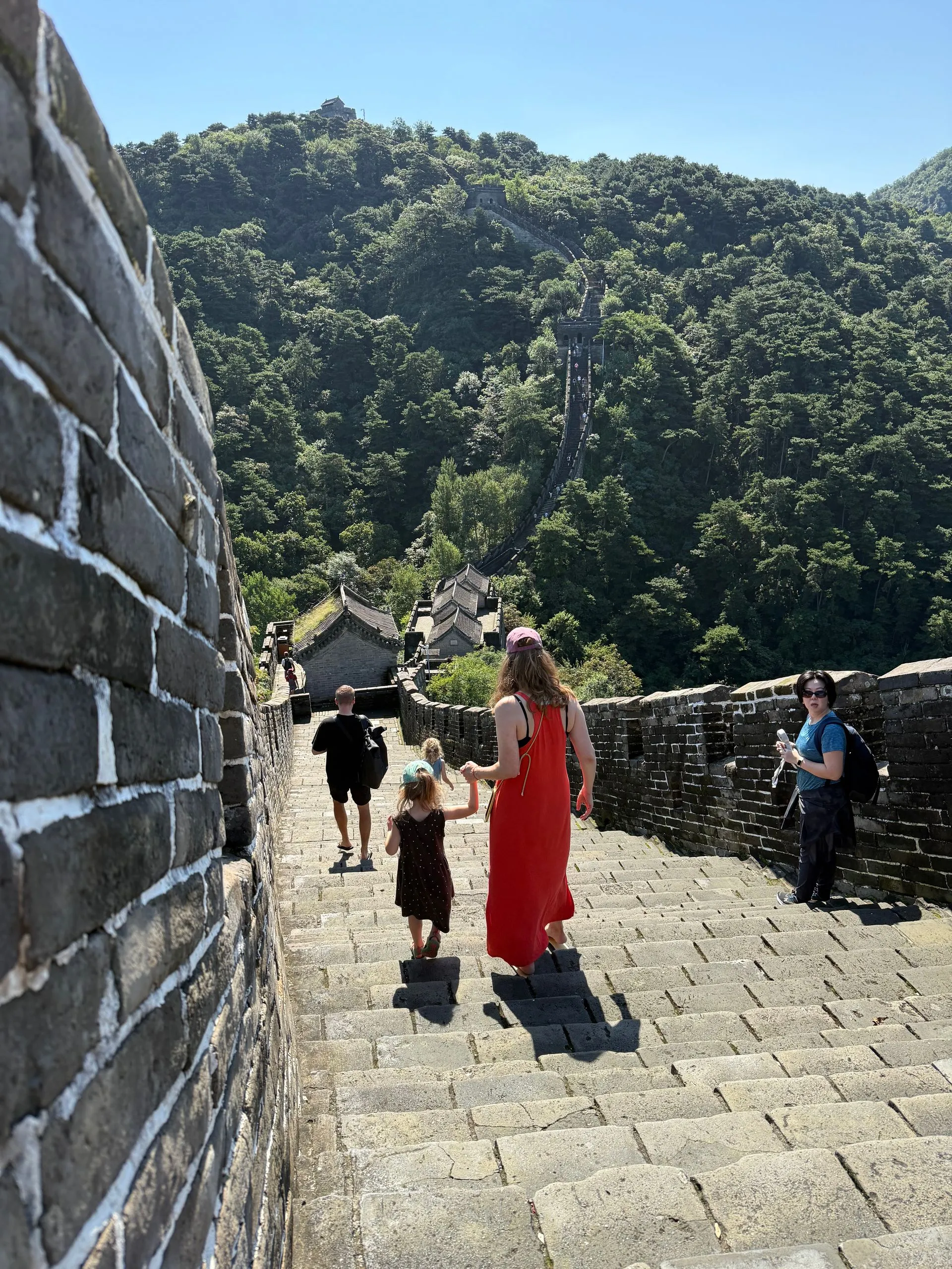 There are two entry point to the GREAT WALL close to BeiJing. We went to Mutlanyu which is further out, but has gondola and lift chair options along with a toboggan option down. You walk thru a plaza that has a bunch of amenities and then along a road with tons of vendors selling all kinds of must have items! I liked a lot of the art installations along the way, we enjoyed these after, we beelined for the Lift Chair to get to the top ASAP. WOW those first views are amazing - it was truly a pinch me moment for me to be here!