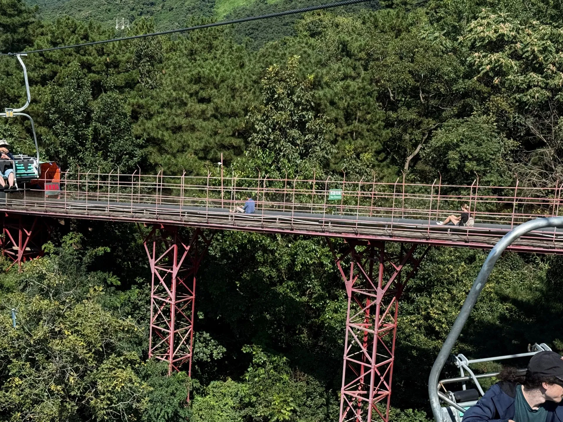 Sadly I was not allowed to ride the toboggan down from the Wall - they had an age limit - no one 60 and above. The operator would not budge for me, however several of my 60 + year old friends got to go, I was sad and it's the first time anyone has believed me to be that age on this trip. He never even asked to see my passport! RUDE! I did take picks of my friends enjoying as I took the Chair lift back down.