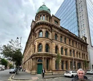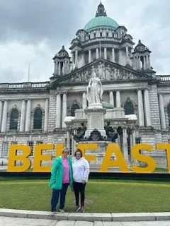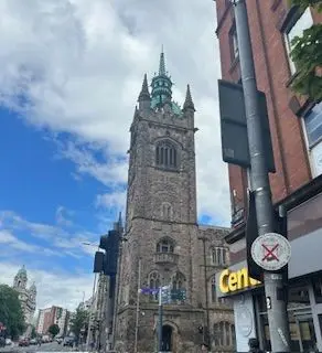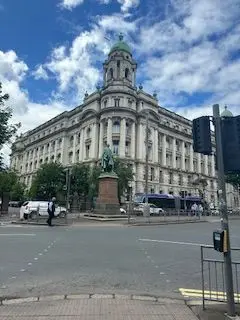 Wednesday May 29th we explored the City. Above is City Hall where we joined in with a free walking tour of downtown. The rain sprinkled off and on , but does provide dramatic clouds in photos and reasons to stop for a tea break or shop, which we did! Our hotel Ibis Belfast Centre was in a great location for walking all about.