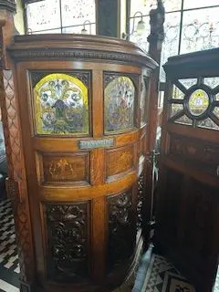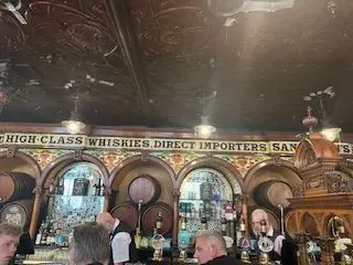 The owners are a mixed religion couple - the husband is Catholic and wife Protestant, and she adores everything about the royals. They compromised on the name the crown, but in smallest letters in Marquee outside and image of crown has to be walked on upon entry to the pub. The finishes inside and out are very detailed and unique. There are snugs lining the opposite side of the bar from 1880 built by Italian craftsmen working in the shipyards and on churches around Belfast they were designed to allow ladies and high society to have a drink without being overlooked.