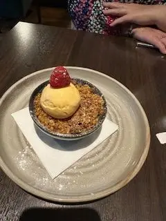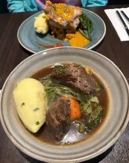 We had a yummy dinner at The Latern - Cod baked in fabulous sauce w sweet potatoes for me and Edel had beef roast, so tender! We split a sour apple tart for dessert.