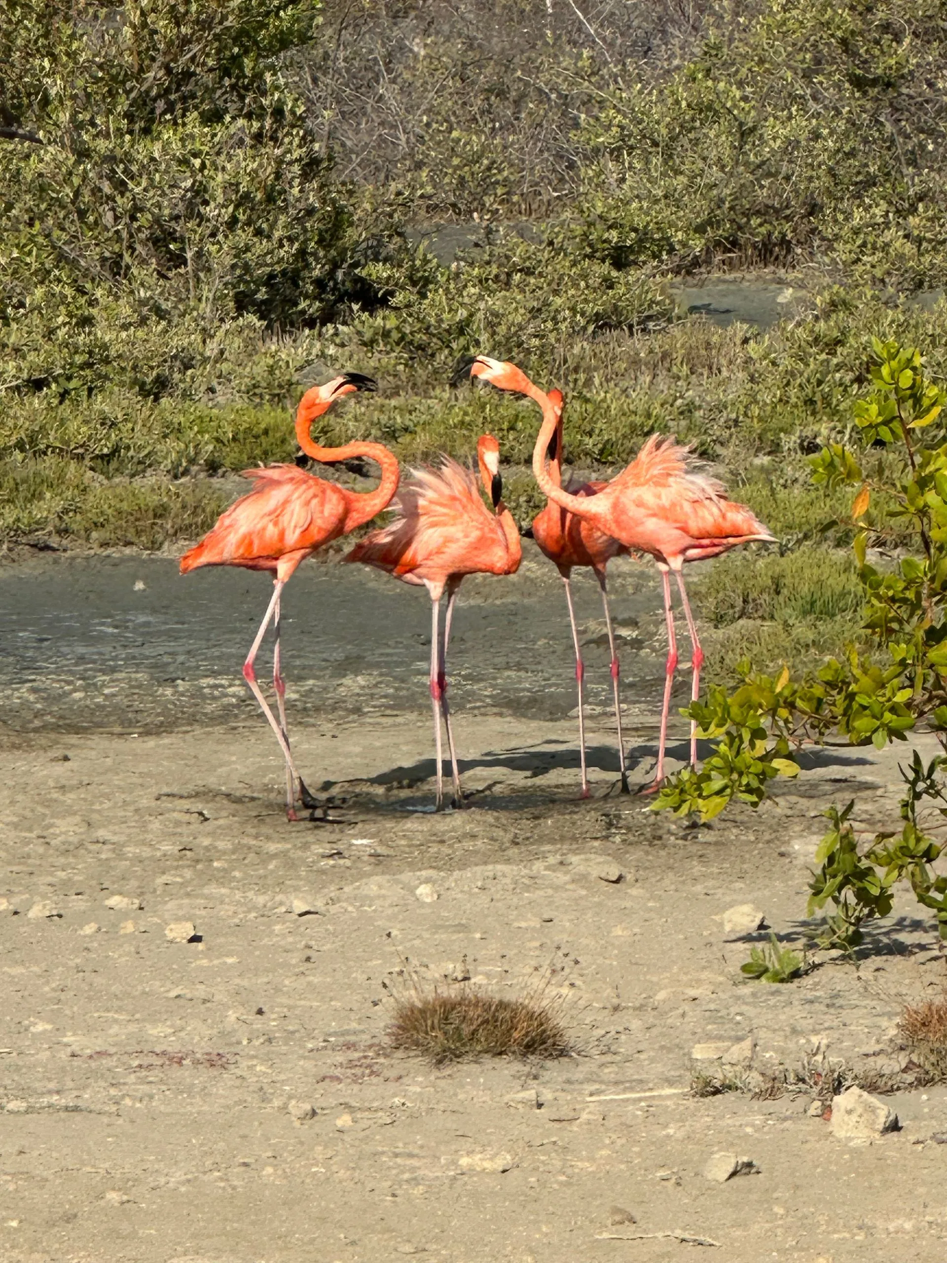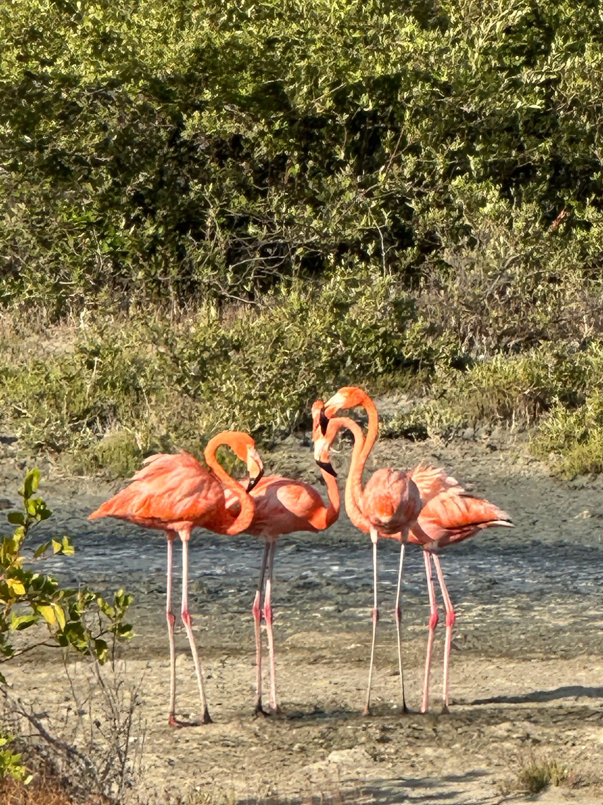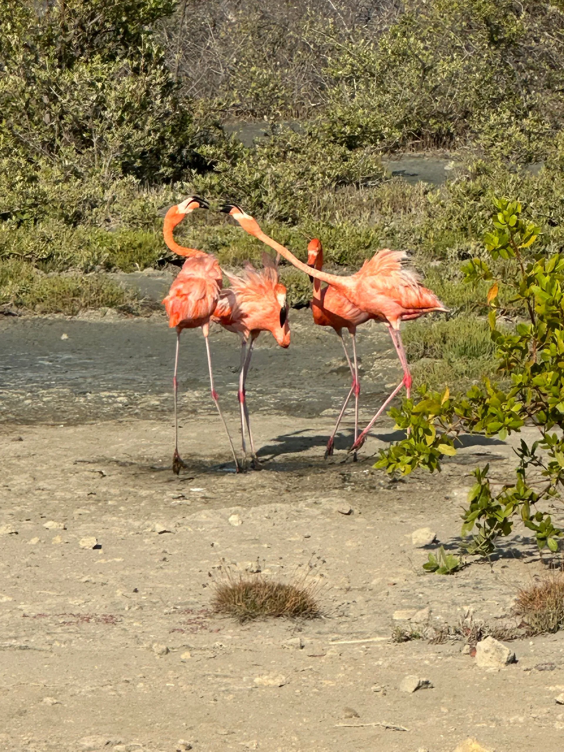Tons of Flamingos make this island home. They eat lots of crustaceans out of sand - giving them their pink color.