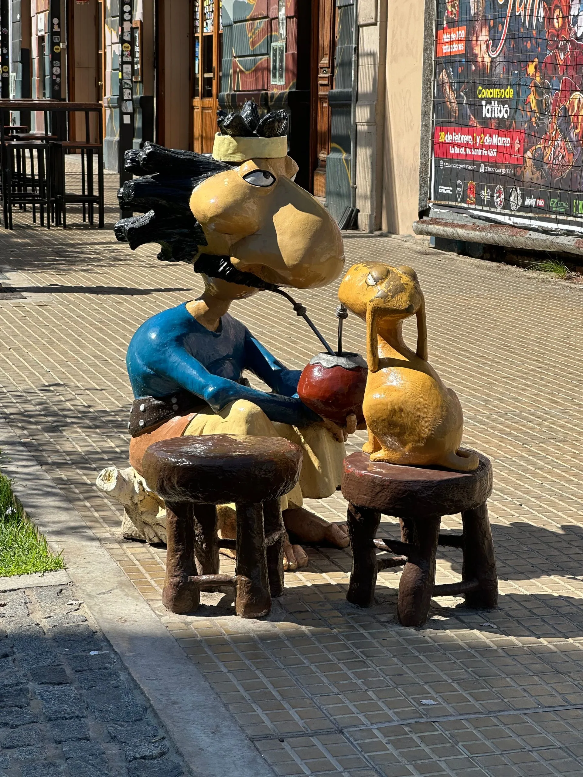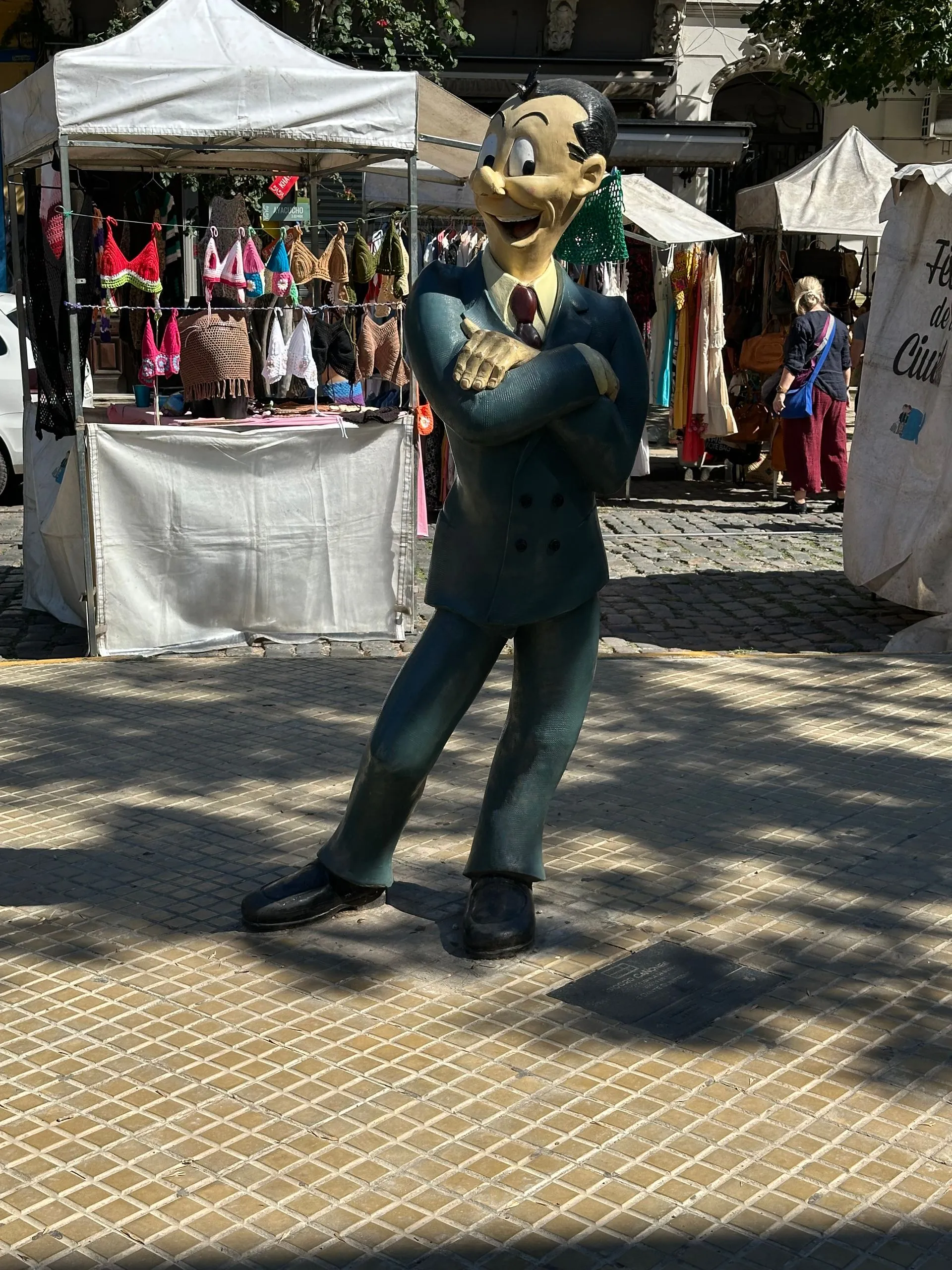 Sunday Market in San Telmo area, with all their comic characters. We walked this part of town, had some empanadas and saw some street performances of Tango!