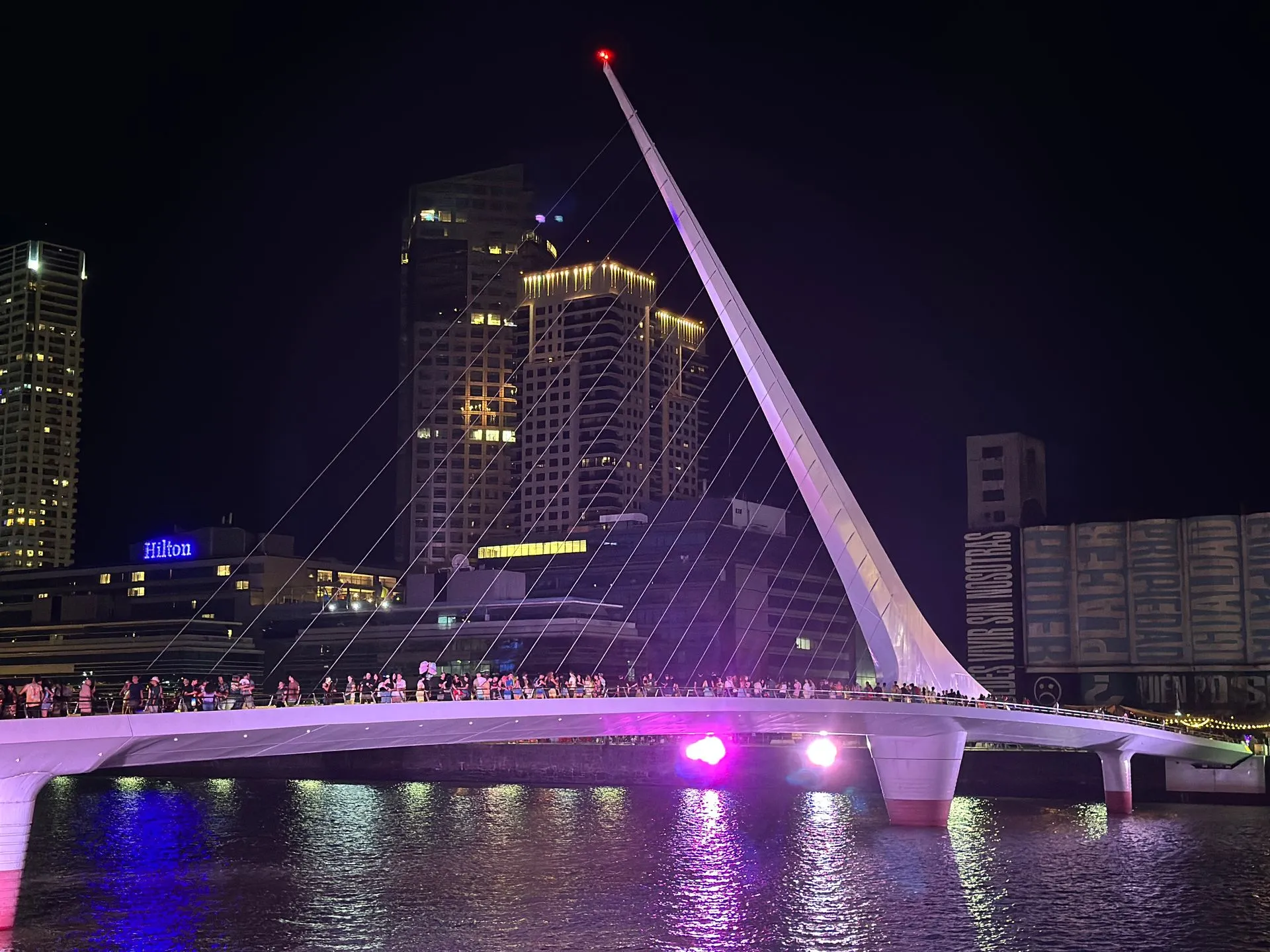 We then headed to the Puerto Madero commercial area alongside the river. The Puente de la Mujer is a rotating footbridge with a cantilever spar cable that is illuminated at nightby showcasing it's asymmetric lines. Architect was Santiago Calatrava. Here we had a dinner reservation set up by Bob Meyer's childhood friend and local resident Mirta ( retired attorney) , who spent the afternoon with us, giving us local insights to the City and People.