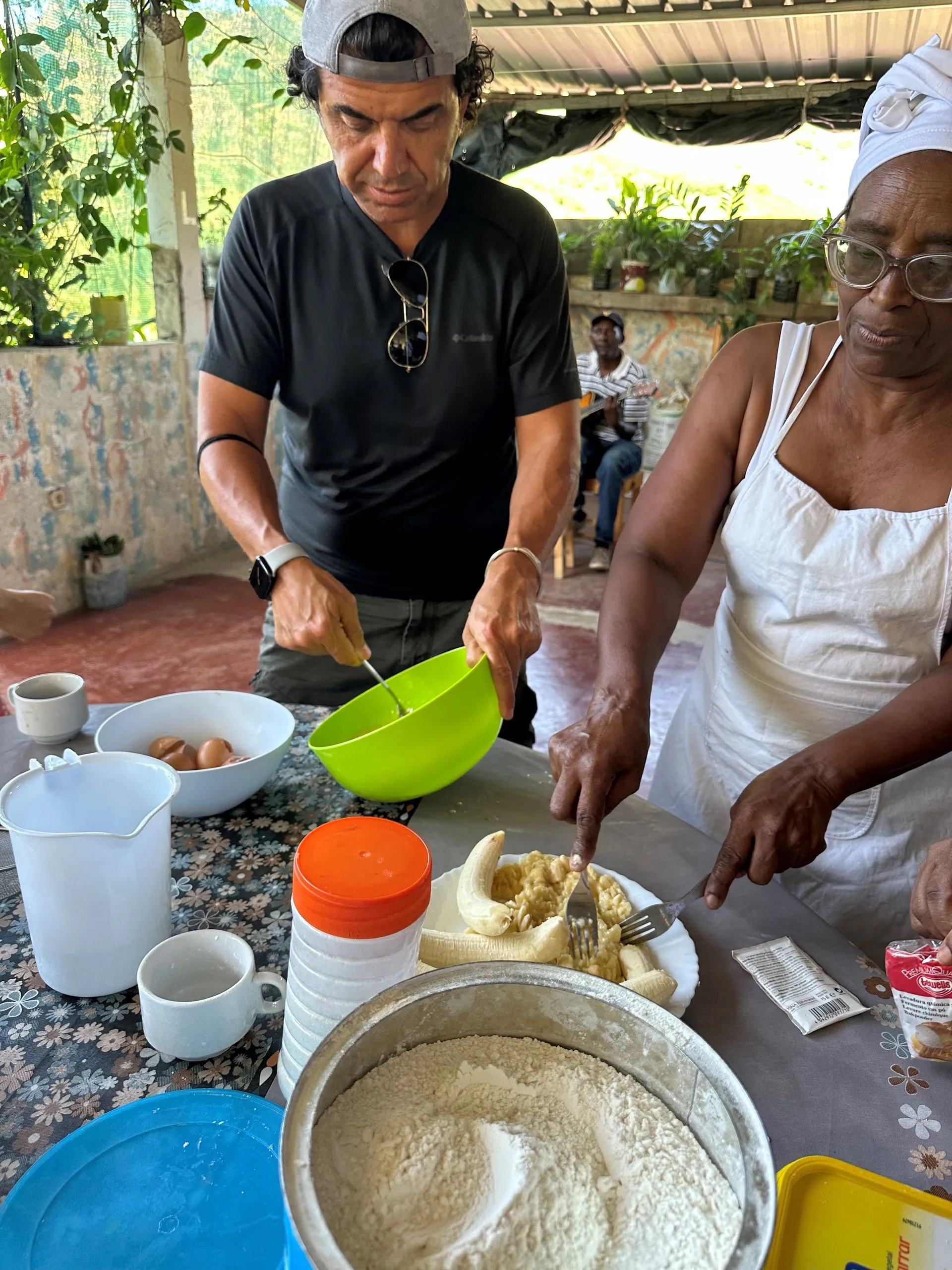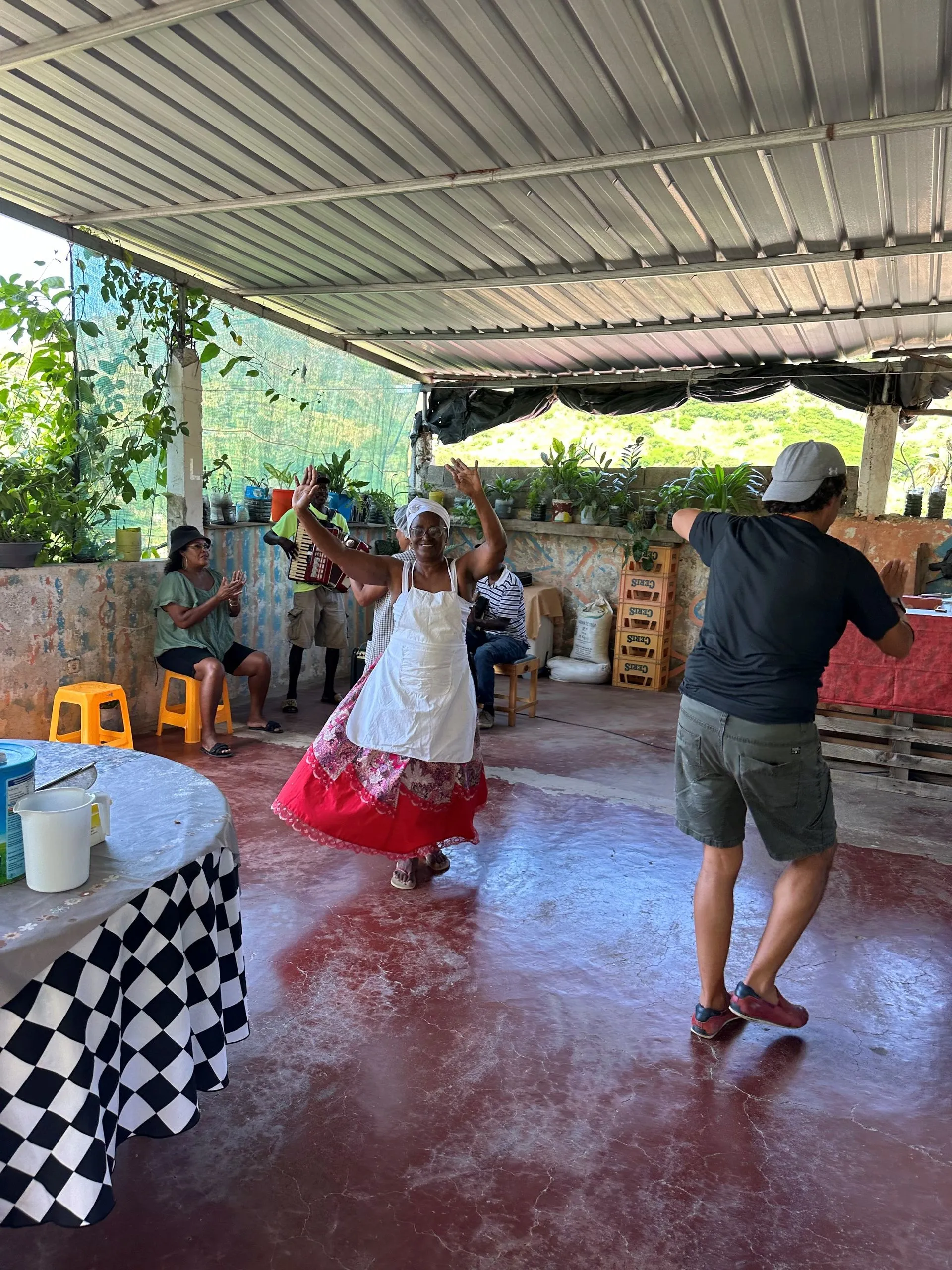 The tour took us thru the capital city of Praia into the countryside, with the first stop being the above local family's home for a cooking lesson and taste of the local's breakfast. We were greeted by genuinely joyful women, who just wanted to dance and smiling men playing the music. I am not sure whose home it was, but they could not have more gracious. The ladies then taught us how to make Cuscuz (corn meal steamed) bread and Fidjos (banana fritters) and we danced some more while it cooked.