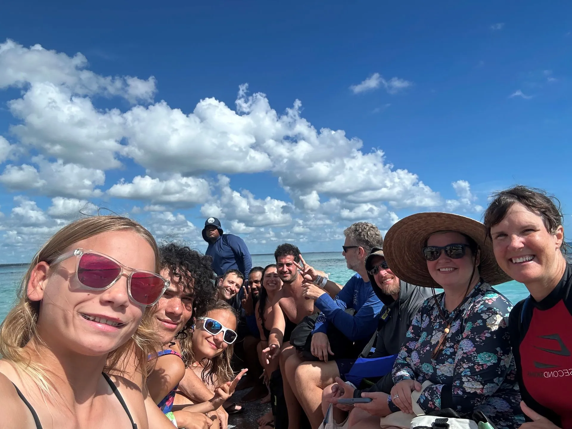 Saturday 12/7/24 I just wanted to have some fun in the sun! So, ten of us went on speed boat day trip to nearby Catalina Island. On left is Silja from South Africa, then Whitney & Doug, from Montana, Scott and me across from Scott, and coming back up the right side, is 13-year-old Lucia, Zenzo,17 & Alionia,15 - the girls are Doug & Whitney's and Zenzo, (now dating Alionia), is the son of Silja. Missing from this dingy shot is Holly and Cathy who also came along for day. The back of our dingy was a group of Italians, who started drinking a lot earlier than us!