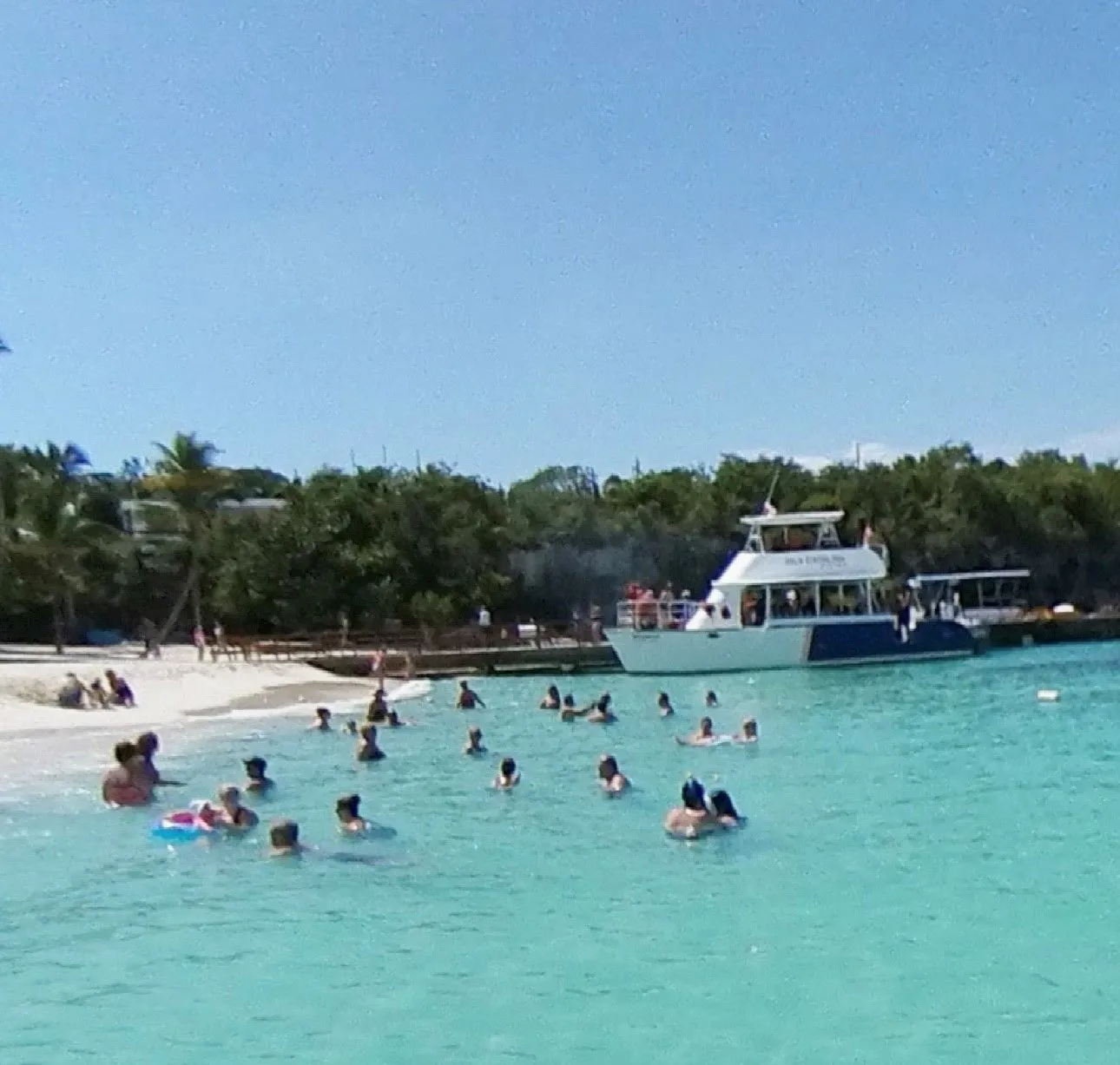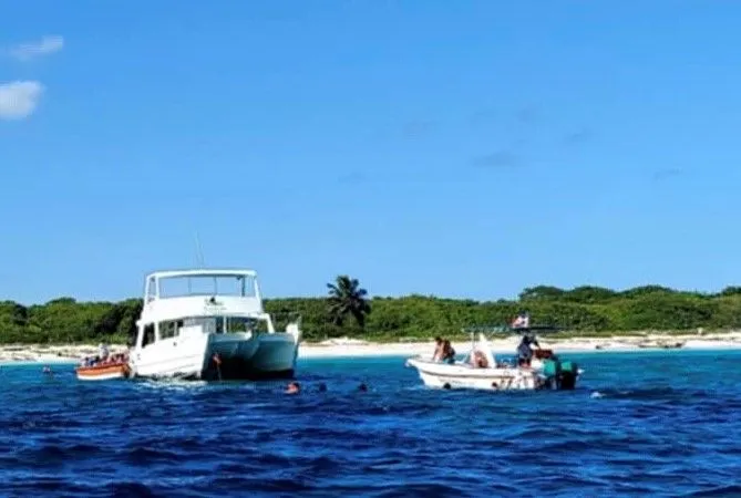 a large coral reef that runs parallel to Catalina Island. Dominica Tours provided lots of drinks, rum & cokes and a fresh BBQ lunch, once we got on shore at the island. Several excursion operators use the island, with similar packages and a party vibe runs up and down the whole shoreline. I am working on improving my day drinking skills and this rum was particularly good! The package only $55 USD for the whole day, included loungers and umbrellas on the beach, snorkel equipment and everything else! We spent the whole time in the ocean except when we got out for the BBQ. A fun day relaxing, drinking, talking and laughing.