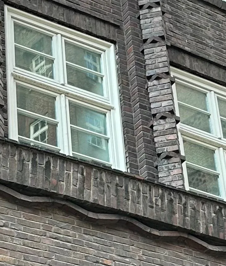 Built in 1922-24 for client H.B. Sloman with architect F.Hoger. Was first building in the Kontorhaus ( office or counting) district of Hamburg. An icon of Expressionism in an inspiring environment of modernity and tradition. Love all the unique brick details, have never seen this type of craftsmanship before. Registered as a UNESCO World Heritage Site.