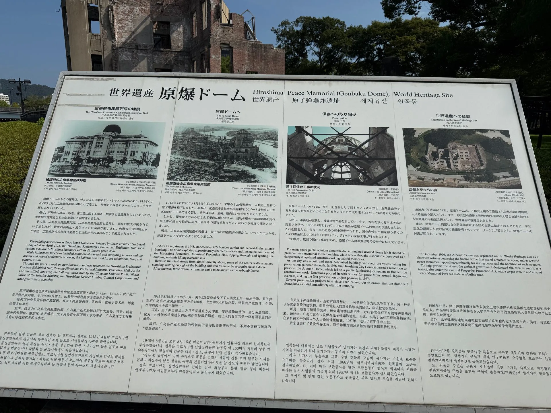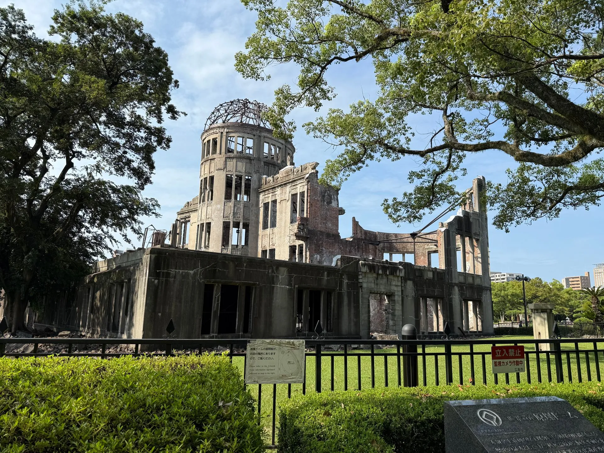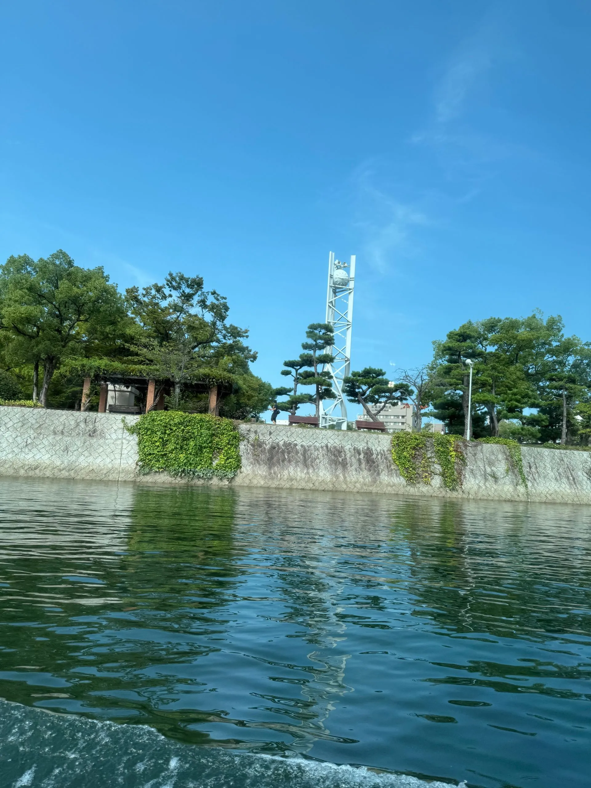 A - Bomb Dome with it's distinctive green roof. There is a Museum and a bell and clock tower. From here, I took a 50 minute motor boat ride out to