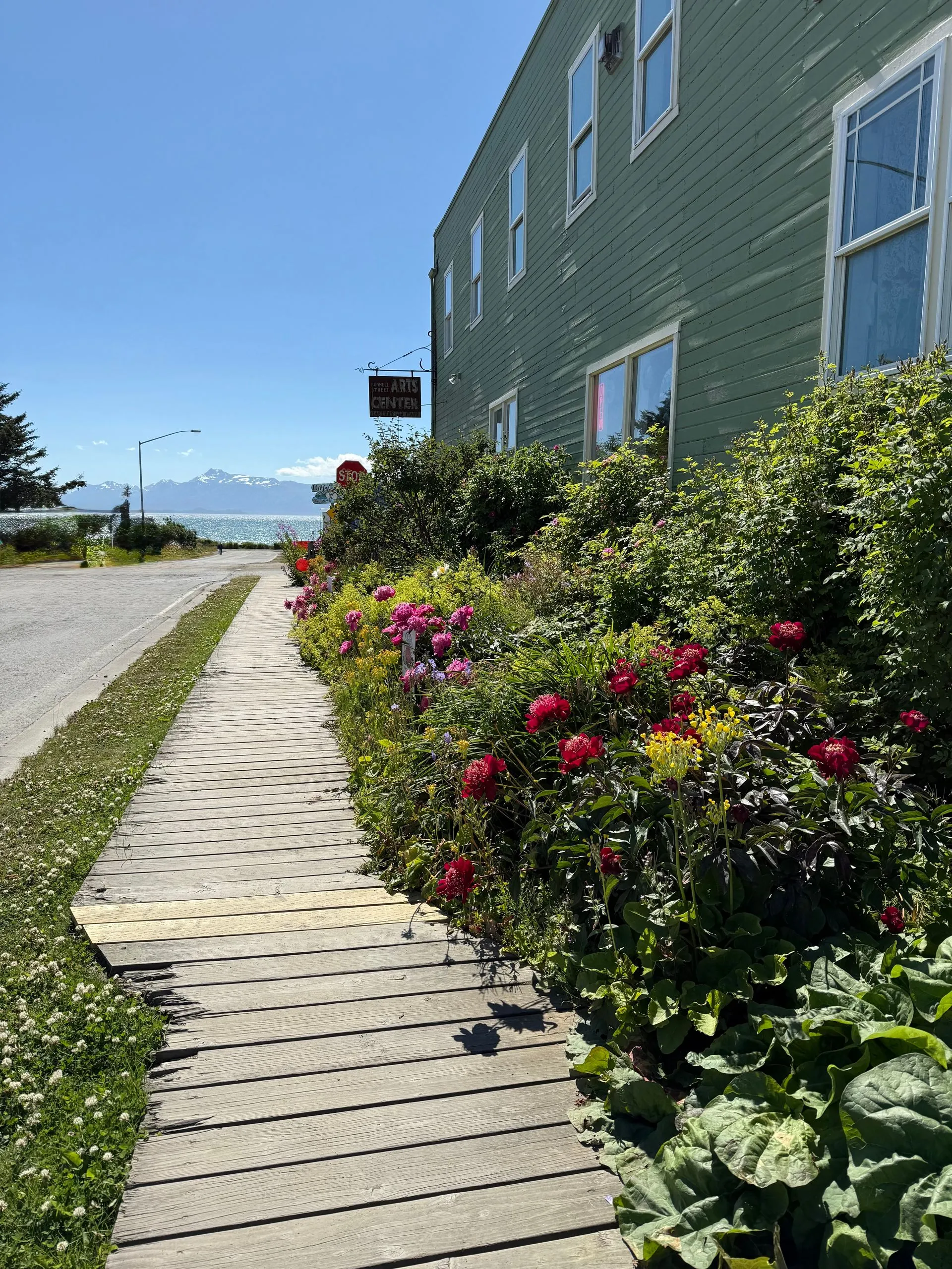 This is prettiest Port in Alaska!! The mountains that surround the Port are majestic and the wild fireweed everywhere is just stunning! I loved this sleepy little Port. We docked here for 2 days and had the place to ourselves except for the locals and summer campers who were also here enjoying the beauty and quaintness of this special place. The Peonies Festival was in full bloom while we were here, so walking around the downtown in the lovely sunshine was delightful. The ship provided a shuttle into town, since the pier sits out on the far end of a Spit of Land, that creates a nice beach, marina and boating areas, about 5 miles away from the downtown and residential areas.