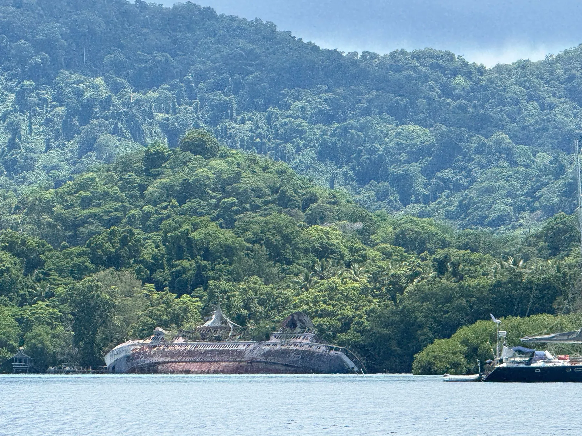 After spending the morning at Simon's we headed to Roderick's Bay which we thought was just another snorkel spot and were delighted to find out there was a German expedition cruise ship the MS WORLD DISCOVERER wrecked there since April 30, 2000. They struck an uncharted reef and the captain was able ground the ship to prevent it from sinking on the edge of this small village and get all 79 passengers and crew off safely. It was declared a total loss and abandoned in Roderick Bay. Soooo Cool !! We had a great afternoon snorkeling here and they had another lunch feast waiting for us when we arrived!
