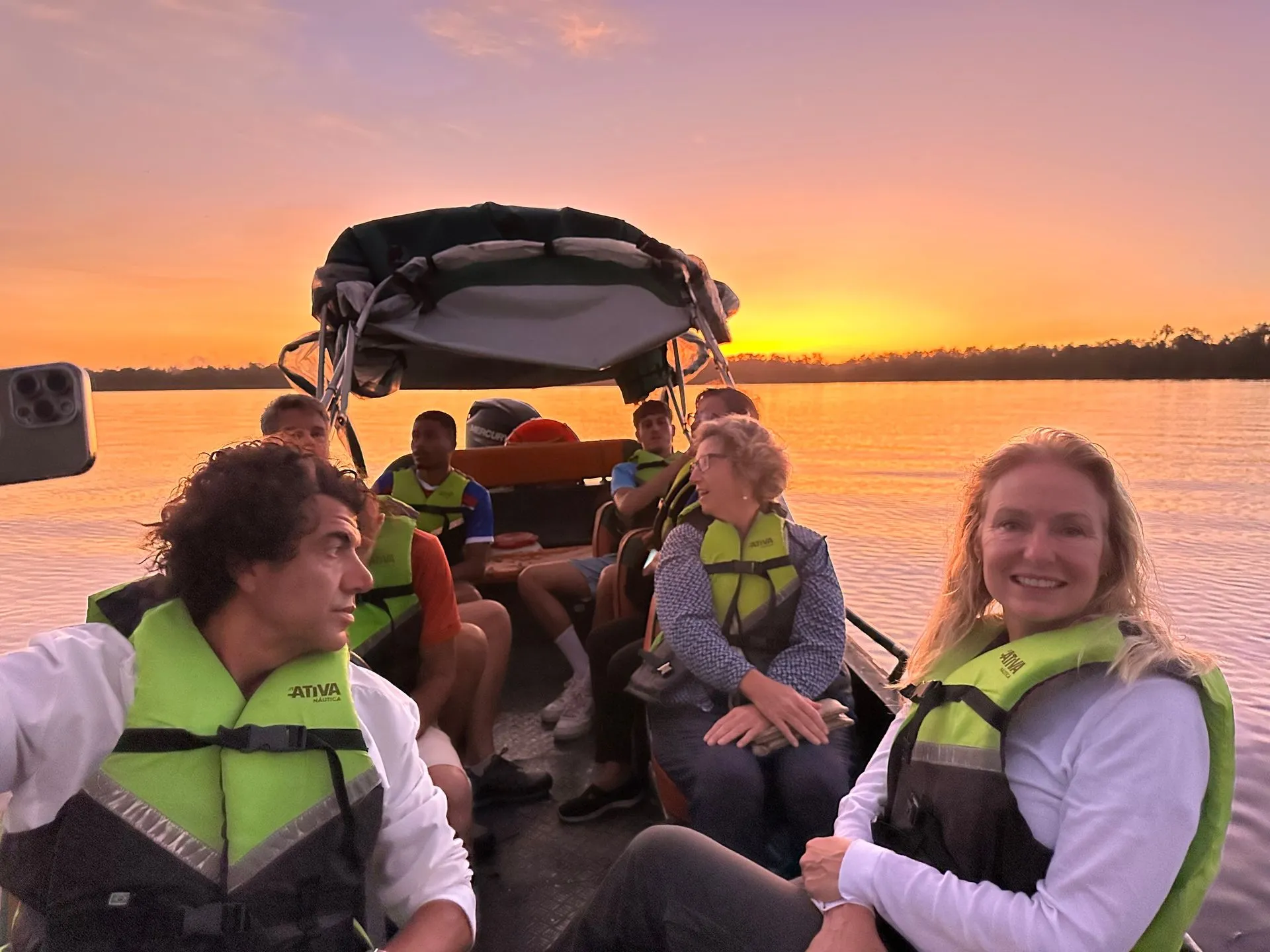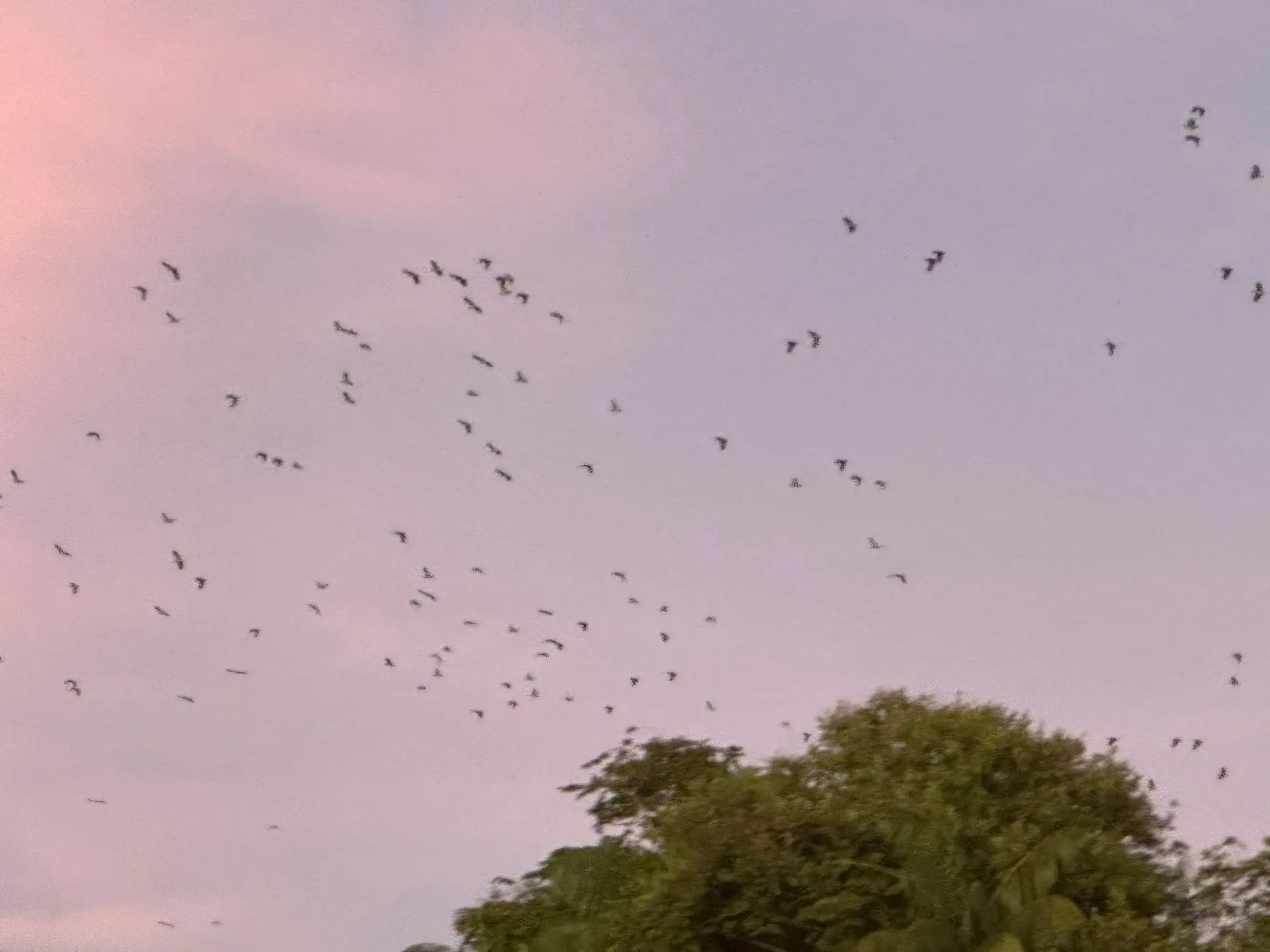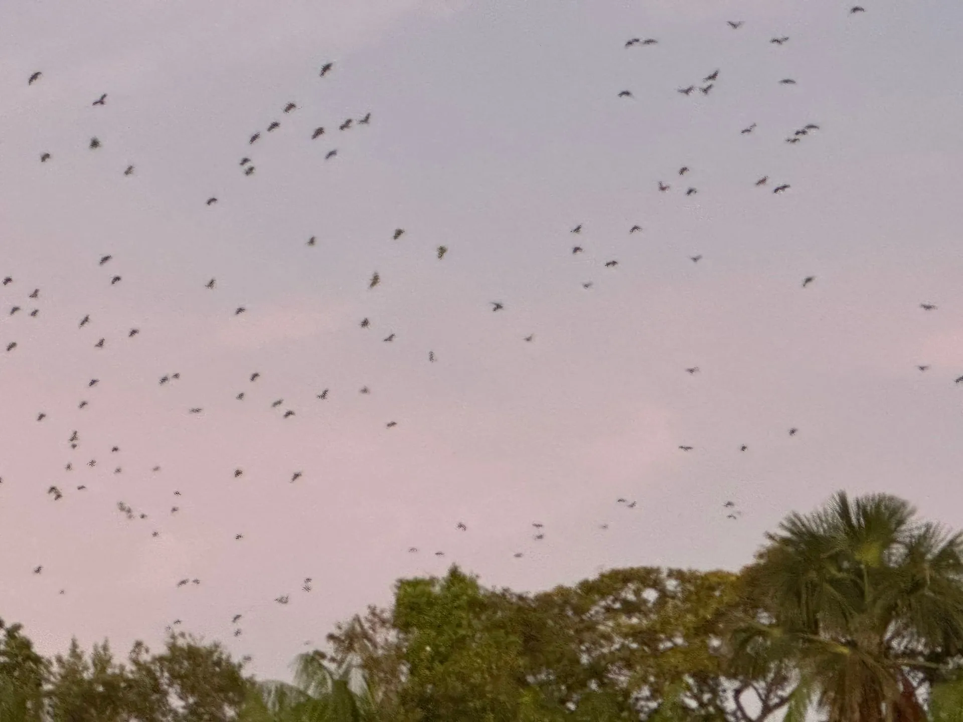 OH WHAT A SHOW WE SAW!! The photos don't do justice to the experience. First off, you hear the noise before you see anything. It comes in waves, as 100's of Mangrove Parrots wake up and start squawking. Our guide explained parrots mate for life and the female does the picking. So you see 2 birds flying together as a couple, 3 birds is a female testing out 2 males, and the balance of 4 through 8 size groups are families where the kids are just learning to fly the distance and many times can't make it - so the whole family comes back and they go on to plan B. The morning light is magical! Five of us from ship part took - Silja, Memo, Callie Scott & Myself along with 2 college grads from London.