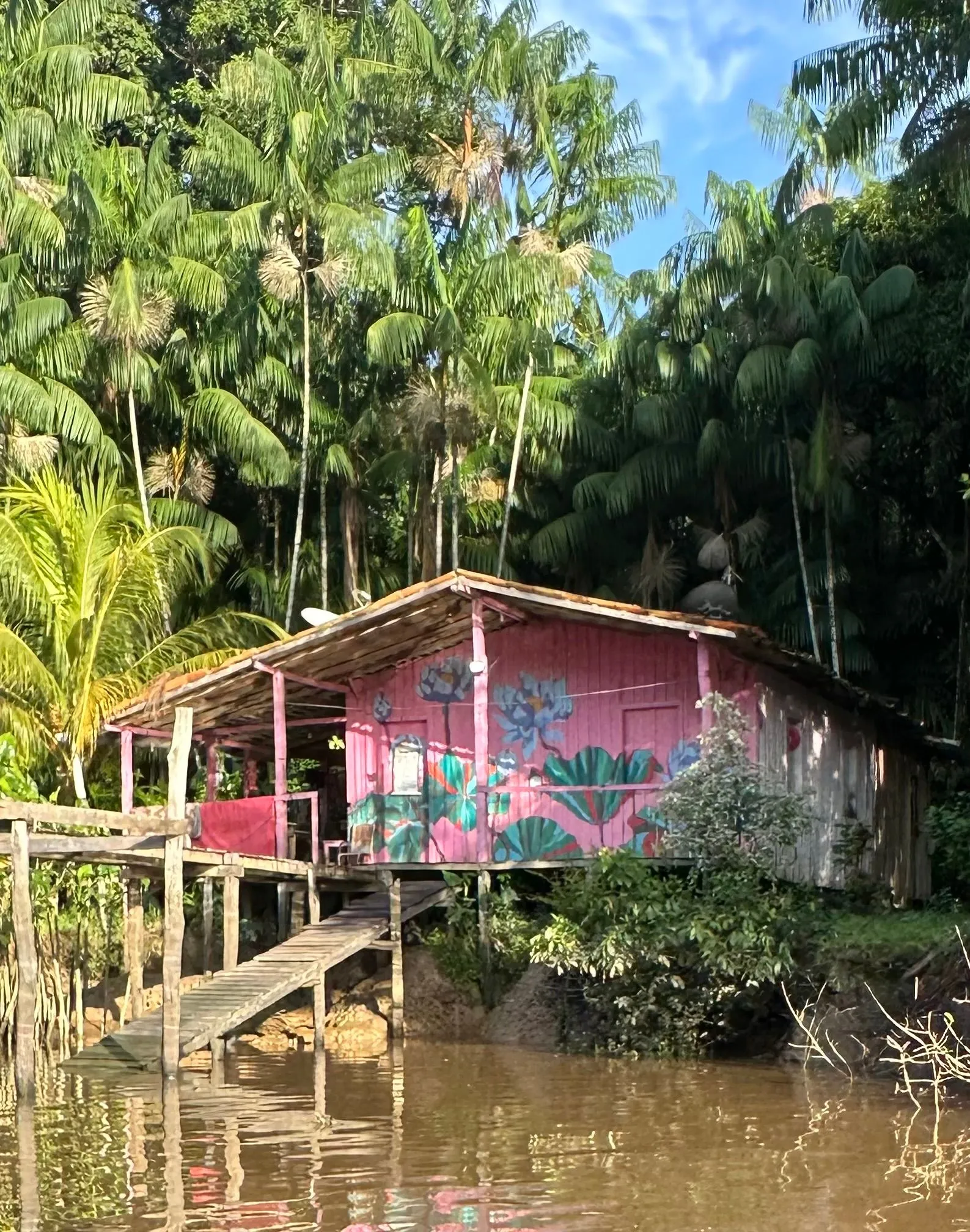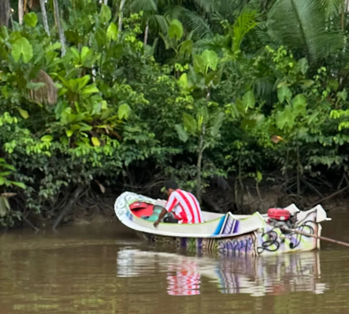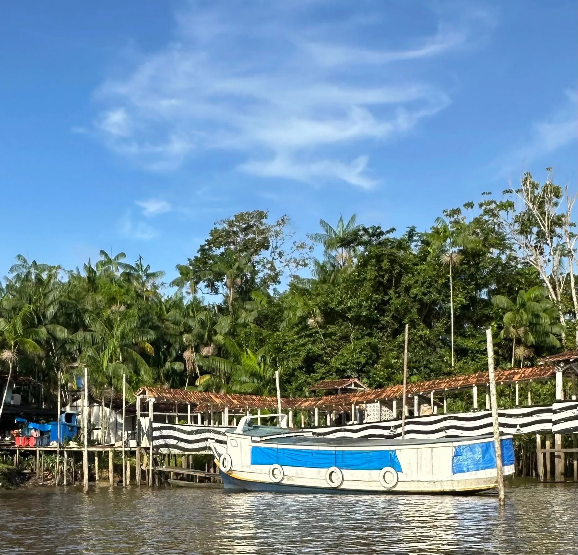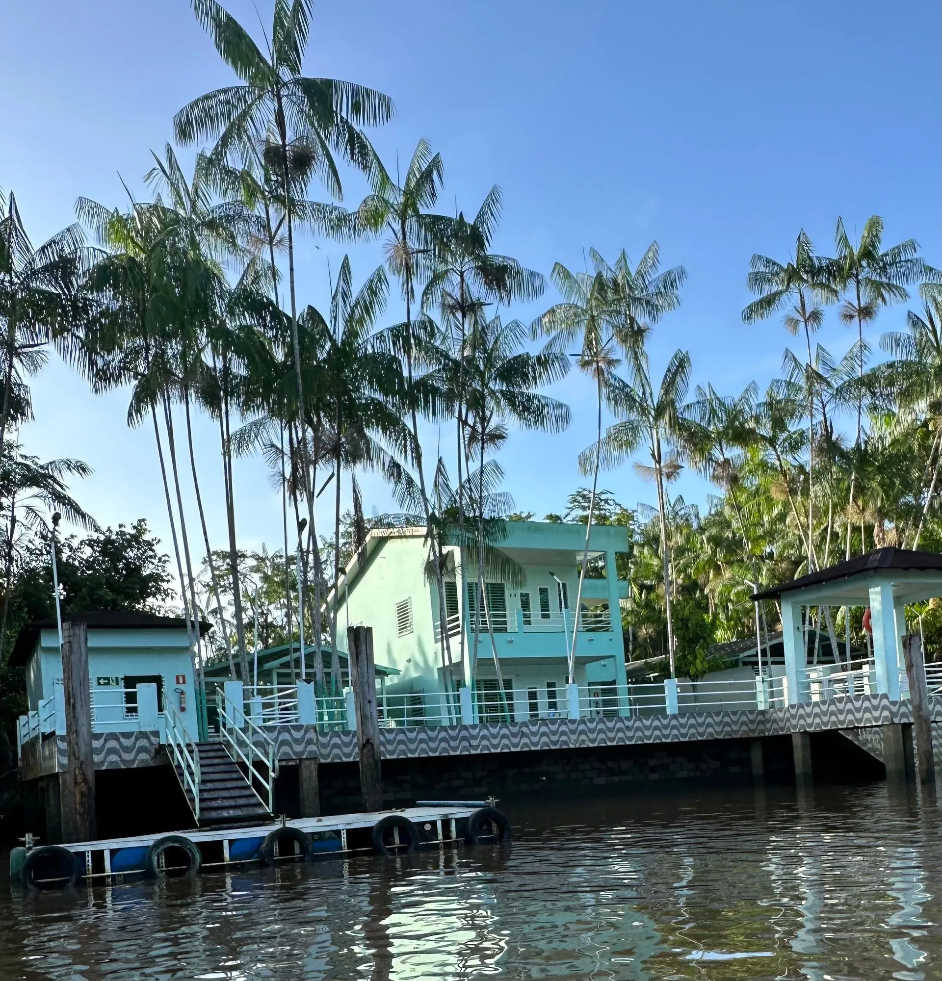 Another reason we got a hotel room in Belem for the night was we wanted to go on Sunrise trip Sunday morning to the Island of the Parrots. A driver picked us up from Hotel at 5 am and took us to a small boat dock, where we met tour guide and boat captain and traveled to Parrot Island. It was about a 30 minute ride thru the harbor and we arrived right when the first rays of morning sun were awakening the 100's of Mangrove Parrots, who live on this island.