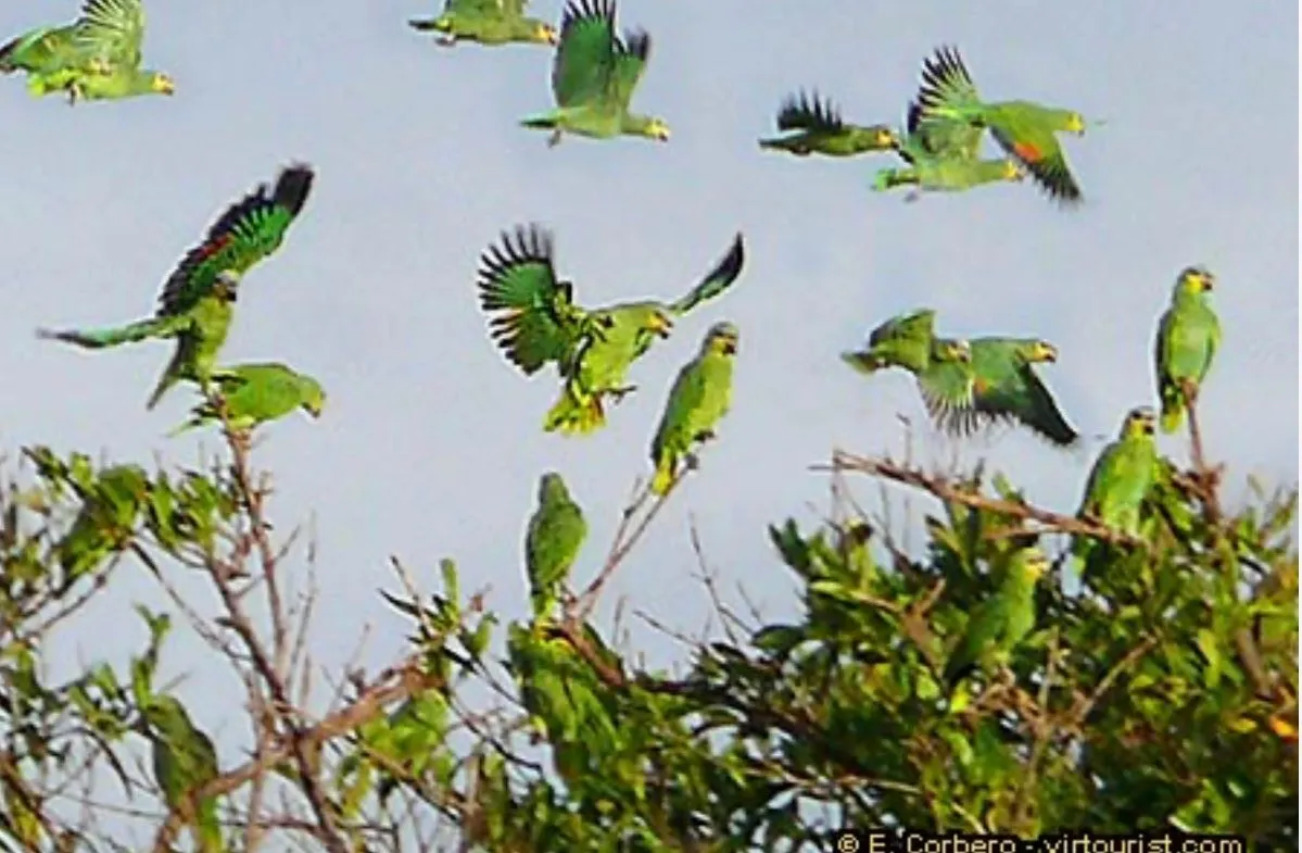 Below are closeups of Mangrove Parrots from our Amazon visit to tribe and center photo is off guide's website.