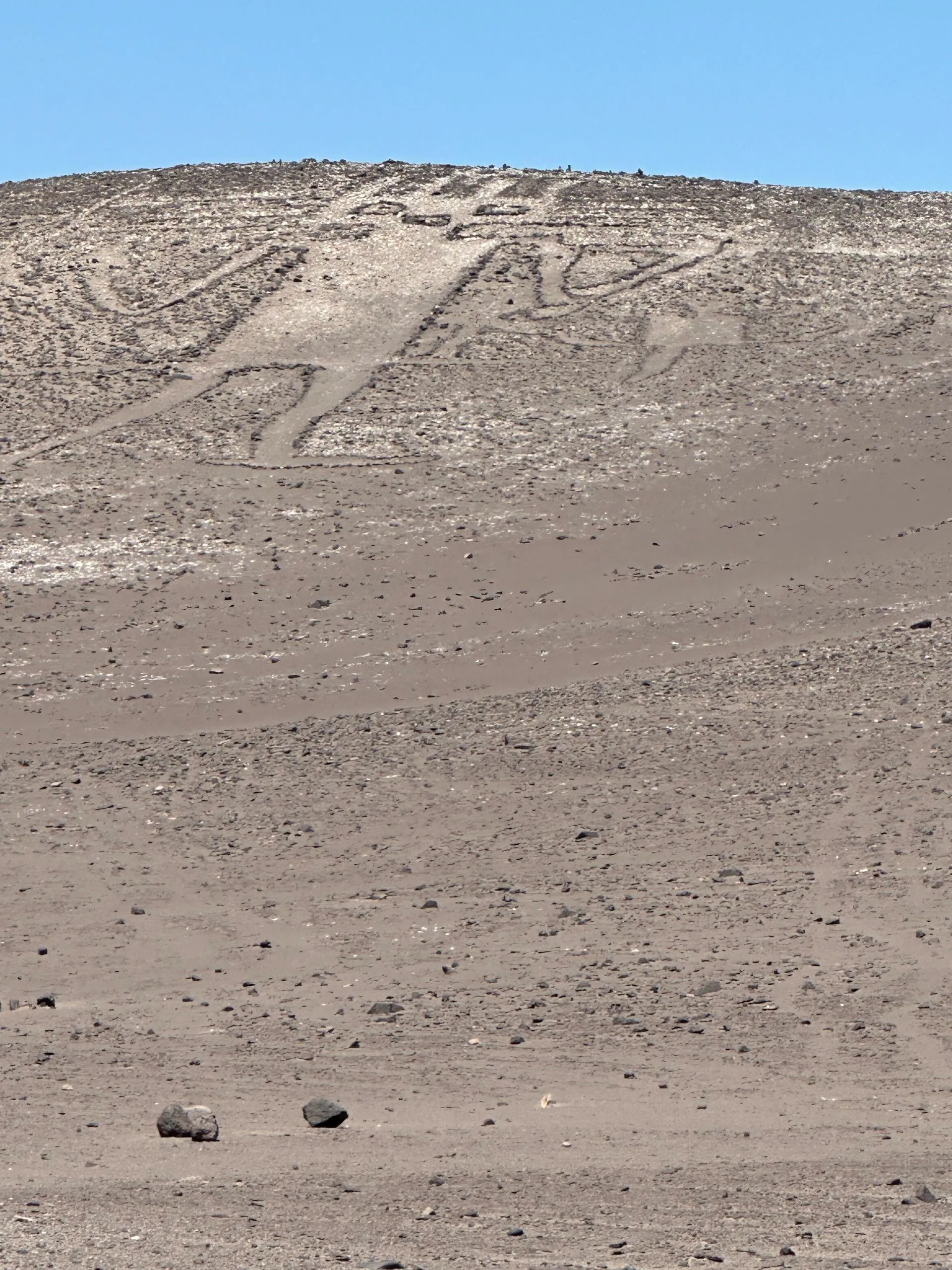 Next we drove out further into the desert to see The Atacama Giant or Gigante de Atacama or the Tarapaca Giant an anthropomorphic geoglyph. It is the largest geoglyph with a human representation in the world at 390 feet. It is considered an archaeological monument and cultural heritage of Chile. It is believed to be a shaman or deity or spiritual figure. Regardless, our uber driver had never seen and he hiked with us to the desert viewing spot. A very different kind of day!