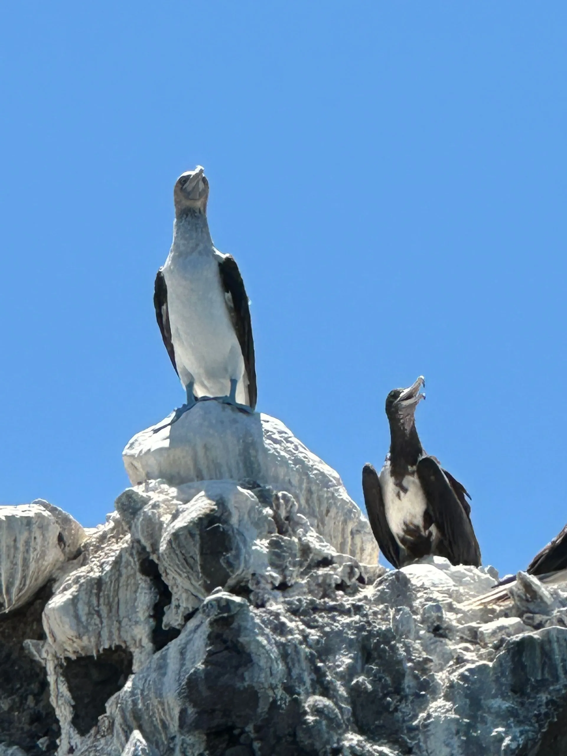 Then we sailed around an island covered with Blue Footed Bobbies and snorkeled in the crystal clear reef surrounding it. The water was so refreshing and the reef was nice and shallow so you could easily skim over the top and hear the coral crackle and watch the fish swim in and out of all kinds of holes and hiding spots. then we dropped anchor and had our picnic lunch of fresh cerviche, fruit and ham & cheese. We had lots of time to investigate the beach, swim and relax in the sunshine. Around 2 pm we headed back to the port.