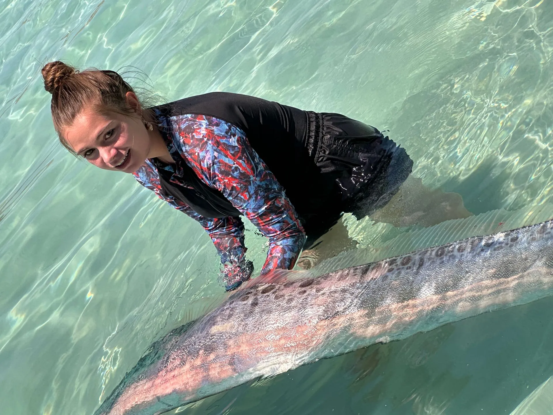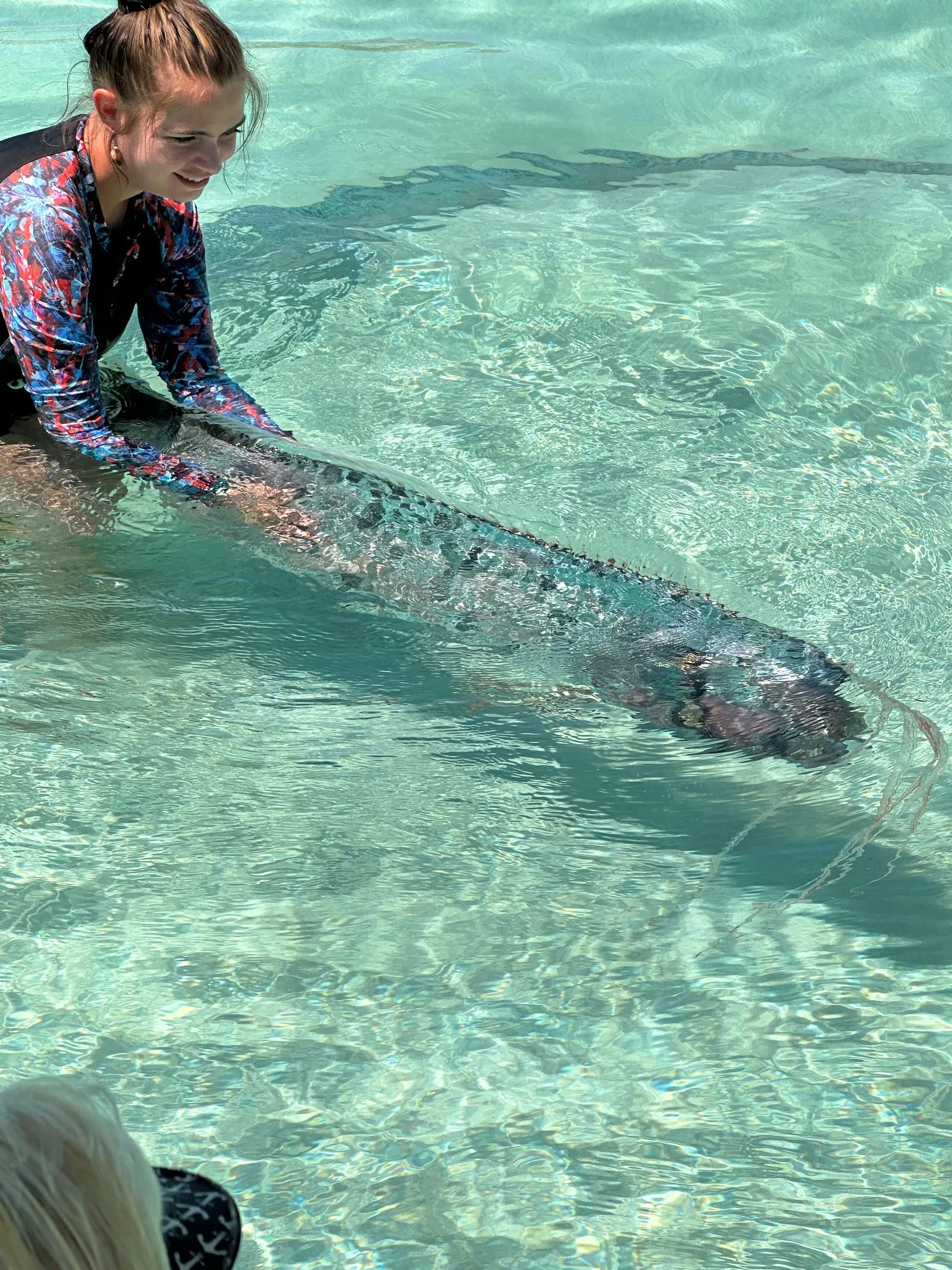 As we were leaving the cove we spotted a large Oar fish which appeared in distress. Our guide jumped into action, explaining to us everything she observed. It was alive but its right side gill had been damaged and it was dying. She tried to get water running through its gills by pulling it backward through the current but it was too late. She was so sad, I swear she would have given it mouth to mouth if she thought it would help. I took video so she would have record of it for her studies and social media. She finally had to let the fish lie back down and make her peace with all her efforts. Was so touching to watch.Loved seeing her passion! Nicky Dieter you're a gem!