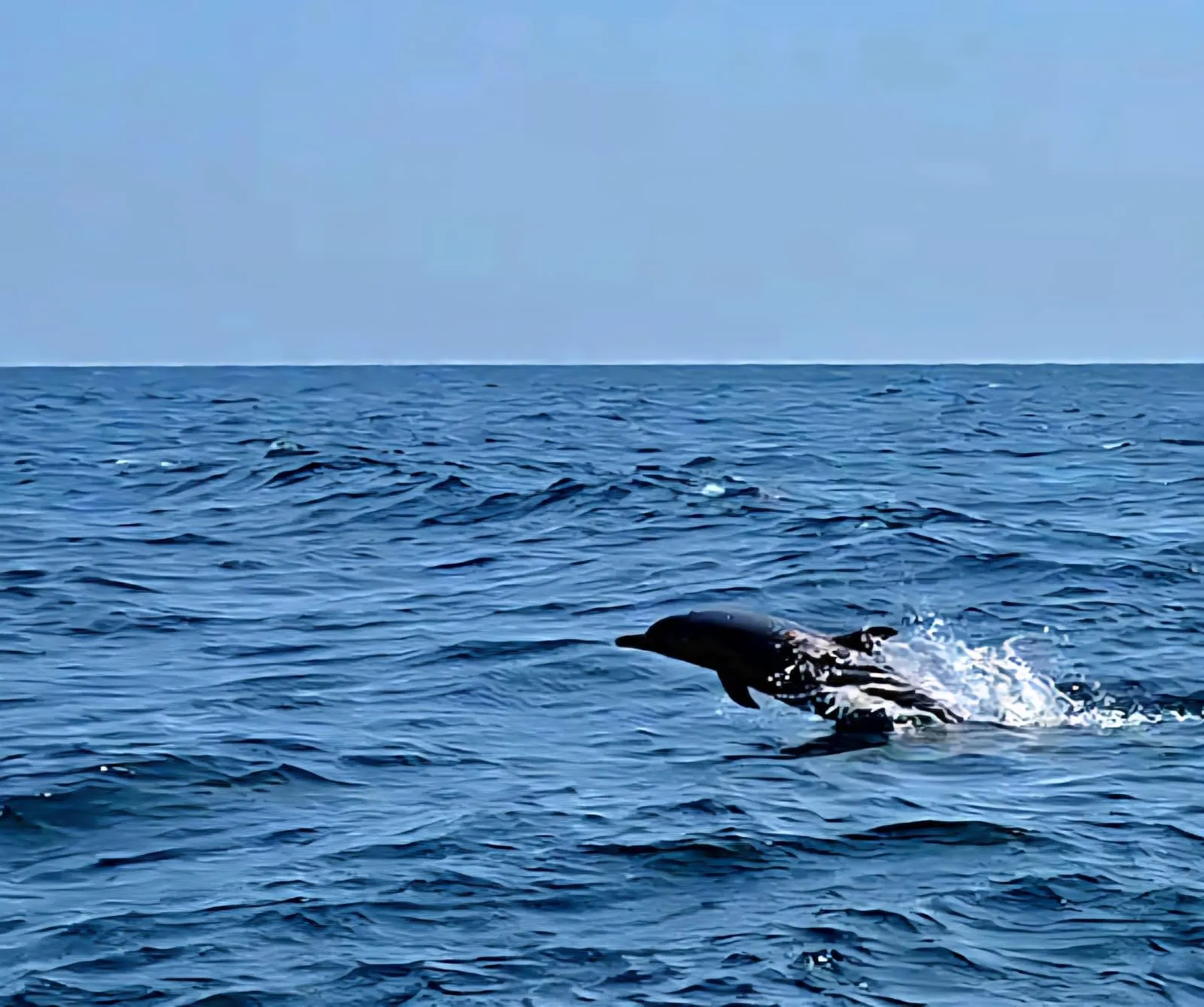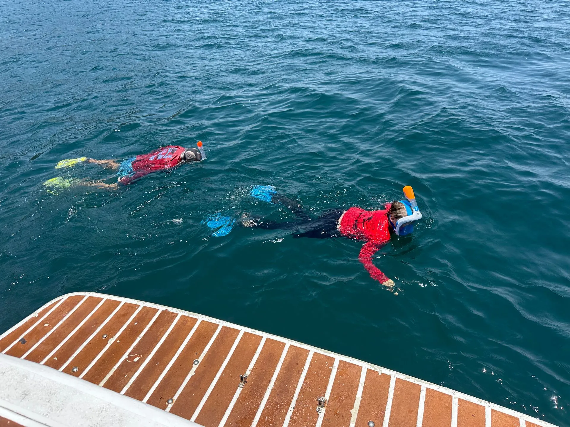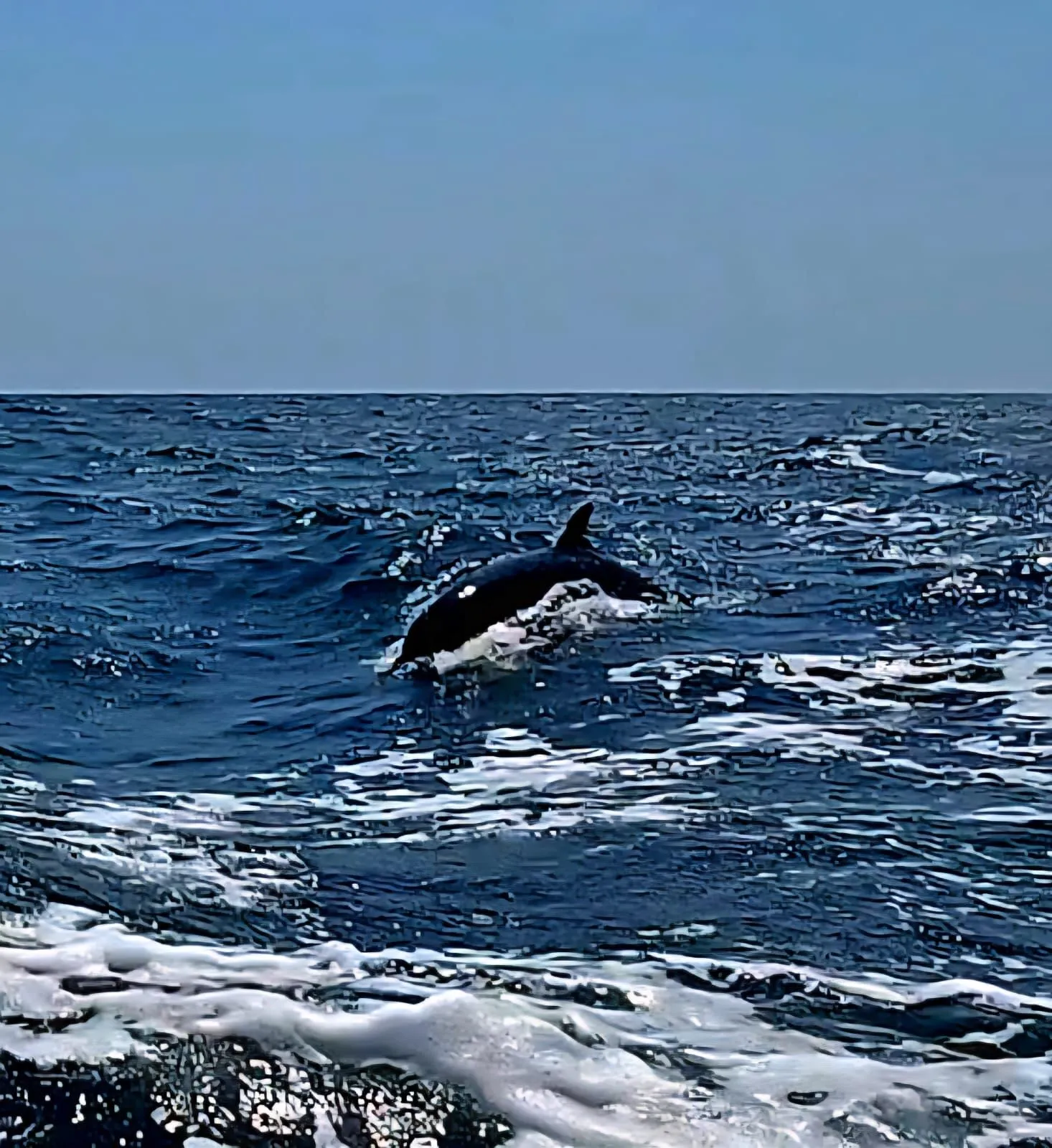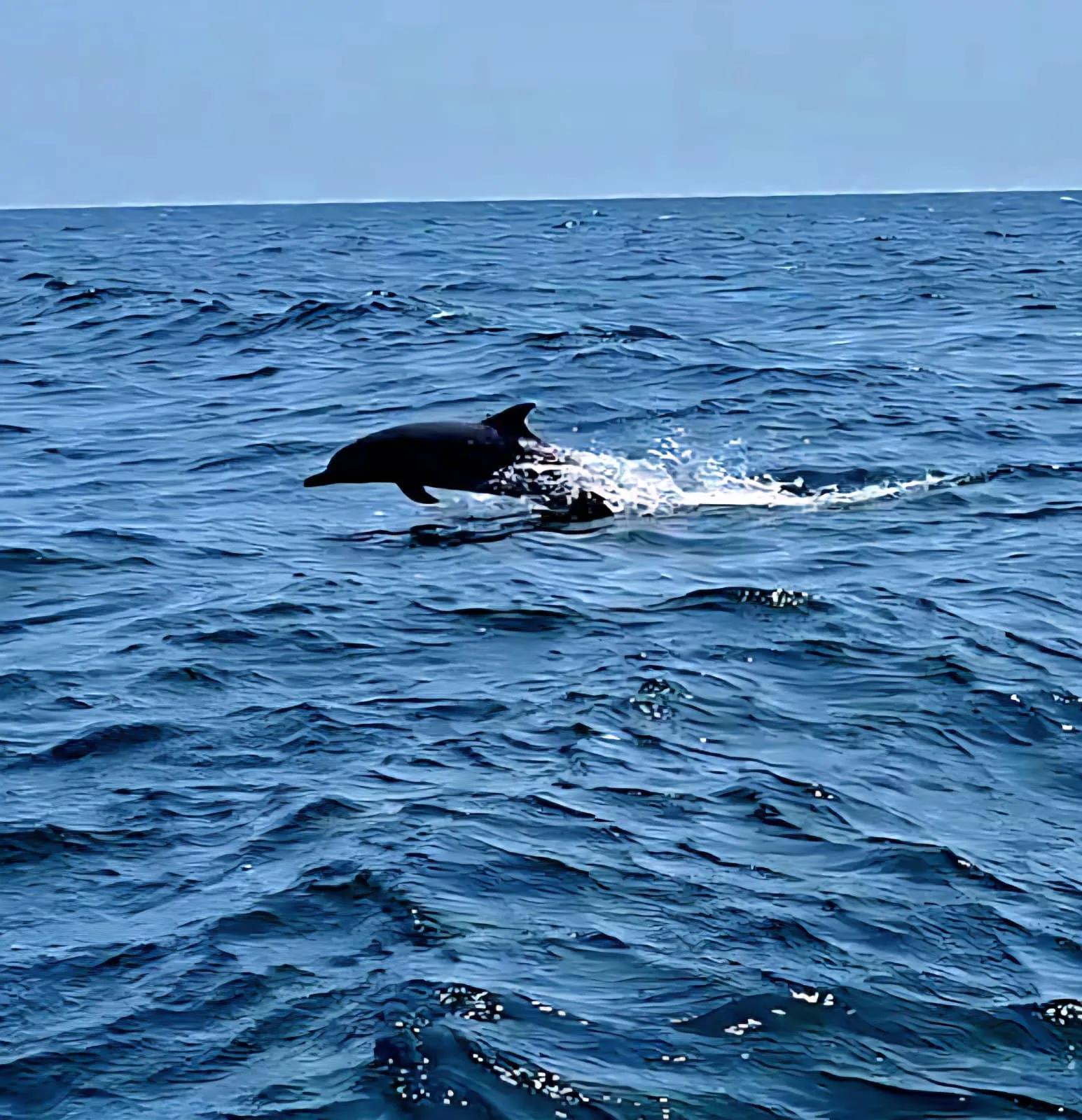 On the way back to the Port we were all chilling in the sunshine, singing along to music, when a whole group of dolphins popped up alongside us and were racing to stay up with the boat. They were so close and the small ones were giving us a show!