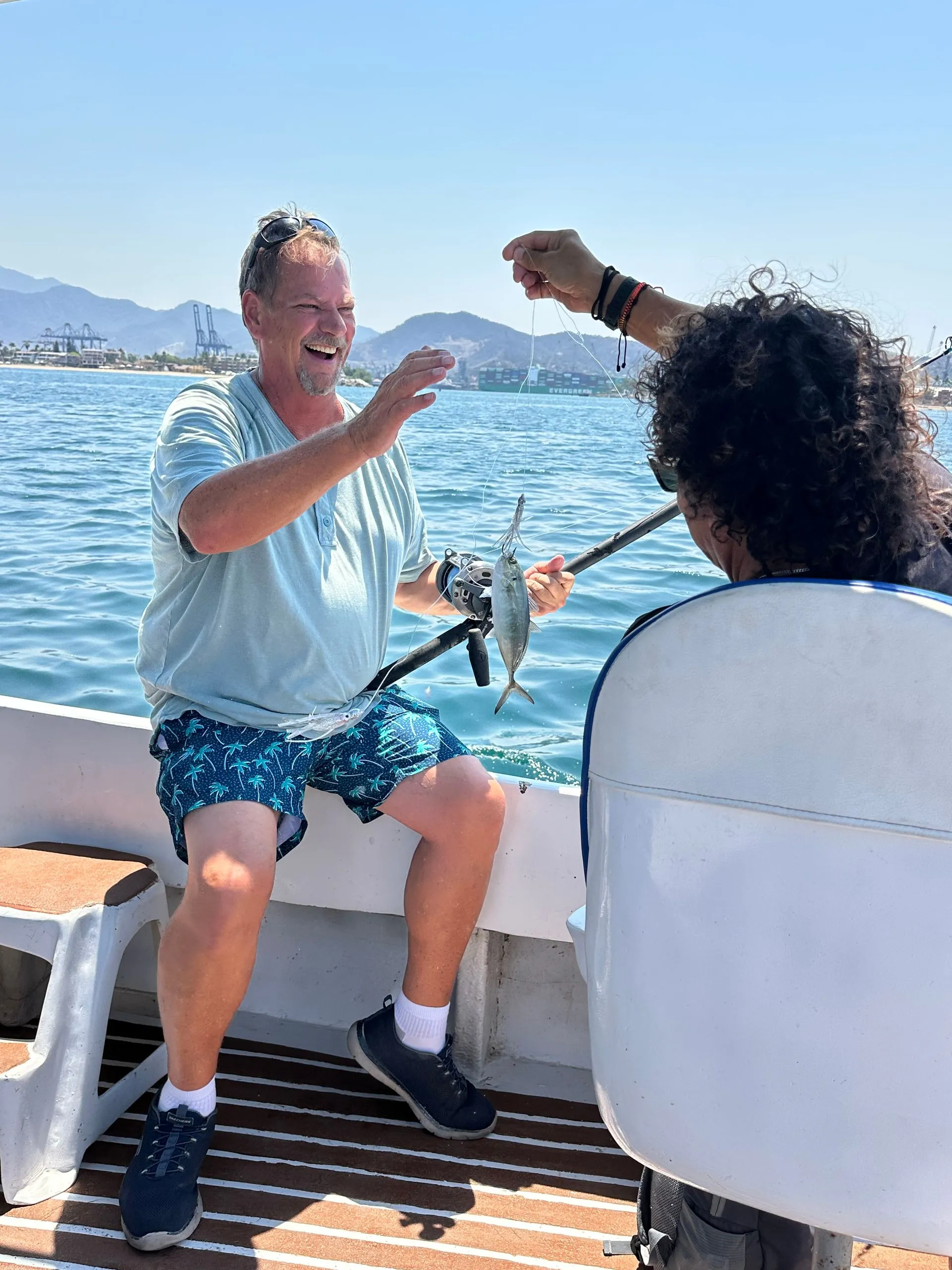 We were the first ones off our Ship when it docked in Manzanillo, on 5/12/25 because I had booked our group a private charter fishing and snorkel trip. Our agent was waiting for us in Port and he quickly transported us over to the Captain and Firstmate Fernando waiting for us. We were under power quickly and the fishing lines were all cast. Within minutes we were all pulling in fish. We were not even using bait, just flys and the catches were continuous, the first hour as we traveled out to our snorkel spot!