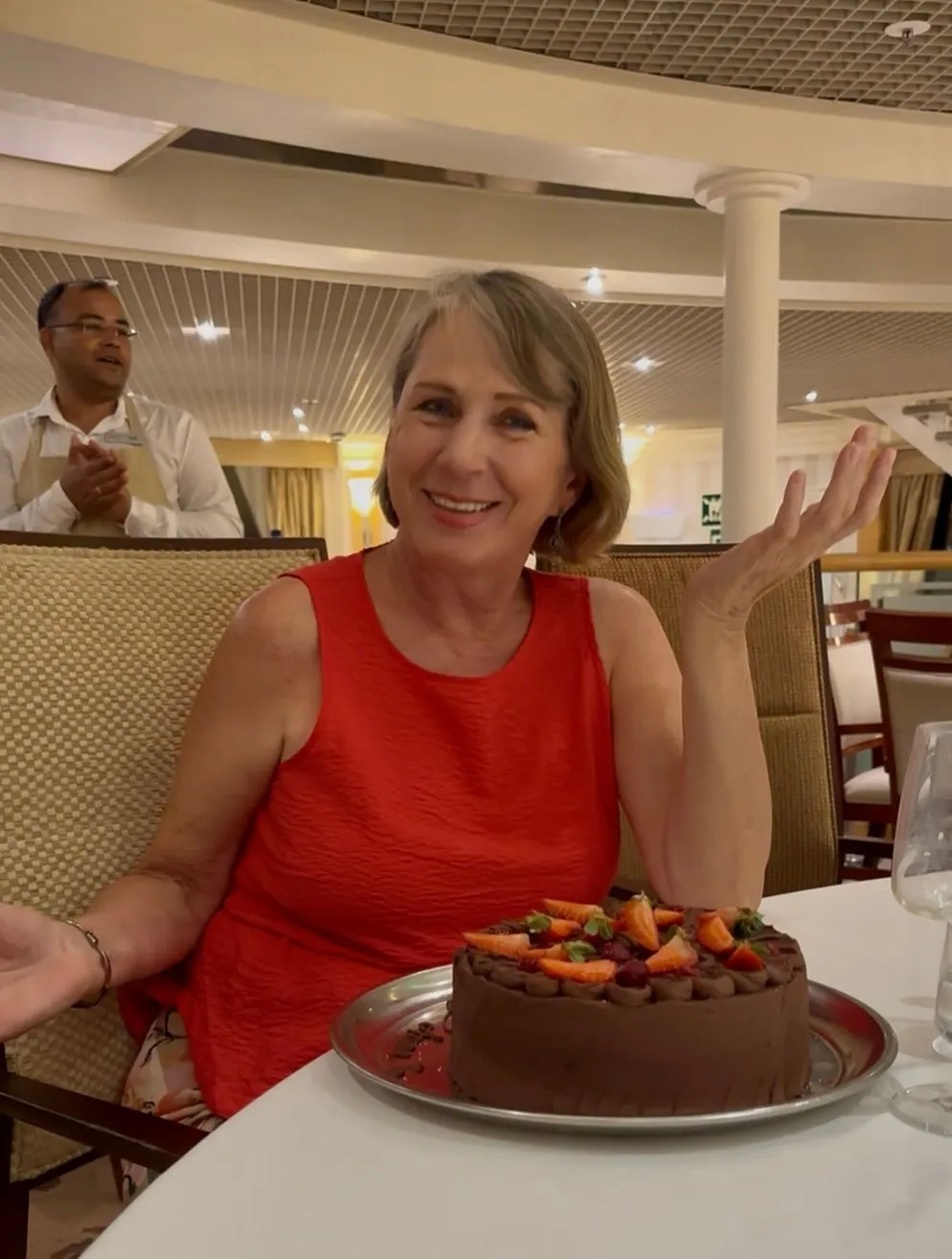 I had another quiet day while wet were in the port of Mazatlan, Mexico but we had a FUN evening celebrating Anna's Birthday!.We had a nice group dinner in Thistle - Jimbo, Anna, Bob & Sarah, Sherrie, Bosco and Me. Afterwards we played games - a super competitive game of DOG. Sarah & Jim came from behind and won! Anna & I had been front runners! WE WERE SOOOO CLOSE!!