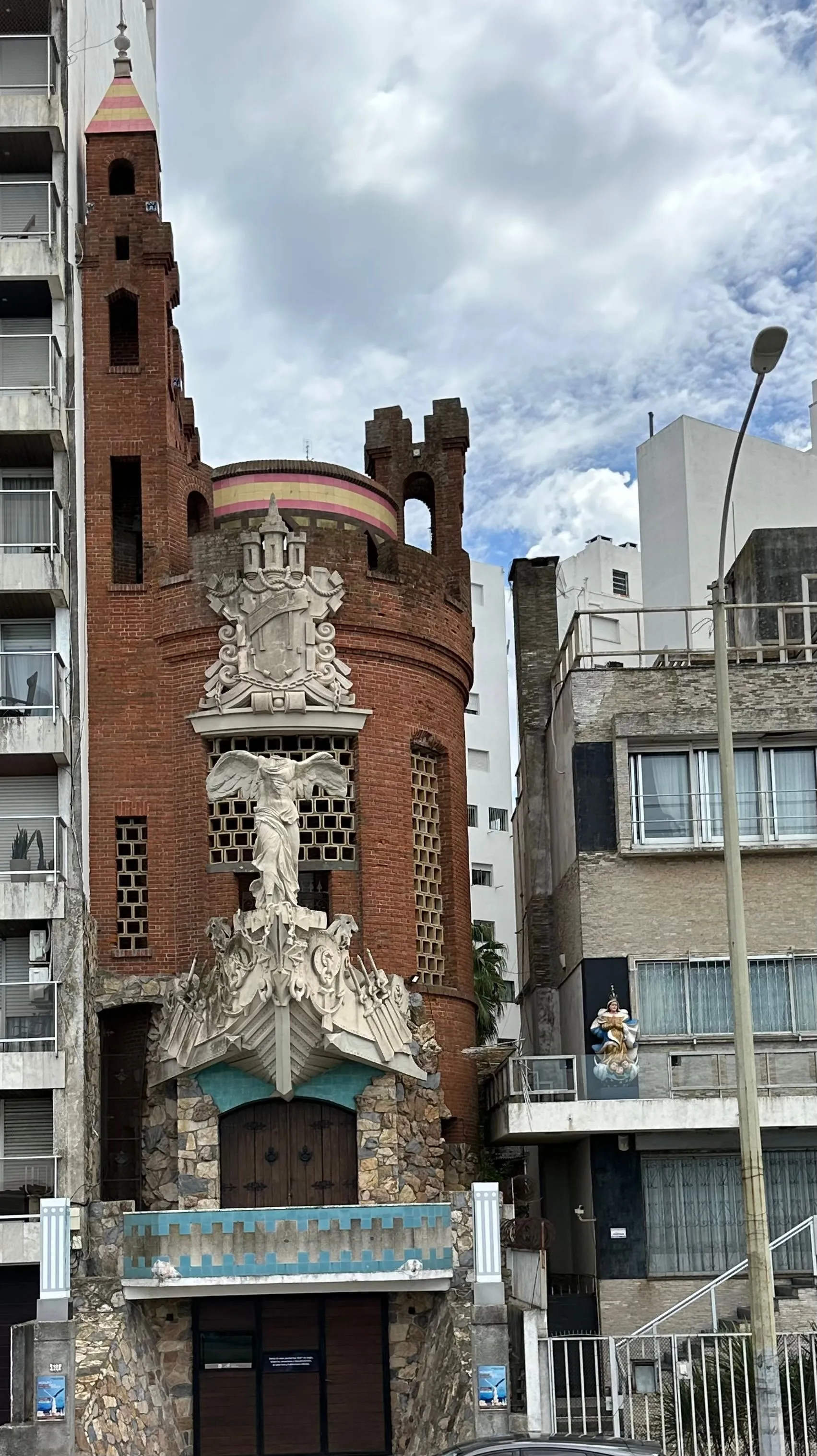 Pittamiglio Castle has a fascinating story. This building, now an Architectural College, supposedly hid the Holy Grail ( chalice Jesus used at last supper) from the Nazi's during the War - from 1944 to 1948. Pope Pius the 12th , supposedly had it removed from the Vatican for safety and had his childhood friend, take it here, for safe keeping. The building used to stand alone on the beach, but has since been penned in by the neighboring buildings. Pope John Paul was sent to Montevideo to bring the chalice back to Vatican in Rome.