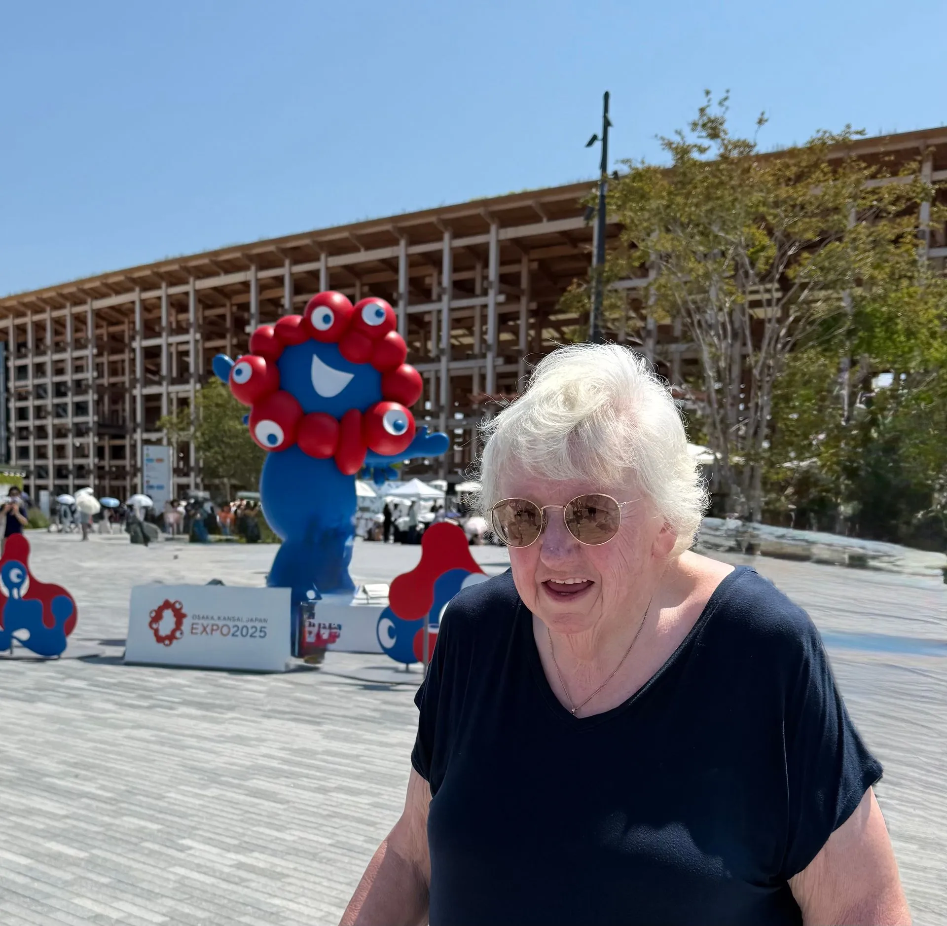 Resident Fran from Australia, a 77 year old former novice nun, school teacher, mom, librarian, assistant director of VVR Players group and All-Around Major Ship Personality, kindly offered me her extra priority ticket as a companion to her Handicap, easy accessibility access, to the World Expo 2025 in Osaka, Japan on August 19, 2025. This meant we could go to the front of the lines, for the none reserved Pavilions, in front of the long cues! This was key to us accessing about 6 of the Pavilions shown below.