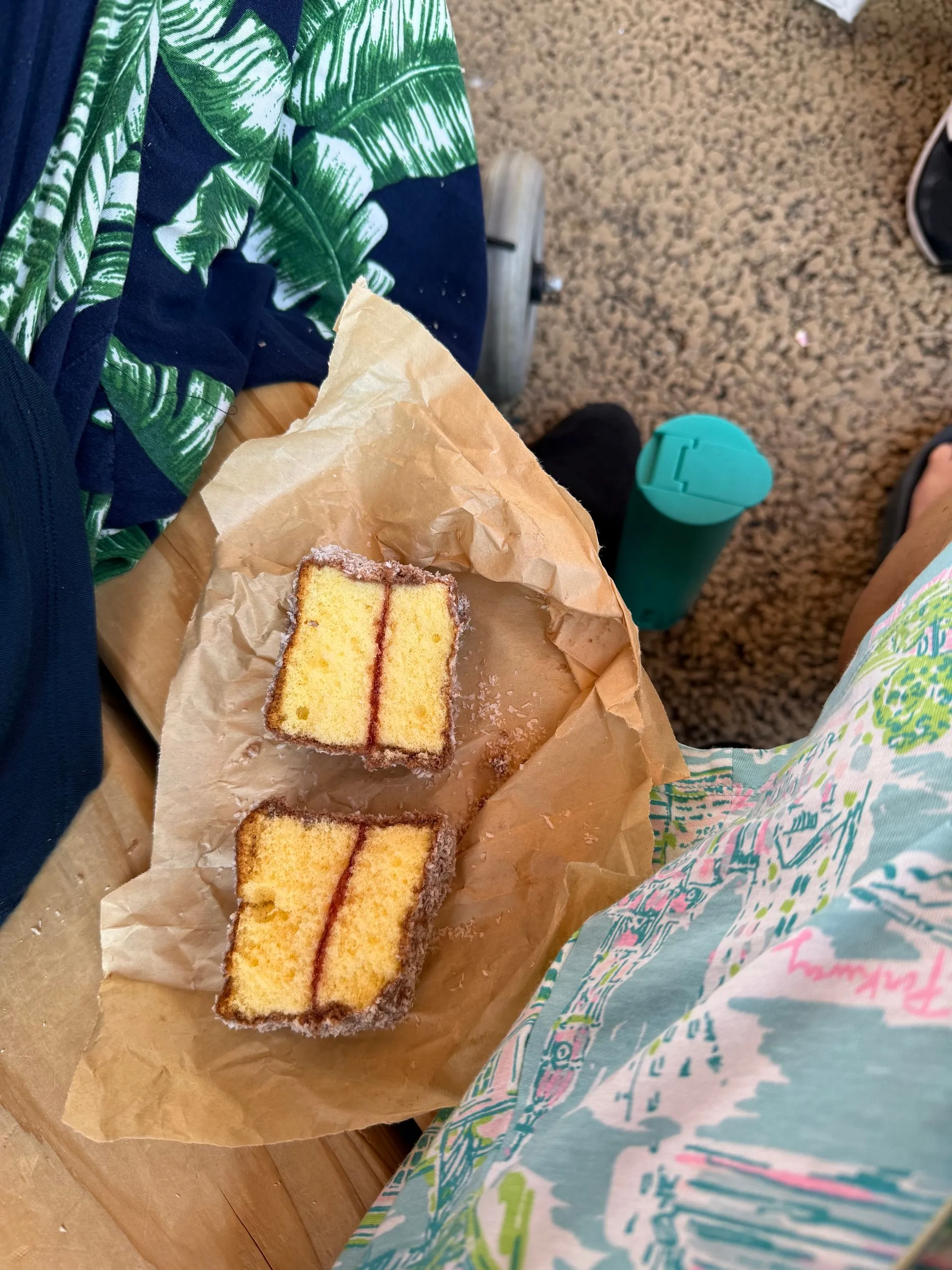 Next was a Japanese cultural exhibit, again just to get out of the heat . And we had to go to Australia, Fran's home, where she was delighted to find properly made Lamington's,at food stall on way out of pavilion, (it's a sponge cake w strawberry jams filling, rolled in chocolate & coconut). It was very tasty.