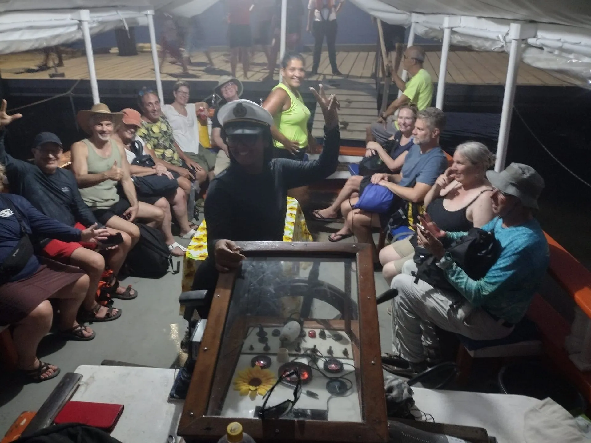 Sadly our tender issues surfaced again when we went to rejoin our Ship at 5:30. The tender was having engine problems and we had to hire a party boat to get us back to the ship. Always an adventure! There was 37 of us, happy to finally make it back on board our Ship and we were extremely grateful for the female crew, who took kindness on us and got us back safe and happy!
