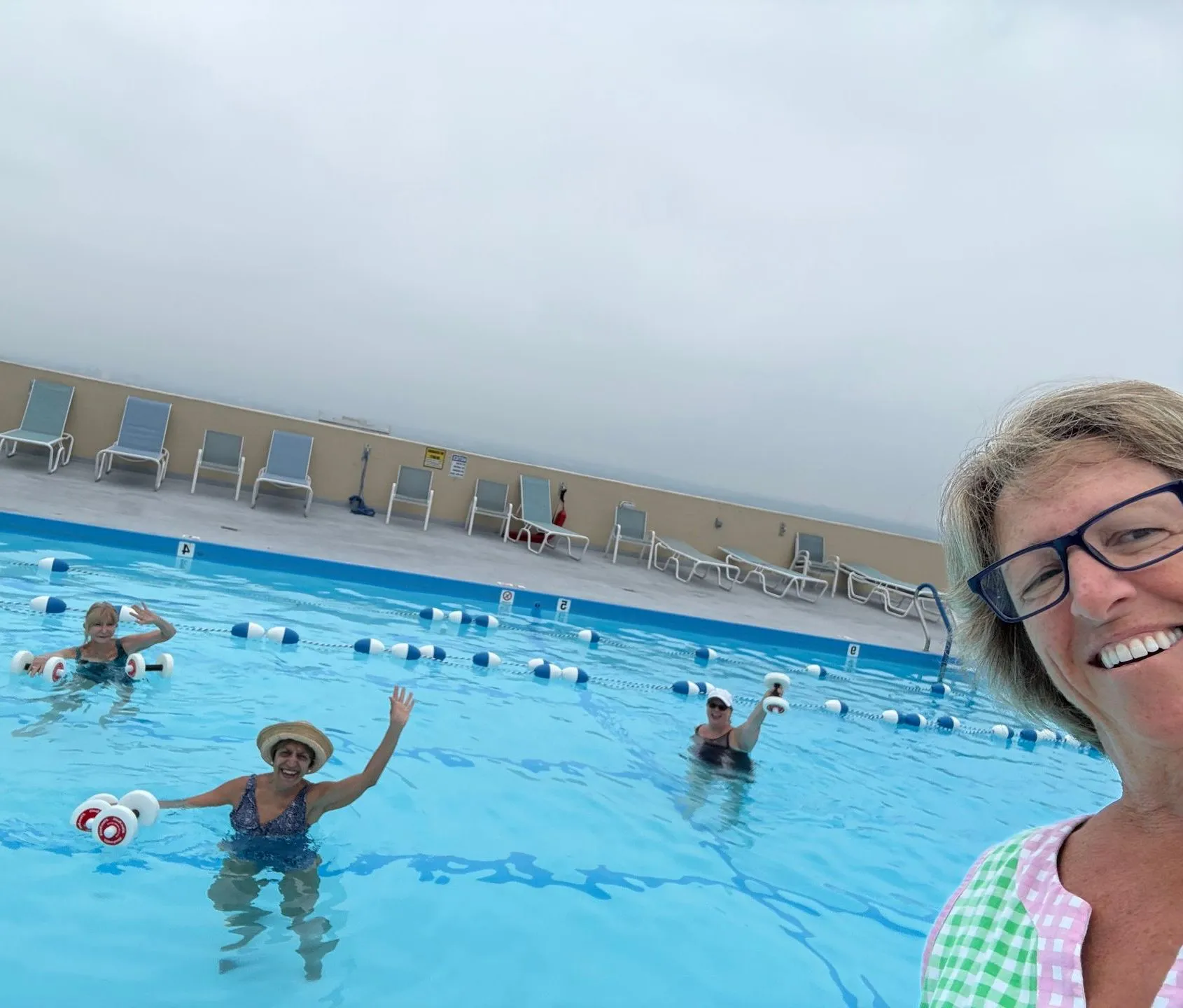 The added perk of coming home was getting to catch up with family and a few of my friends - a girls' got to take a dinner break and keep exercising at pool aerobics!