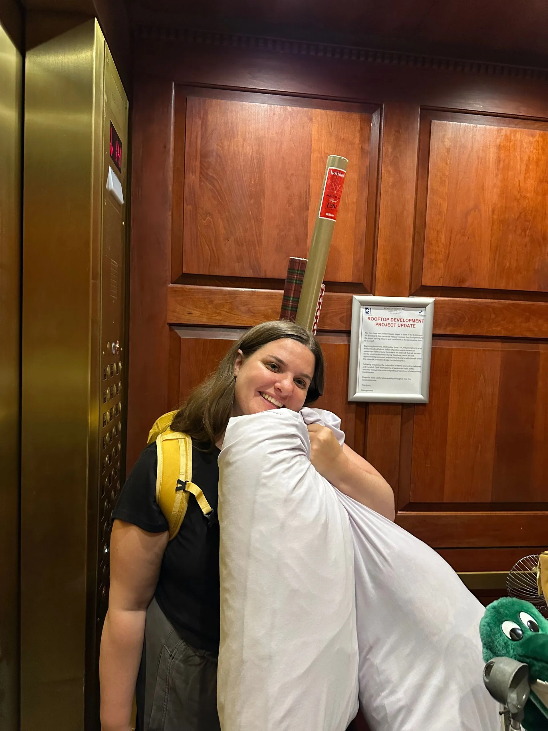 Normally I would call Philadelphia Home but after 9 months of living on the Ship, I am beginning to call the Ship HOME! To that point, the main reasons I flew across the country this week was to come home and get my Condo in Philly ready to sell! I needed to clear out my remaining personal effects, so that I could possibly turn the place over to a realtor to liquidate and /or sell my remaining furniture and household items, along with the condo itself. I met with a few realtors and spent a good amount of time cleaning out all my closets, cabinets and drawers. I tried to get as much as possible into the willing arms of family members and friends. I was happy for them to take any items they could put to good use! My nieces Colleen and Laura were my 2 best recipients pictured below in the elevator as we hauled out numerous loads to their uber ( for Colleen) and car ( for Laura). I even got my bestie Laureen to take a bag home with her!