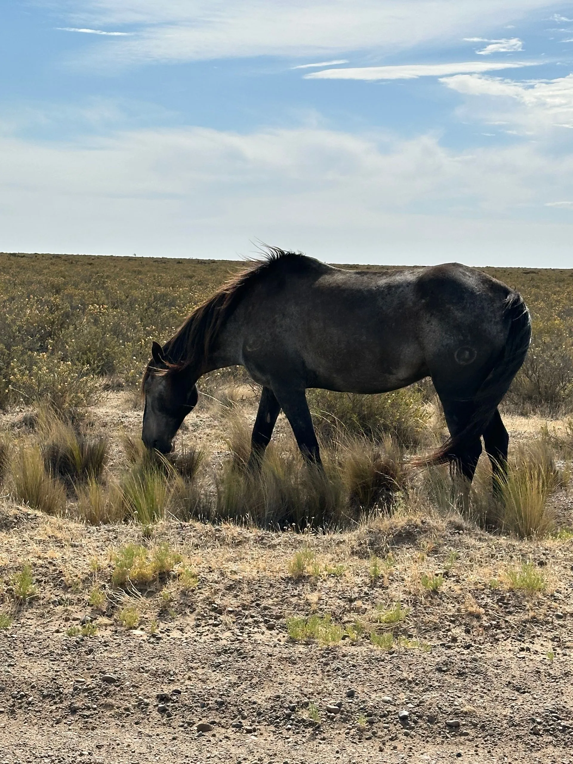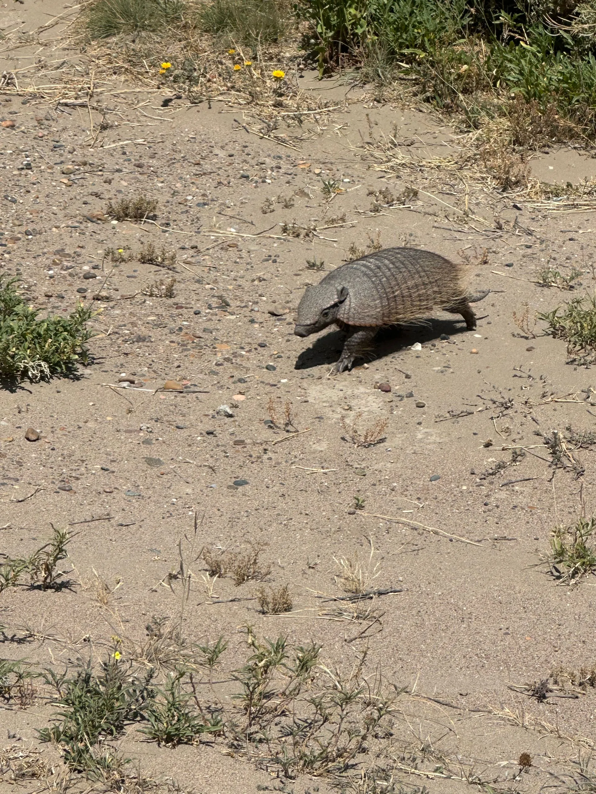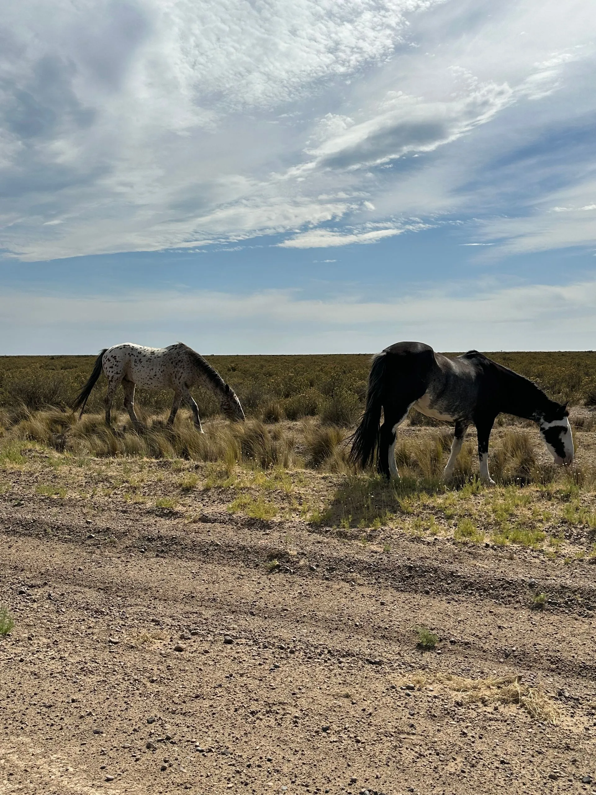 On 2/9/25, SUPERBOWL SUNDAY , I spent the day exploring the Peninsula Valdes, a naturally protected area about an hour north of Puerto Madryn, with the Tremblay brothers, Paul & Ron - 2 of my favorite neighbors. They had rented a car for the day and invited me to join them exploring the area. We left early in the hope of catching lots of wildlife. We first saw pink flamingoes, then wild sheep and seals, penguins, a hairy armadillo, a cormorant crossing the road and finally wild ponies.