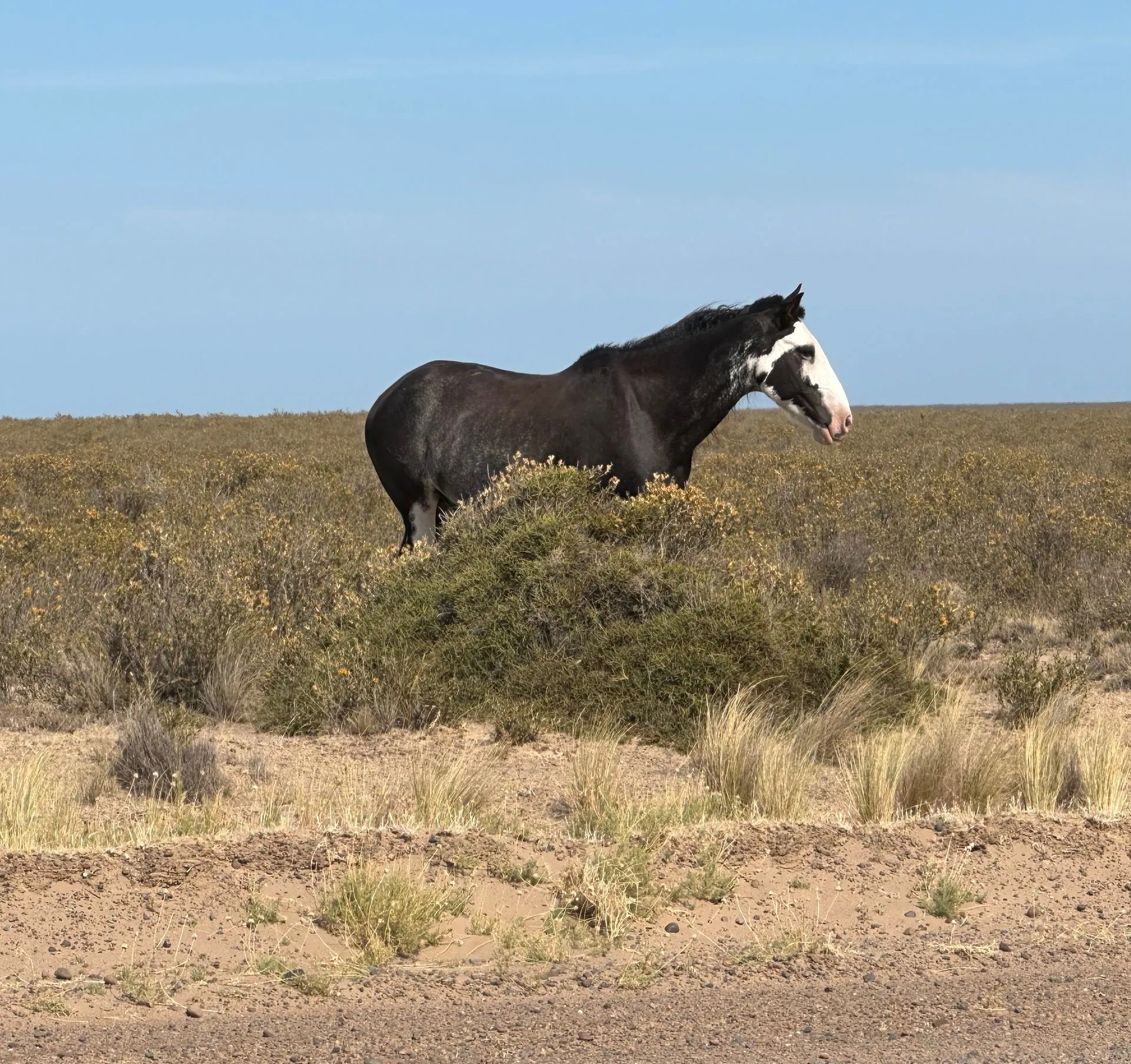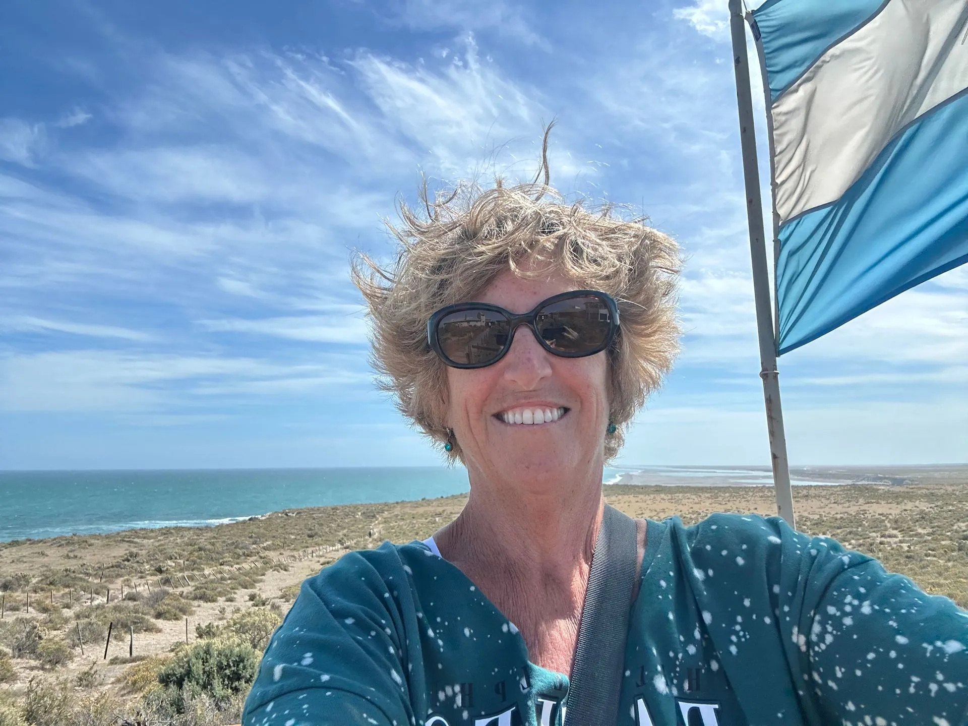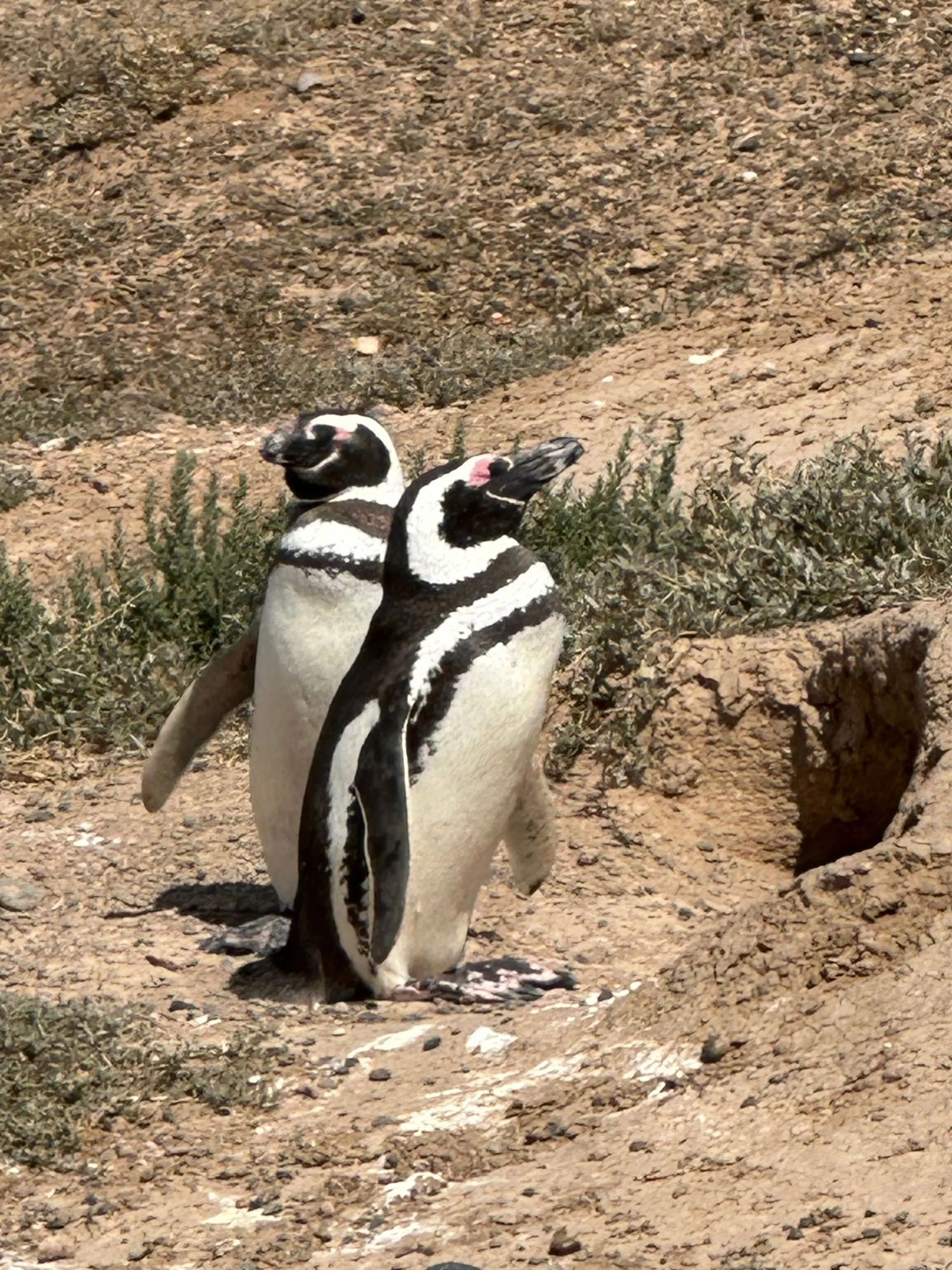 On 2/9/25, SUPERBOWL SUNDAY , I spent the day exploring the Peninsula Valdes, a naturally protected area about an hour north of Puerto Madryn, with the Tremblay brothers, Paul & Ron - 2 of my favorite neighbors. They had rented a car for the day and invited me to join them exploring the area. We left early in the hope of catching lots of wildlife. We first saw pink flamingoes, then wild sheep and seals, penguins, a hairy armadillo, a cormorant crossing the road and finally wild ponies.