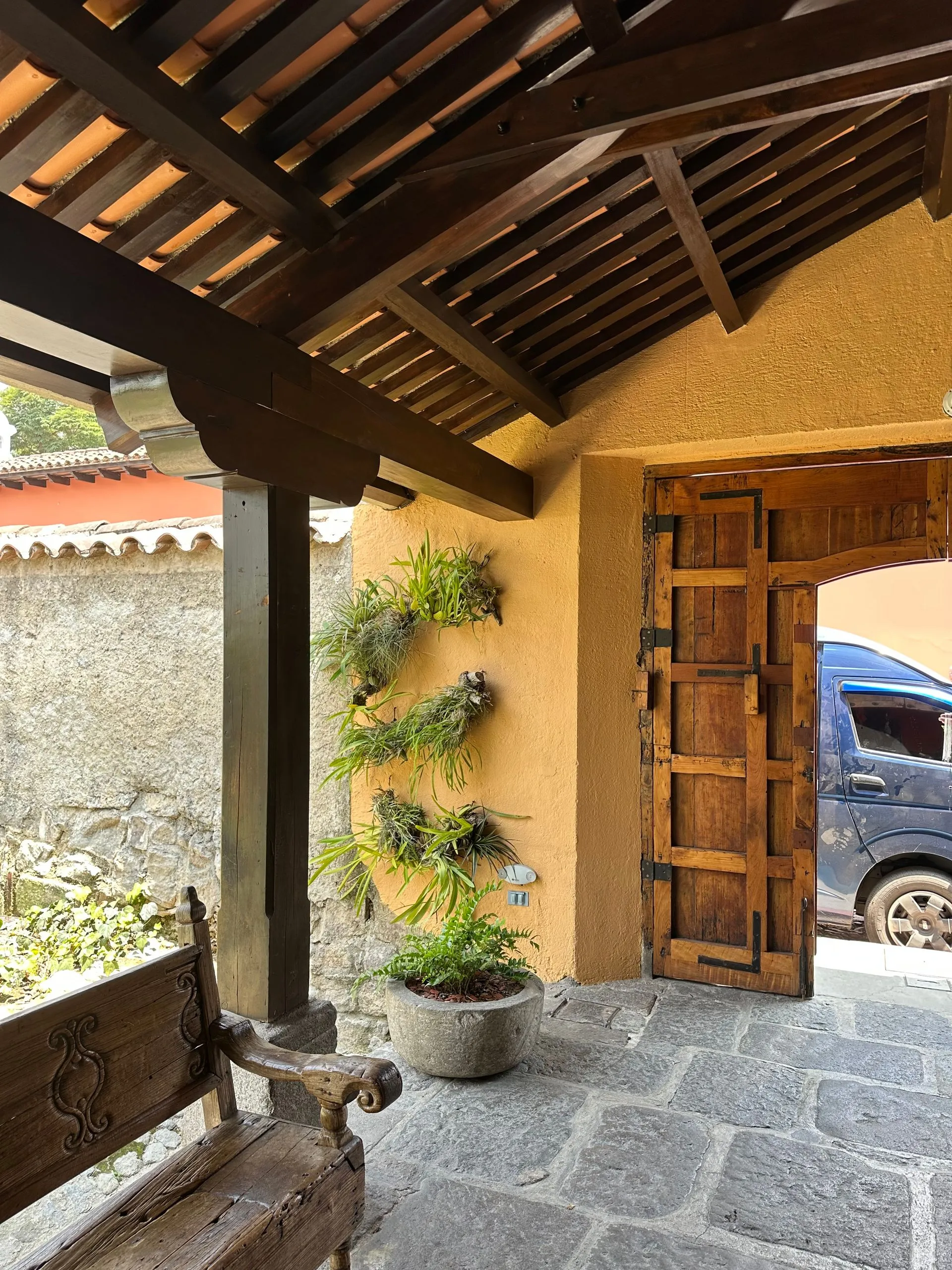 The old city of Antigua is now a UNESCO World Heritage site. It is stunning small city! Surrounded by volcanoes at 5000 feet above sea level, it had a cool breeze and is renowned for its Spanish colonial architecture and baroque churches. Our first stop was the gorgeous Hotel Casa Santo Domingo.
