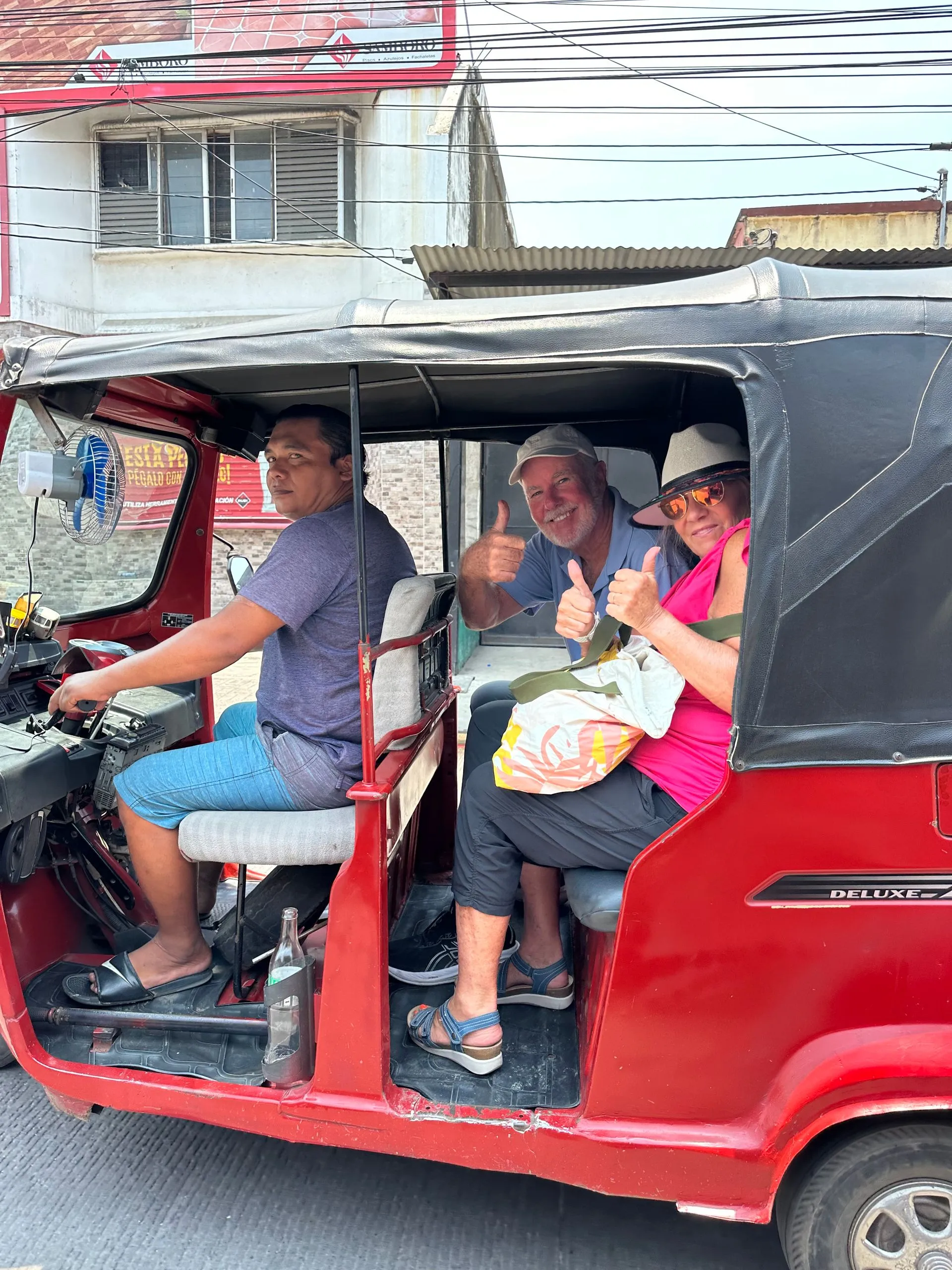 After Mass I had planned to go to the beach, but it was so warm I opted to go back to the Ship with Fran, Phil & Kim. Phil flagged down 2 tuk tuks to take us back to the port. It was a nice way to cool off and also take in the Sunday market shoppers.