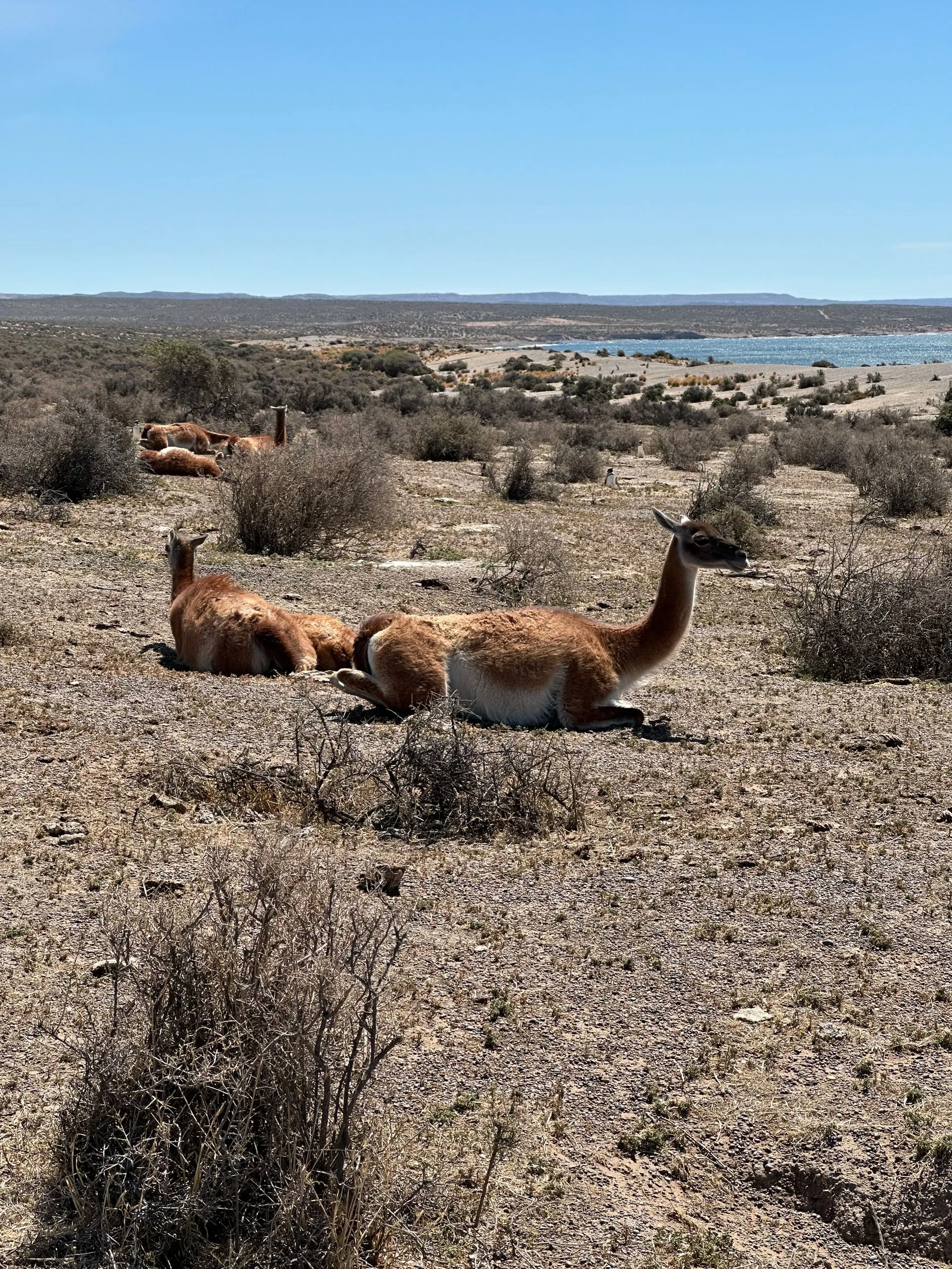 We were in the port of Punta Madryn, Argentina from February 7th thru the 9th. On the 8th, we rented a car to drive down to TOMBO NATIONAL RESERVE about 2 hours south of the port, and the first time I have driven a manual car or any car, since this journey began for me September 30th, 2024. The drive was fine, but the roads boring as it was mainly through arid desert areas and the roads through the park are not paved, just loose stones, so noisy, dusty and loud. Once we got to the long narrow peninsula it is Penguins galore! There is a vast colony of Magellanic penguins here along with other wildlife - hares, foxes, snakes, guanaco & gulls. Below is the growth chart for a typical Magellanic. The babies were just born back in November, so we saw many that were just
