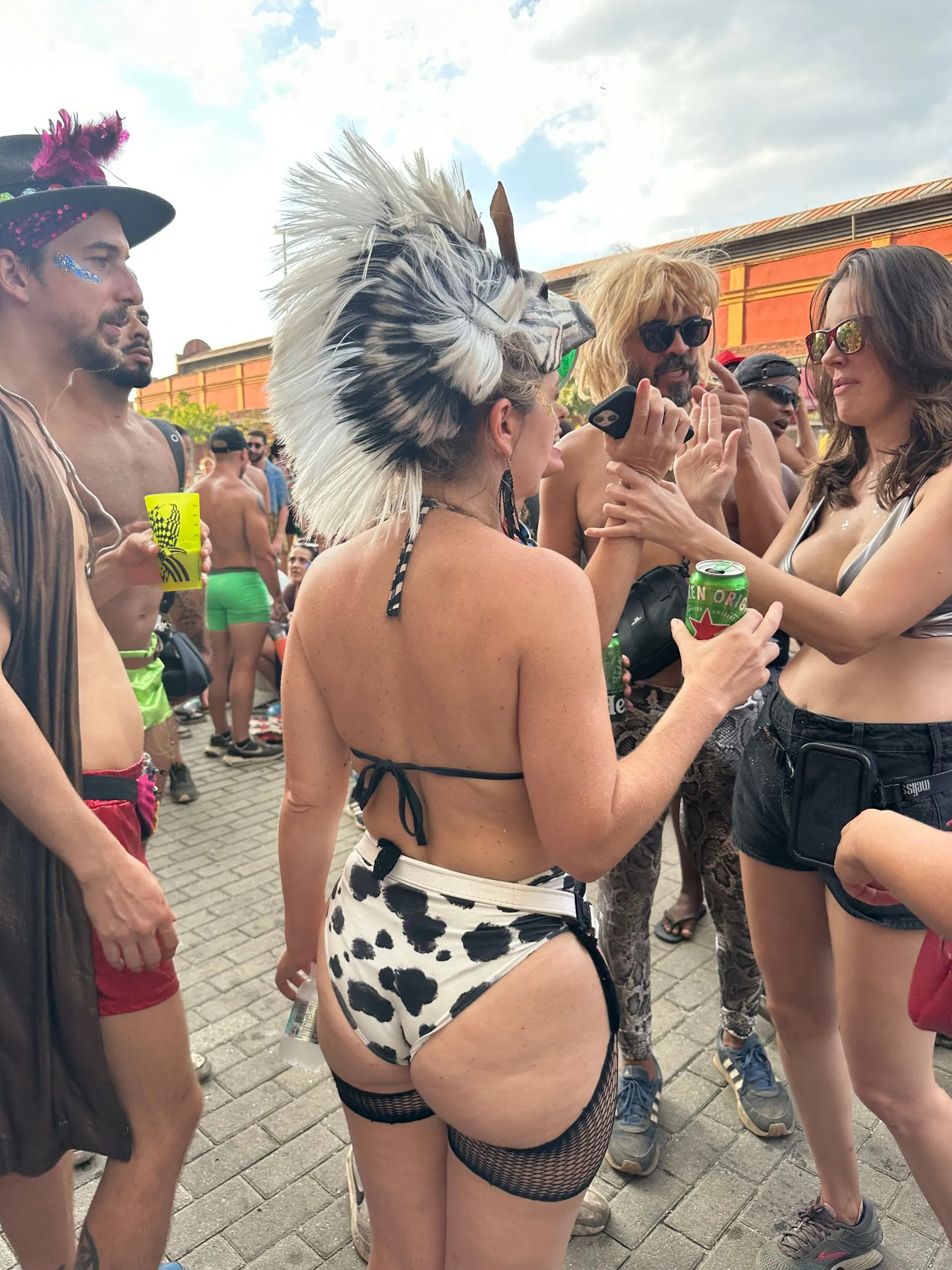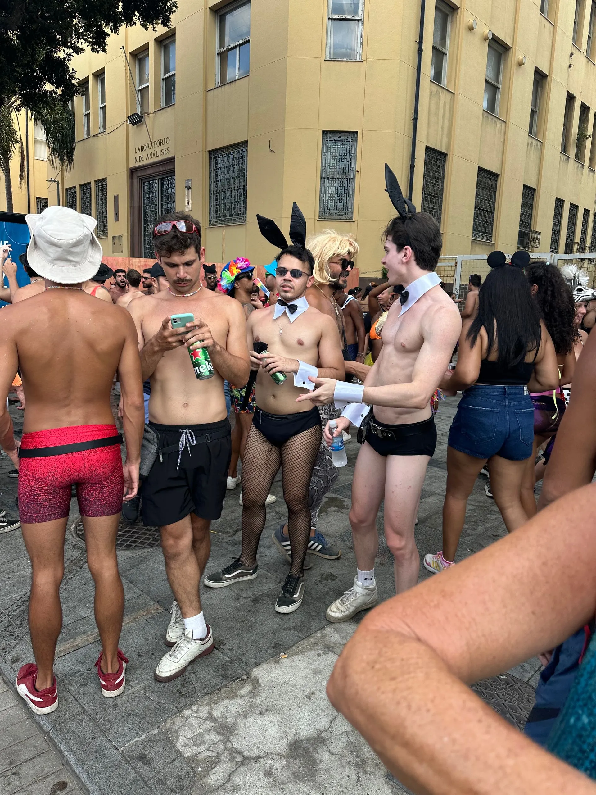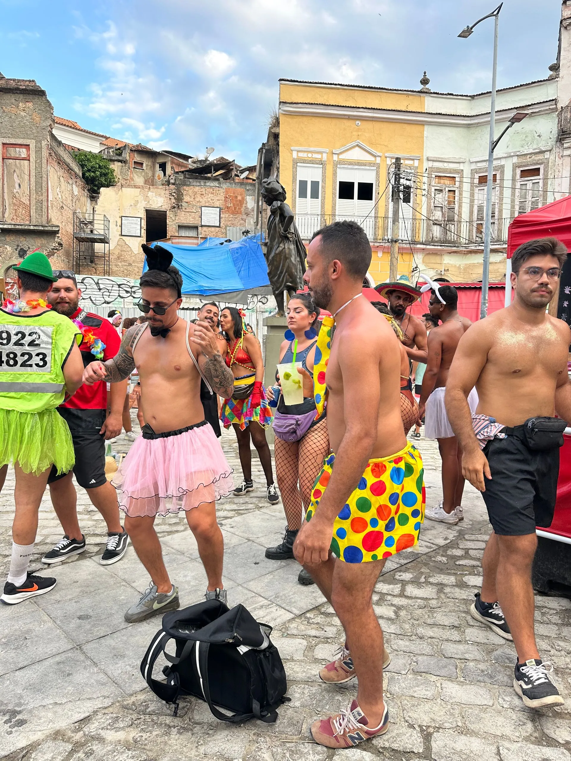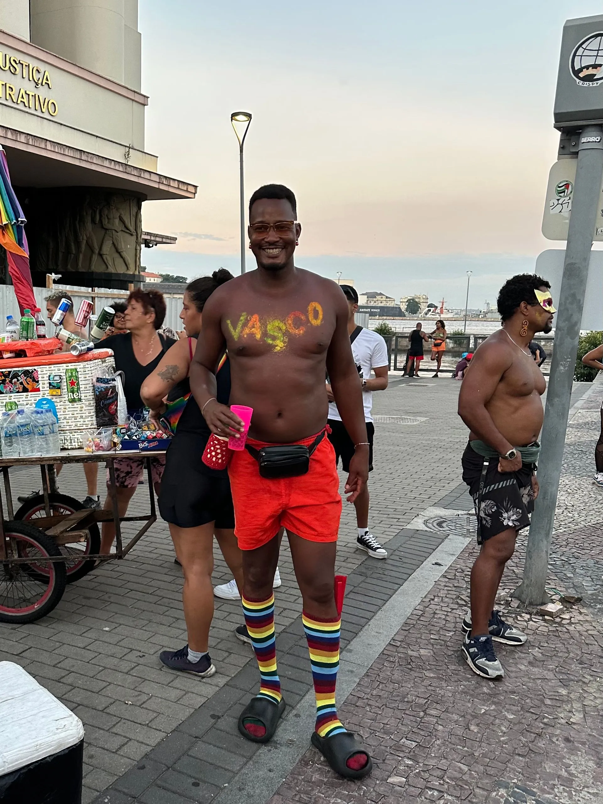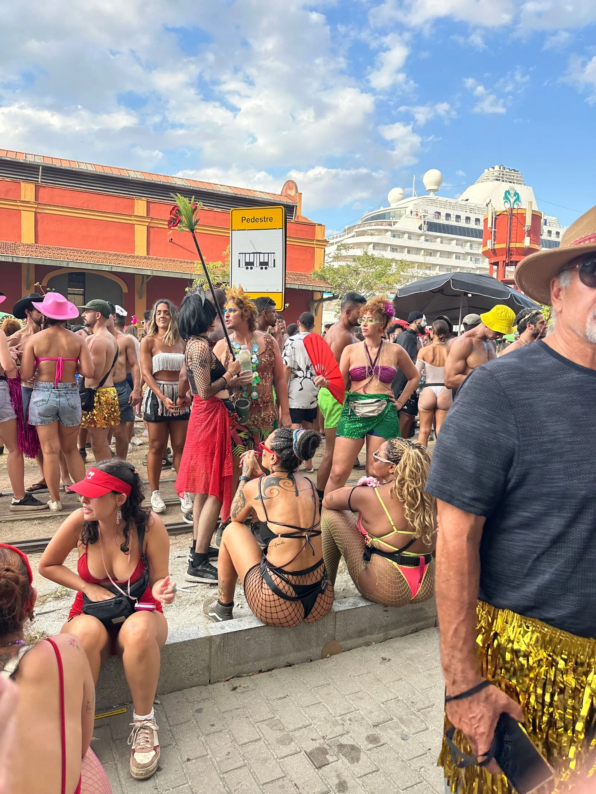 WOW !! We were super excited to gain the extra days in Rio, especially to be in port on FAT TUESDAY!! As soon as we cleared customs, around 2pm, we were off the ship ready to join in all the festivities and explore this huge city. We ran right into our first street party right outside the port gates! The roving street parties are mostly young people partying in sexy costumes, but the performers and their families are also mixed into the crowds, so that all ages are represented.