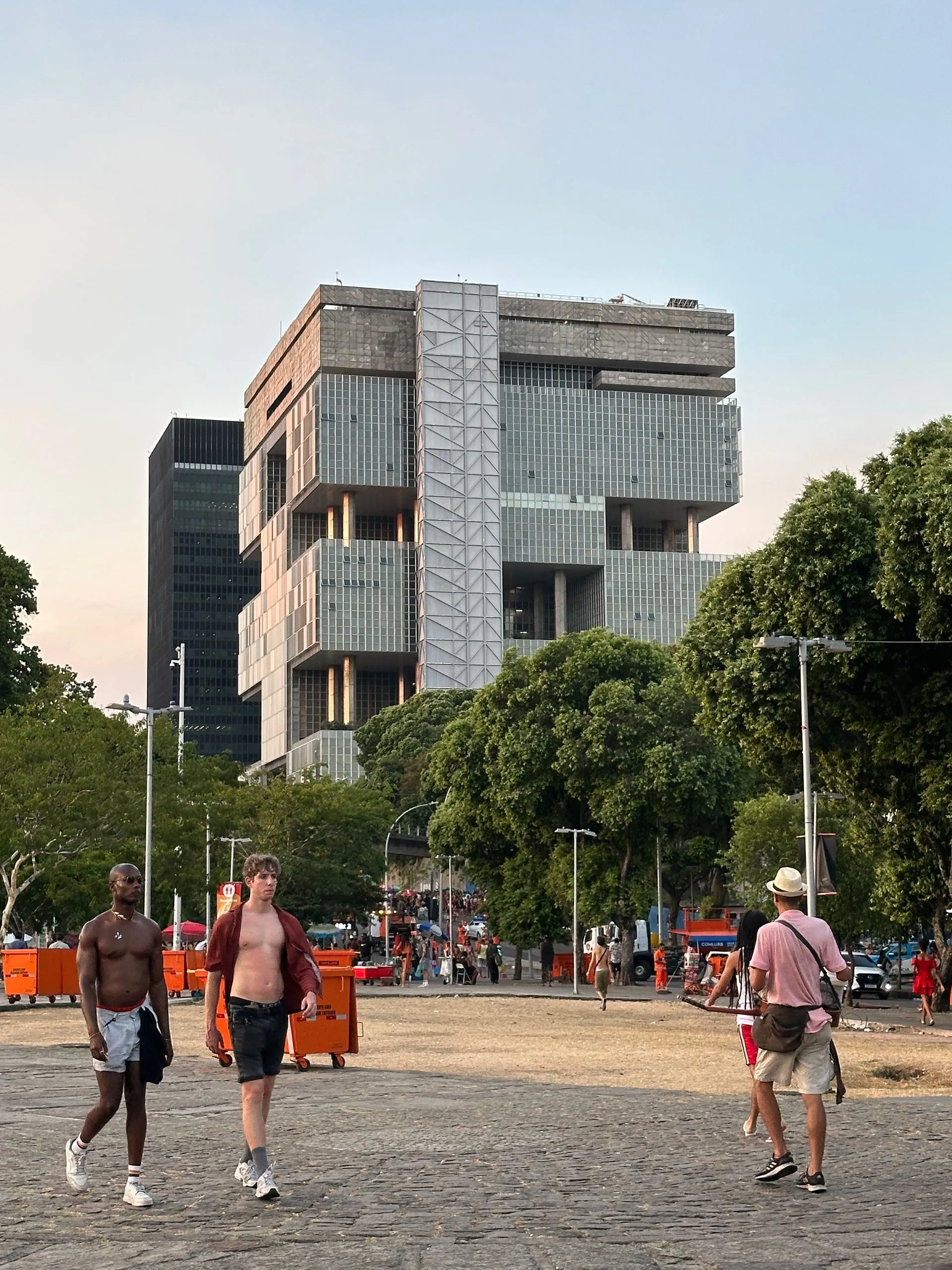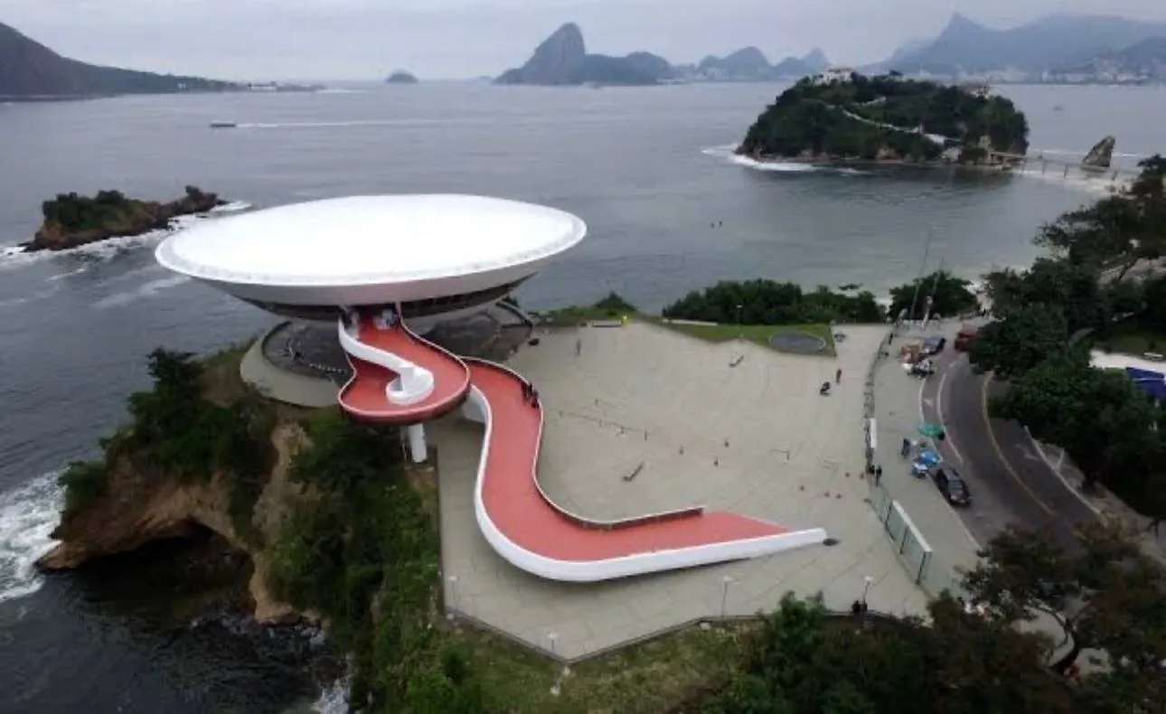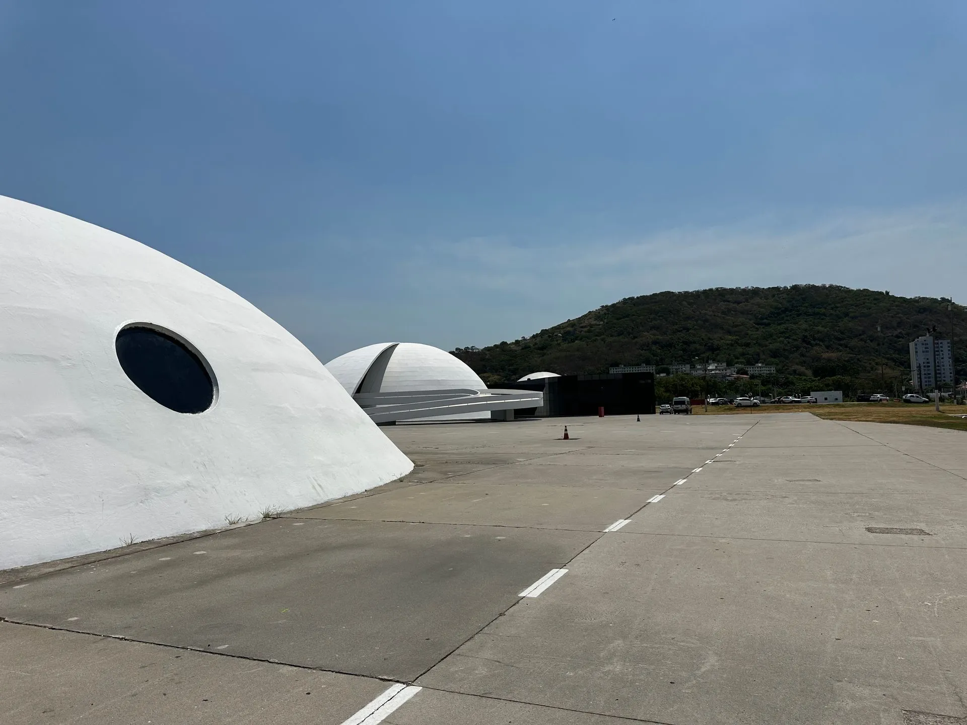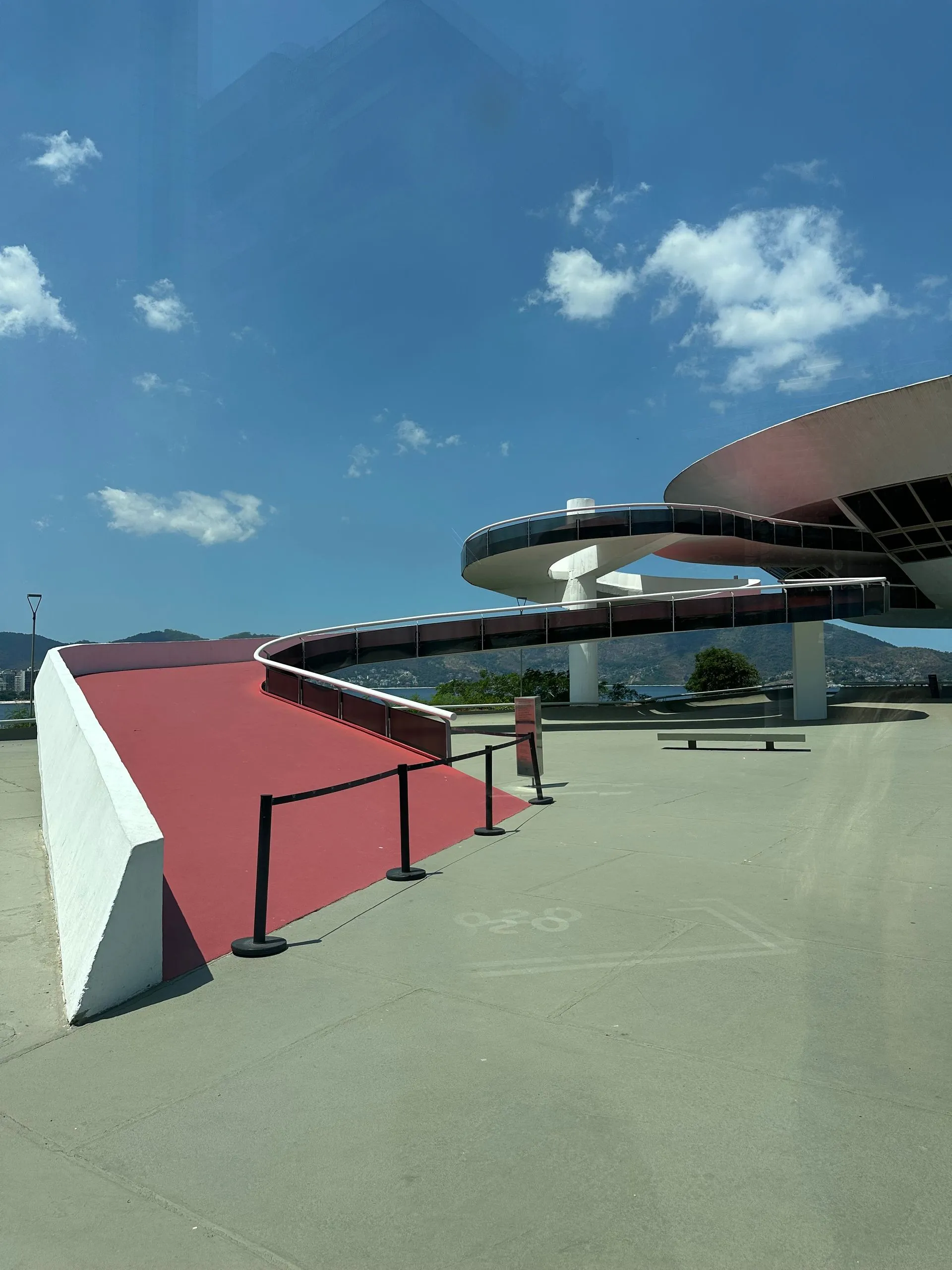 Next just a few minutes away we went to Camino Niemeyer - a strange deserted looking place with odd buildings hard to figure out there use. Architect Oscar Ribeiro de Almeida Niemeyer's work is everywhere in Brazil. He lived from 1907 to 2012 and worked until his death at 104! He is considered one of key figures in the development of modern architecture. He is best known for design of civic buildings for Brasilia, a planned city that became Brazil's capital in 1960 ( and is shaped like a giant airplane) and he was also one of the architects that collaborated on the United Nations headquarters in NYC. He loved exploring with the possibilities of reinforced concrete, as shown below with Camino Niemeyer.