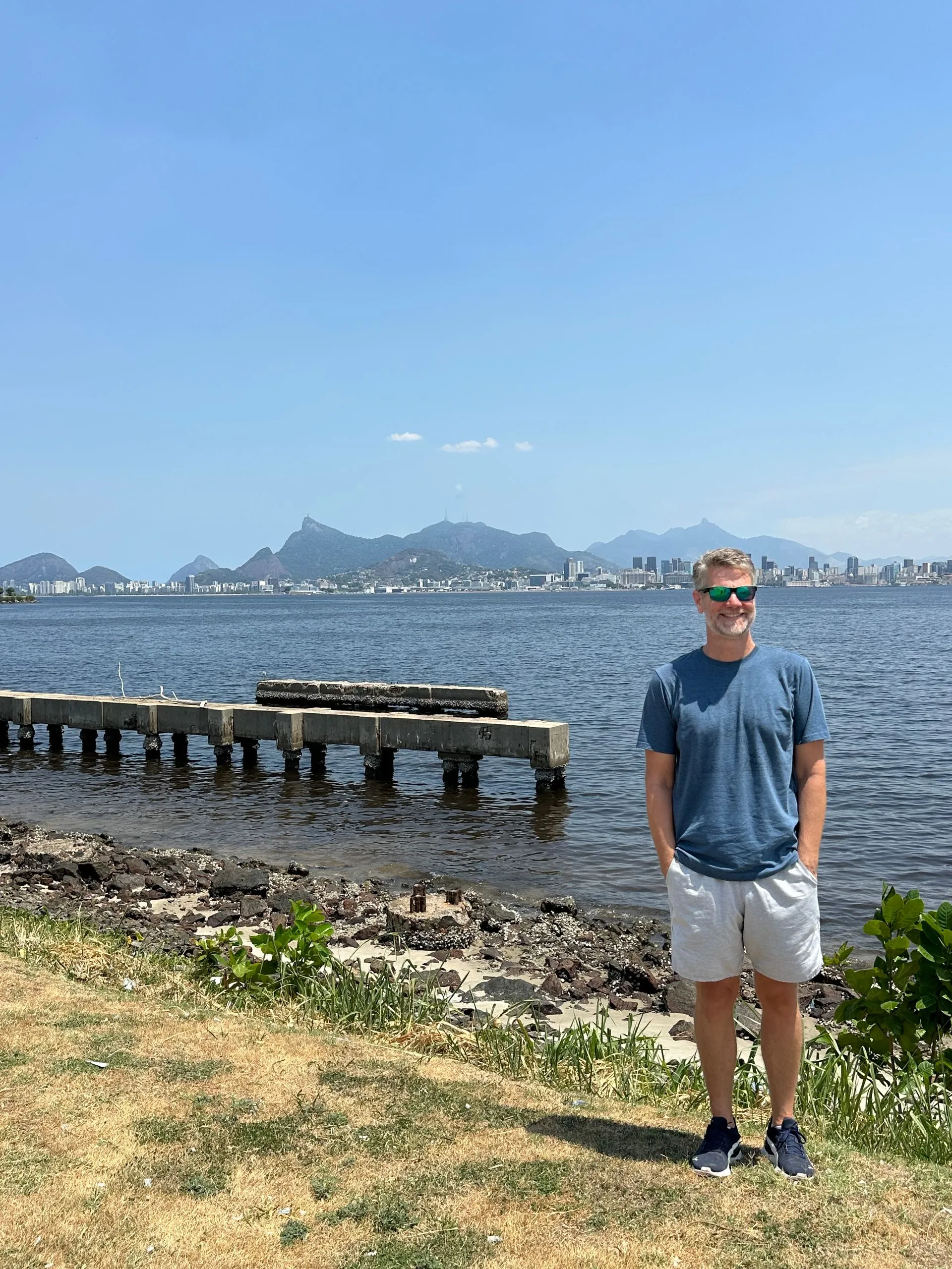 Today we started exploring the area across the bridge from downtown Rio, called Niteroi. It's a lovely suburb area with fabulous beaches and views of downtown RIo. We hired an uber driver to take us around. First stop the Museu de Arte Contemporanea or MAC, which was closed, Luckily I was only interested in the outside of the building - not the art inside. The building sits up on a hill perched over the harbor like a spaceship. The winding entry is best seen from above, hence I borrowed the above image from the web. The build was designed by Oscar Niemeyer. The rest of the photos are mine and show the surrounding beaches and great views of downtown Rio.