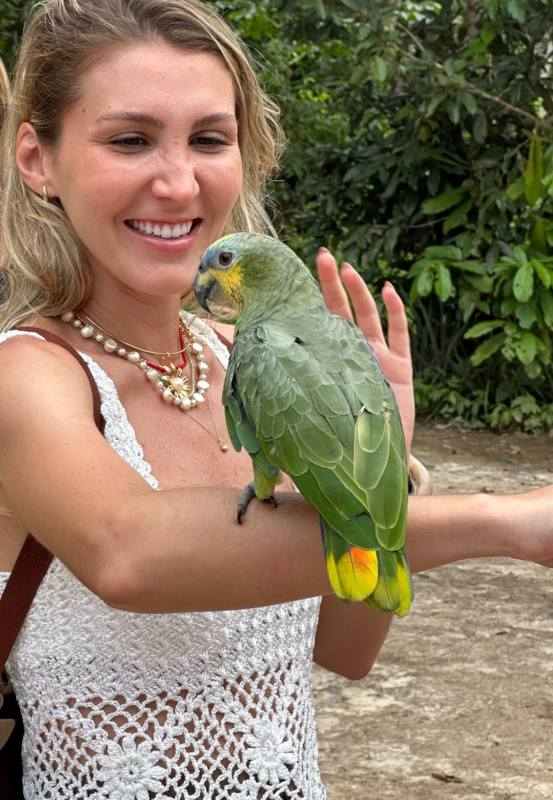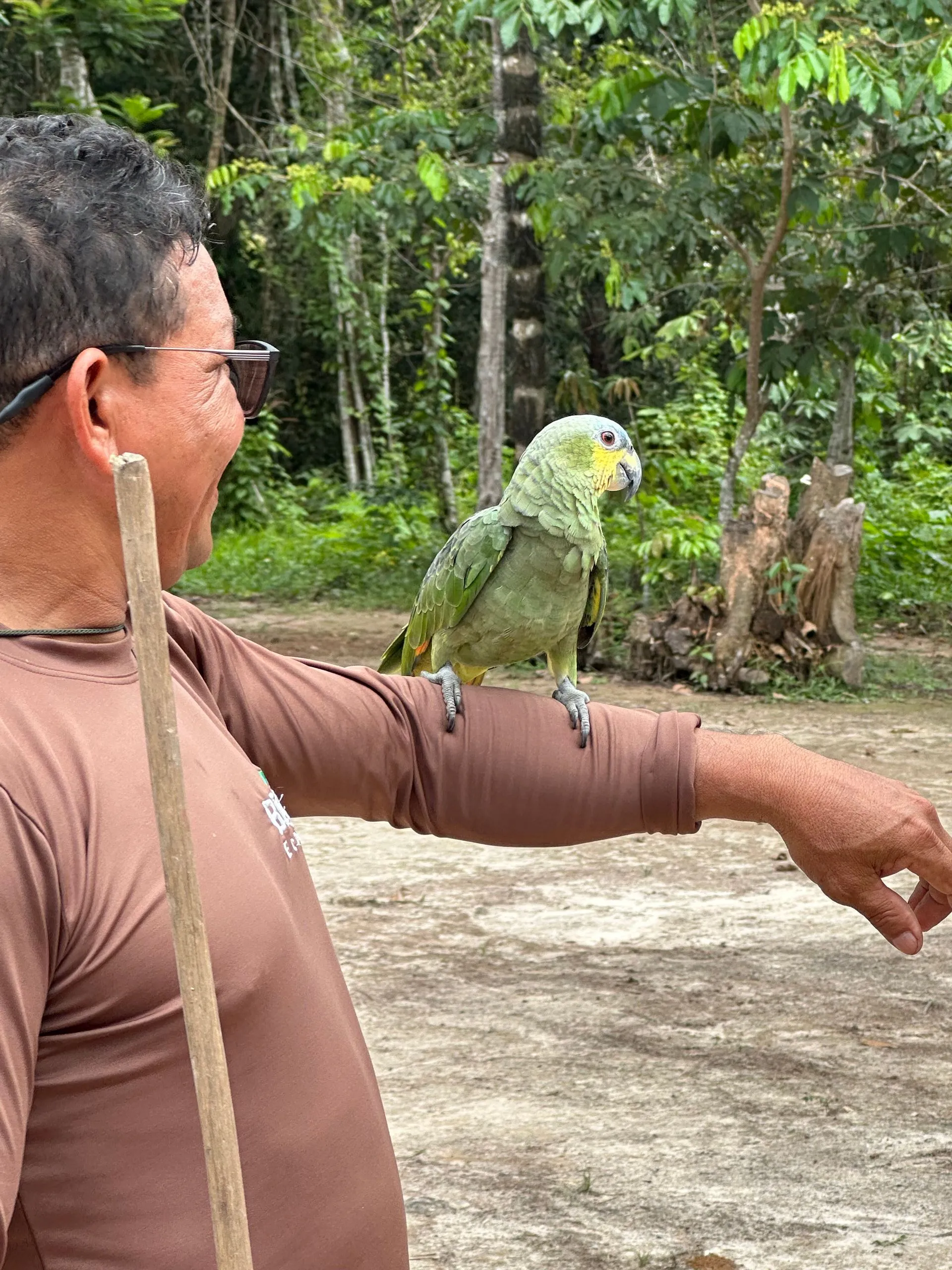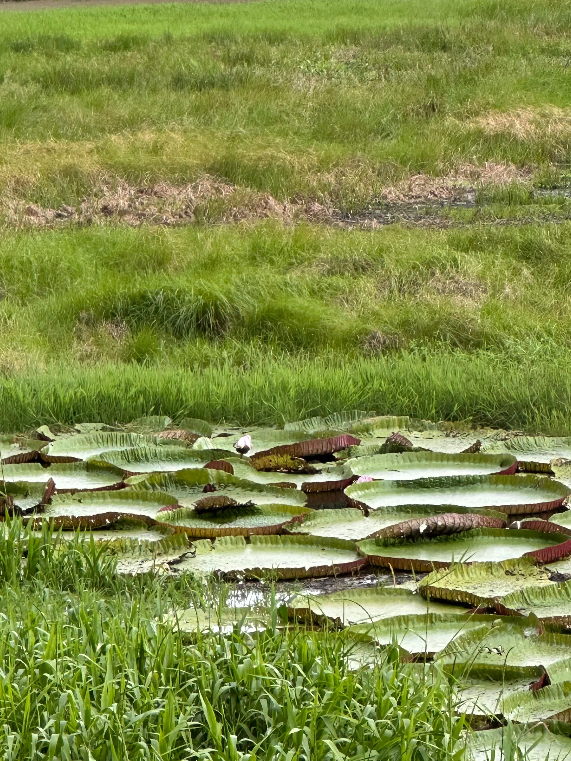 We went on treks into the forest. We had to stay on small narrow paths, in single file and the second day we even had the owner of the property with us, to lead the way and use his machete to clear various obstacles or give us pathways thru water crossings. Learned that lily pads all start with white flower, then the flower traps a bee inside its petals overnight and the next day releases the bee after it has pollinated the flower and the flower has now turned pink.We were there at the start of the rainy season, you can see on the tree bark how much higher the waters are to get before the season is over.
