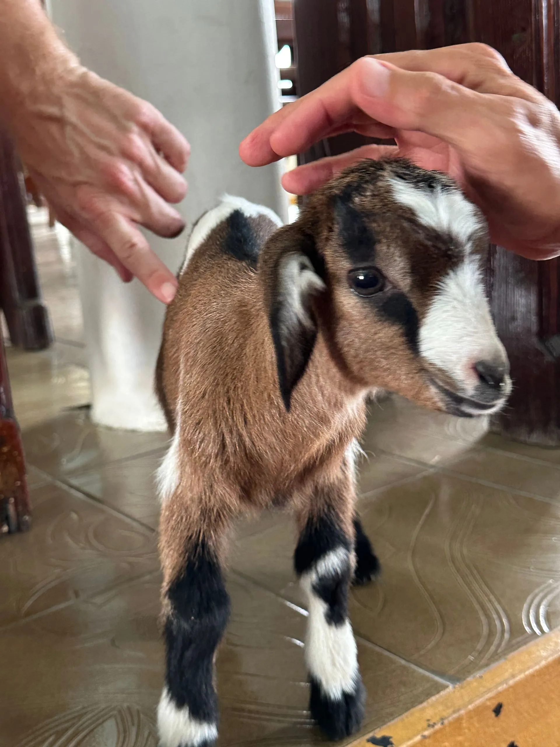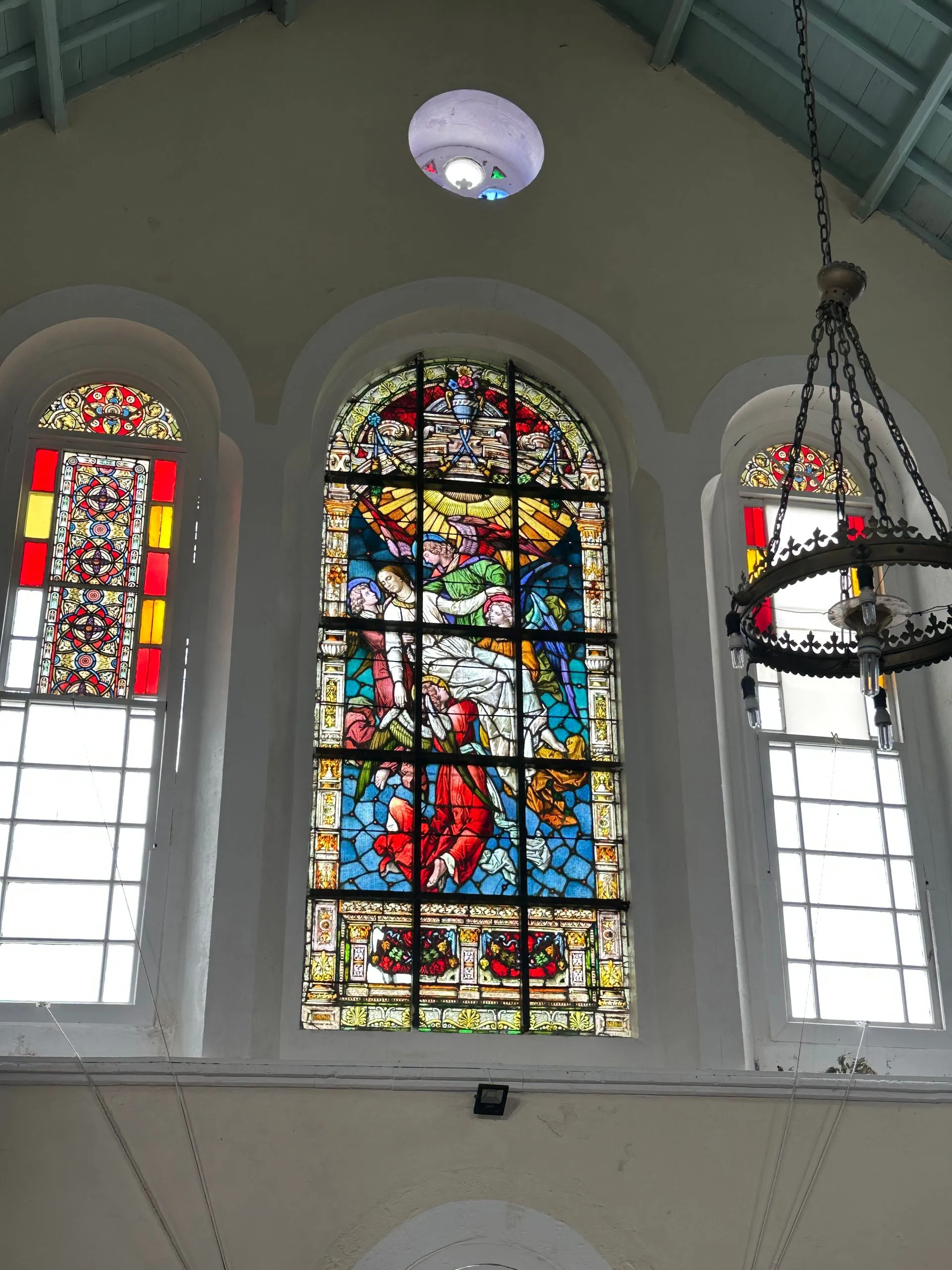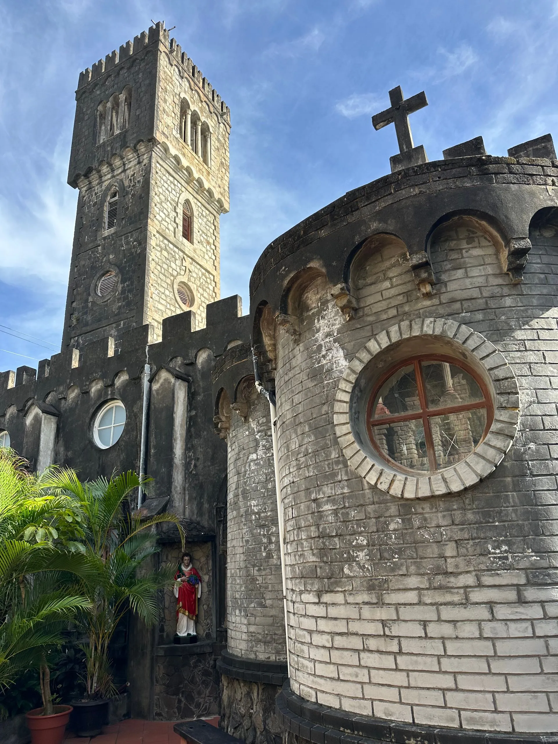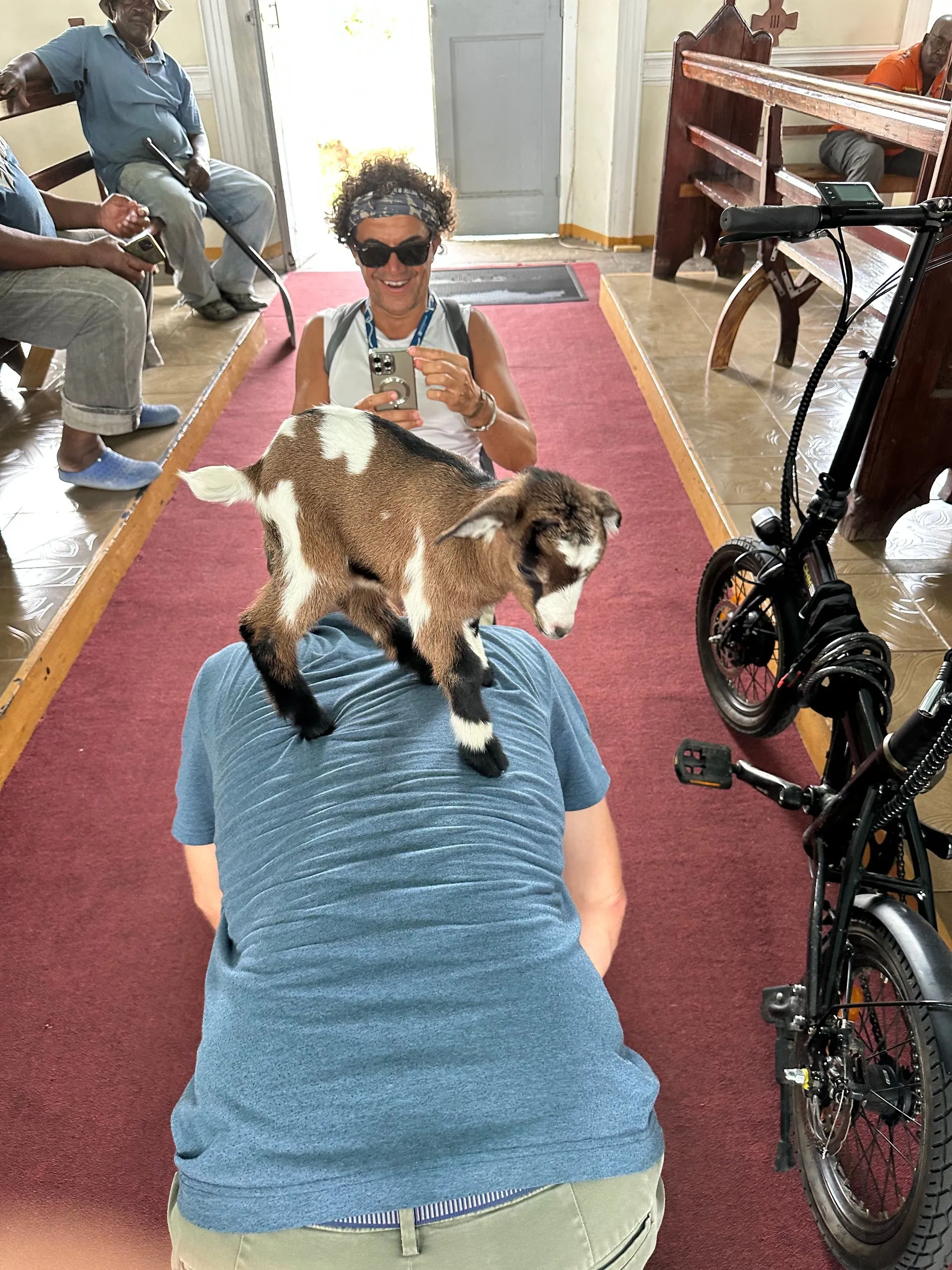 We took a walk around the port town of Kingstown, St.Vincent the second day. Two churches were the points of most interest architecturally. The first church was St George's Cathedral and it was Anglican. The space was bright and open but the highlight was the baby goat ( they call it a Lamb) we encountered there. He was adorable and so cuddly! Scott, Memo and I all took turns holding him!