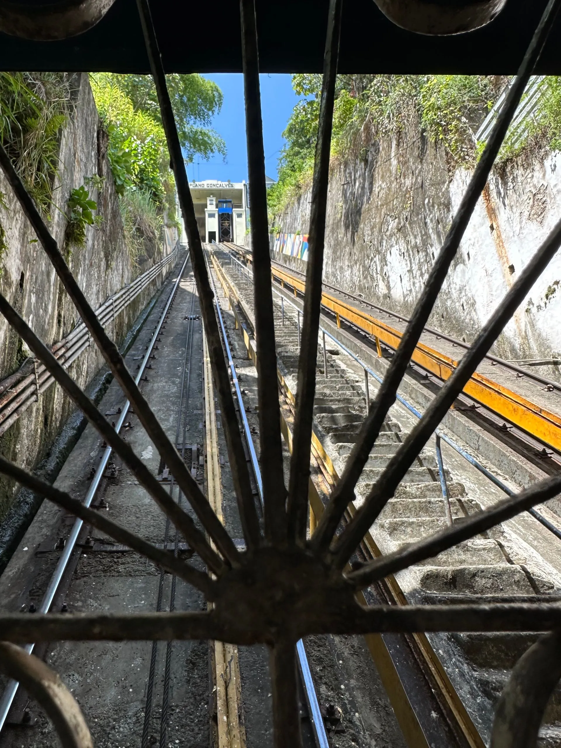 The old town of this Port sits up on a hilltop plateau, that is accessed by either a funicular or one of 4 elevators, pictured below.
