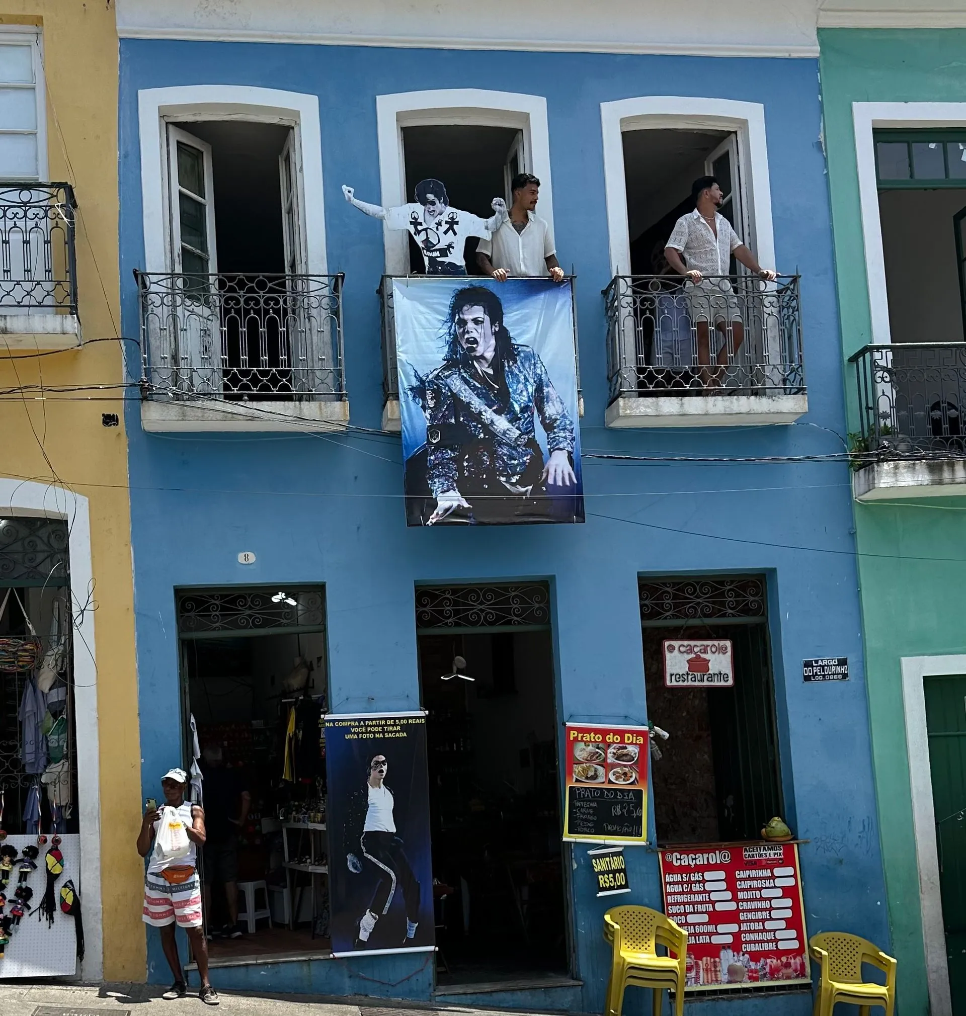 Michael Jackson in one of the balcony windows and also noticed alot of people wearing