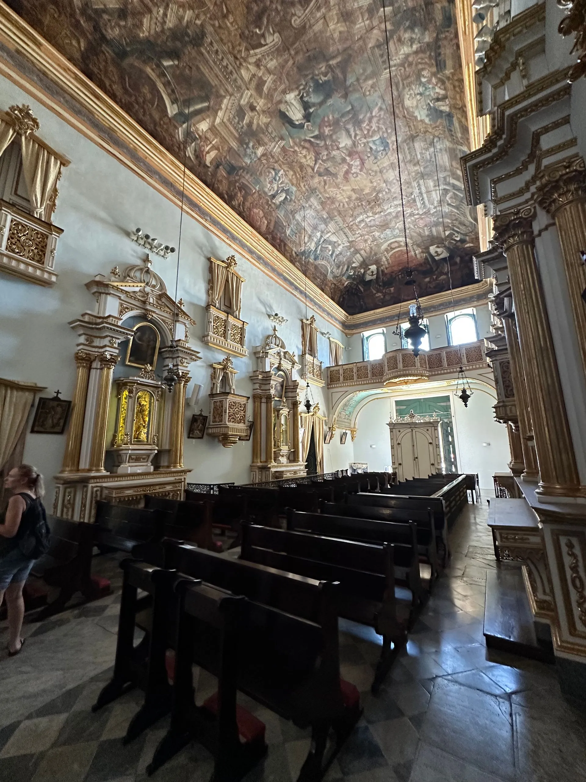 Once atop, there were several squares with a variety of colorful colonial Portuguese buildings, cobblestone streets, and baroque churches. Sao Francisco Church had stunning gold gilt woodwork. Lots of colorful street art and local artisans too!