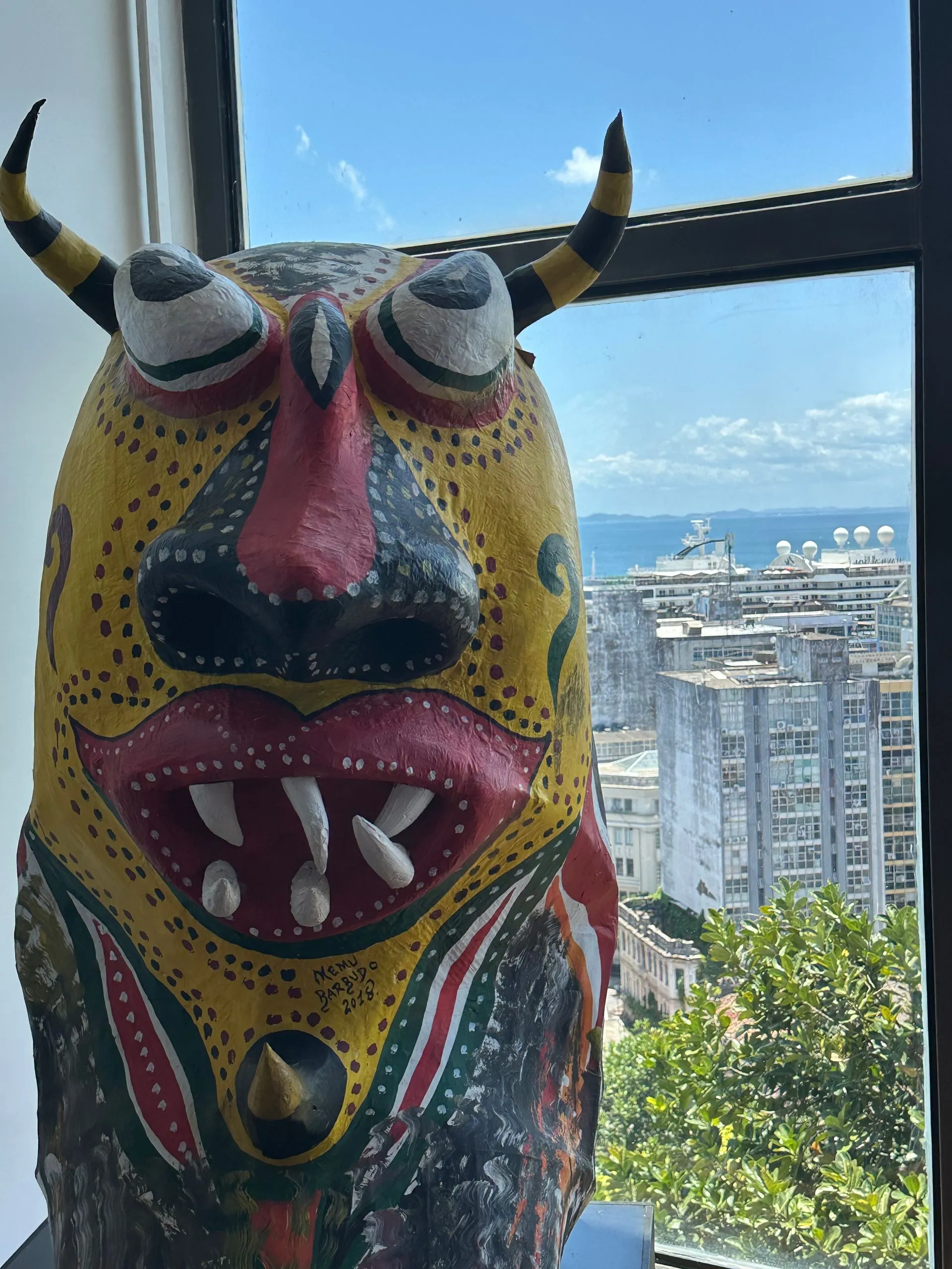 Lots of us Residences out exploring this port town of Salvador. From L to R - Angela & Steve ( midlife cruising bloggers), PattiJo, Darrell, Scott, Paulie ( chef from Long Island) Marty ( friend of Darrell's visiting) Bob & Sarah, Callie ( friend of Scott's visiting, JR ( don't think I know what it stands for ?) and Cherrie. Statues were outside the
