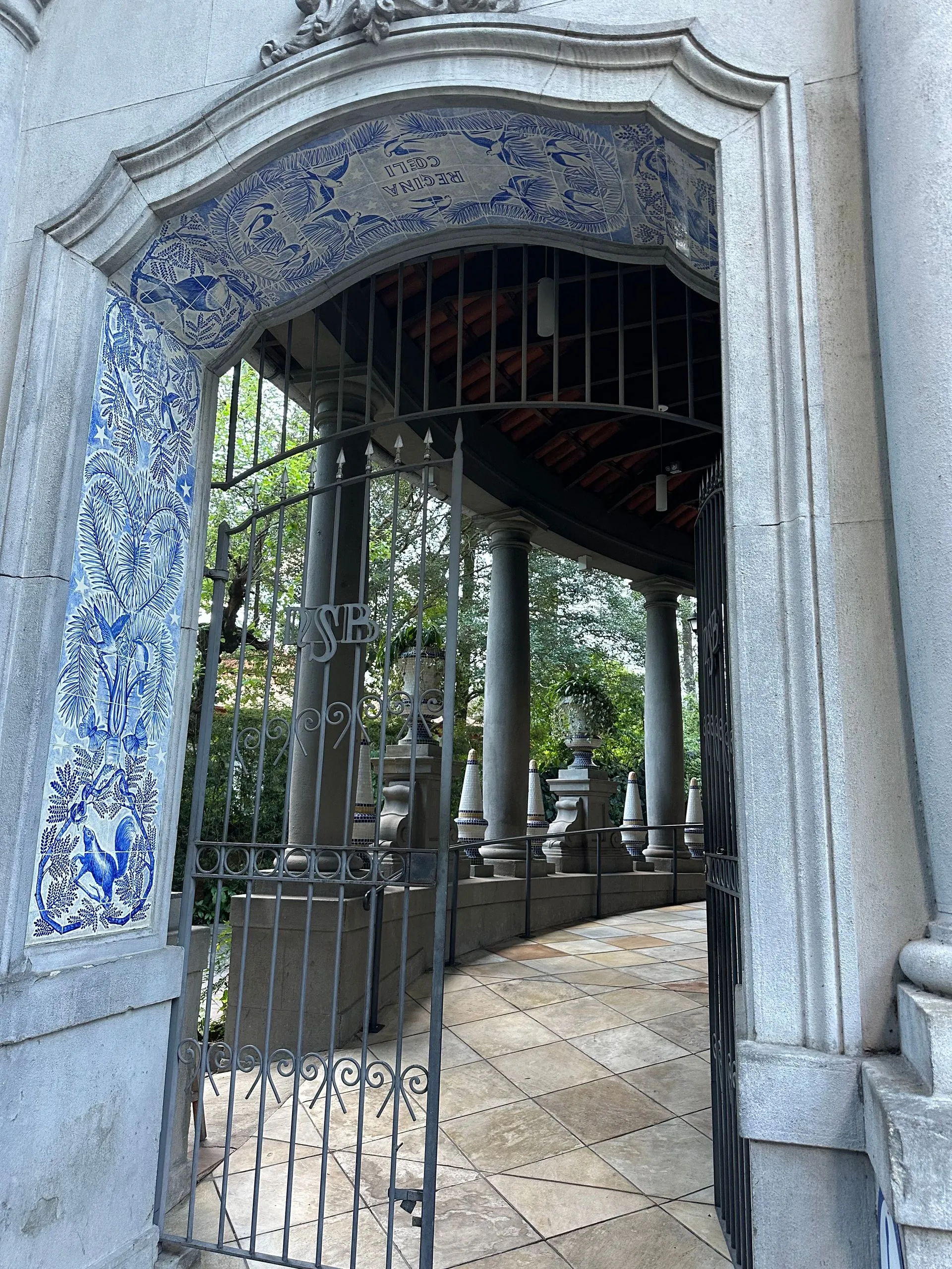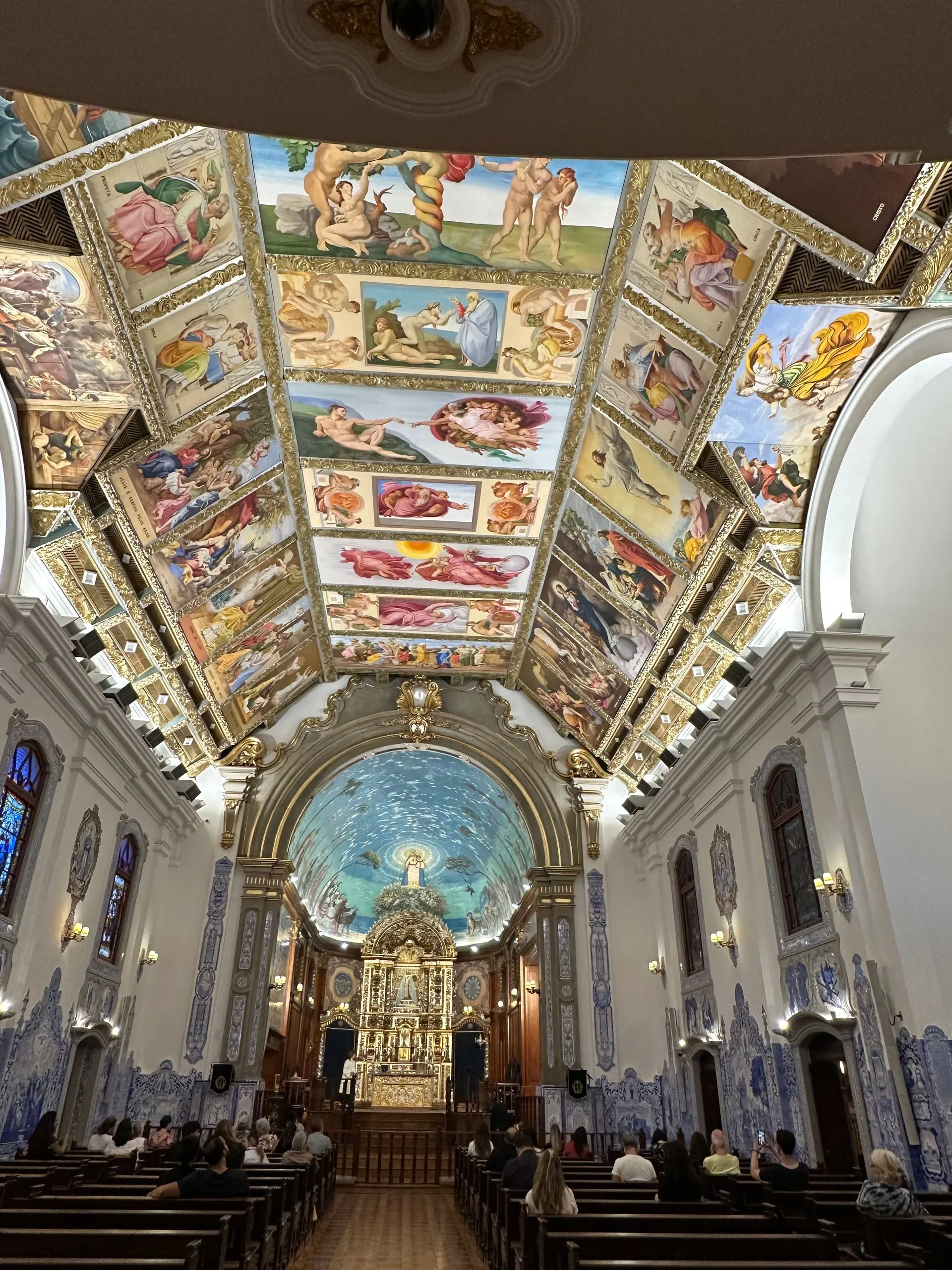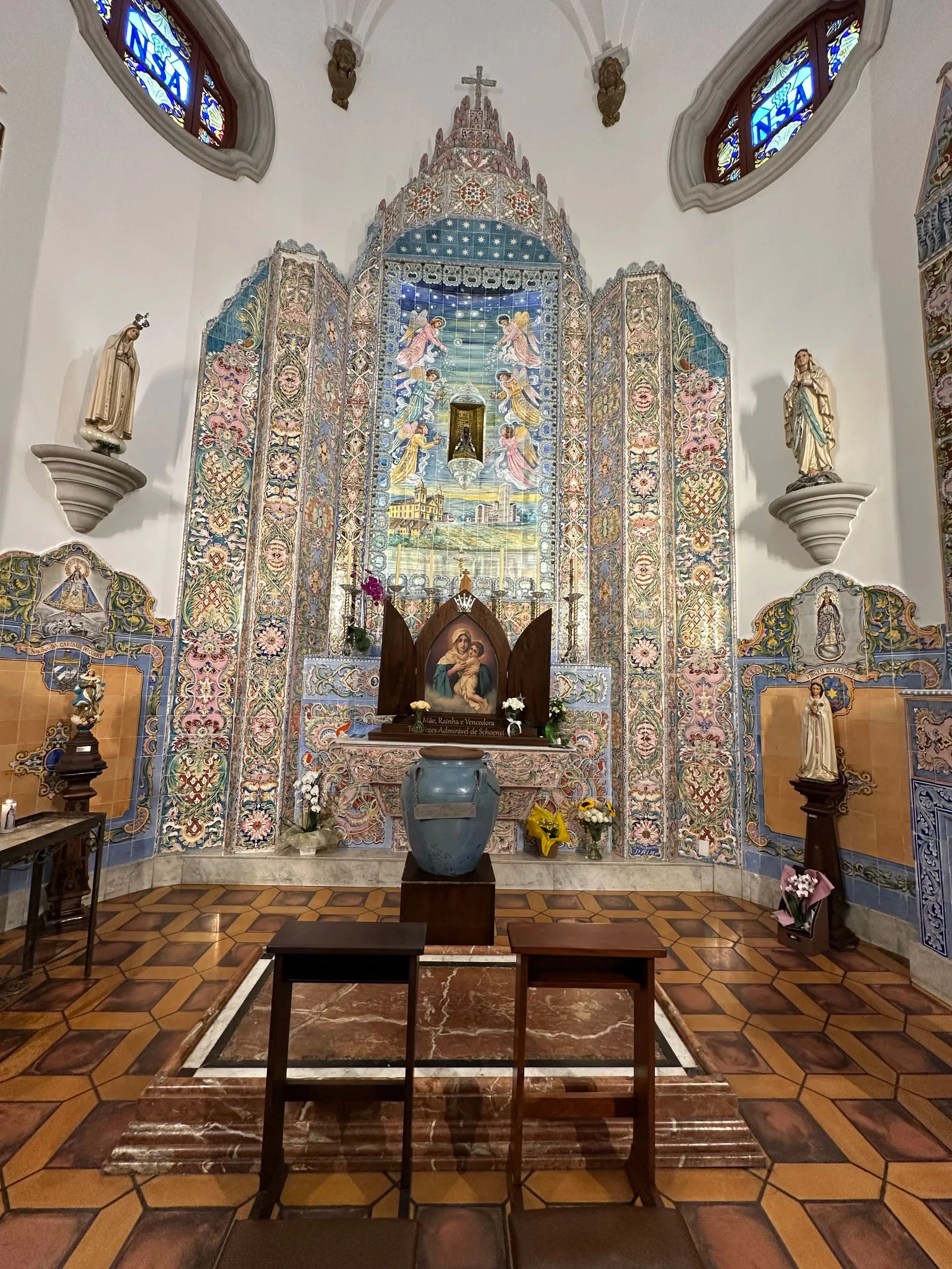 We grabbed a quick bite in this neighborhood and then went to find the most beautiful church I think I have ever seen Parroquia de Nuestra Señora de Brasil. It looks like a fancy hotel at the entry and the ceiling and mosaic tile work are stunning. An evening Mass was just getting ready to start - so we were limited in where we could stroll but the grounds and auxiliary spaces were equally charming. Was such a gorgeous little find.